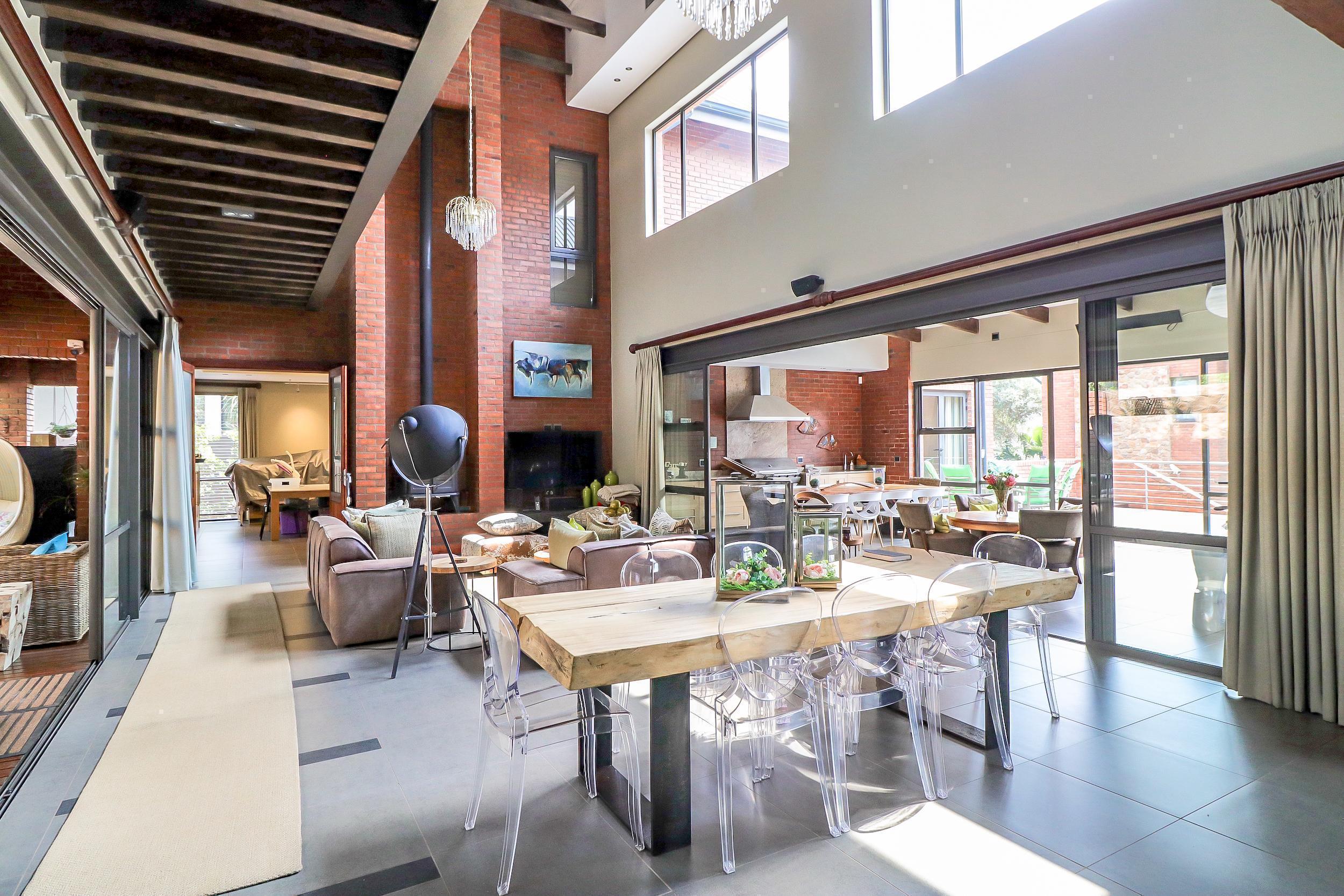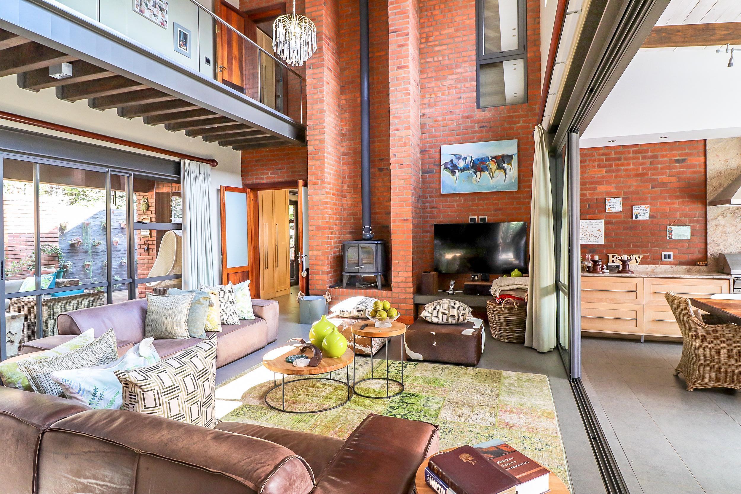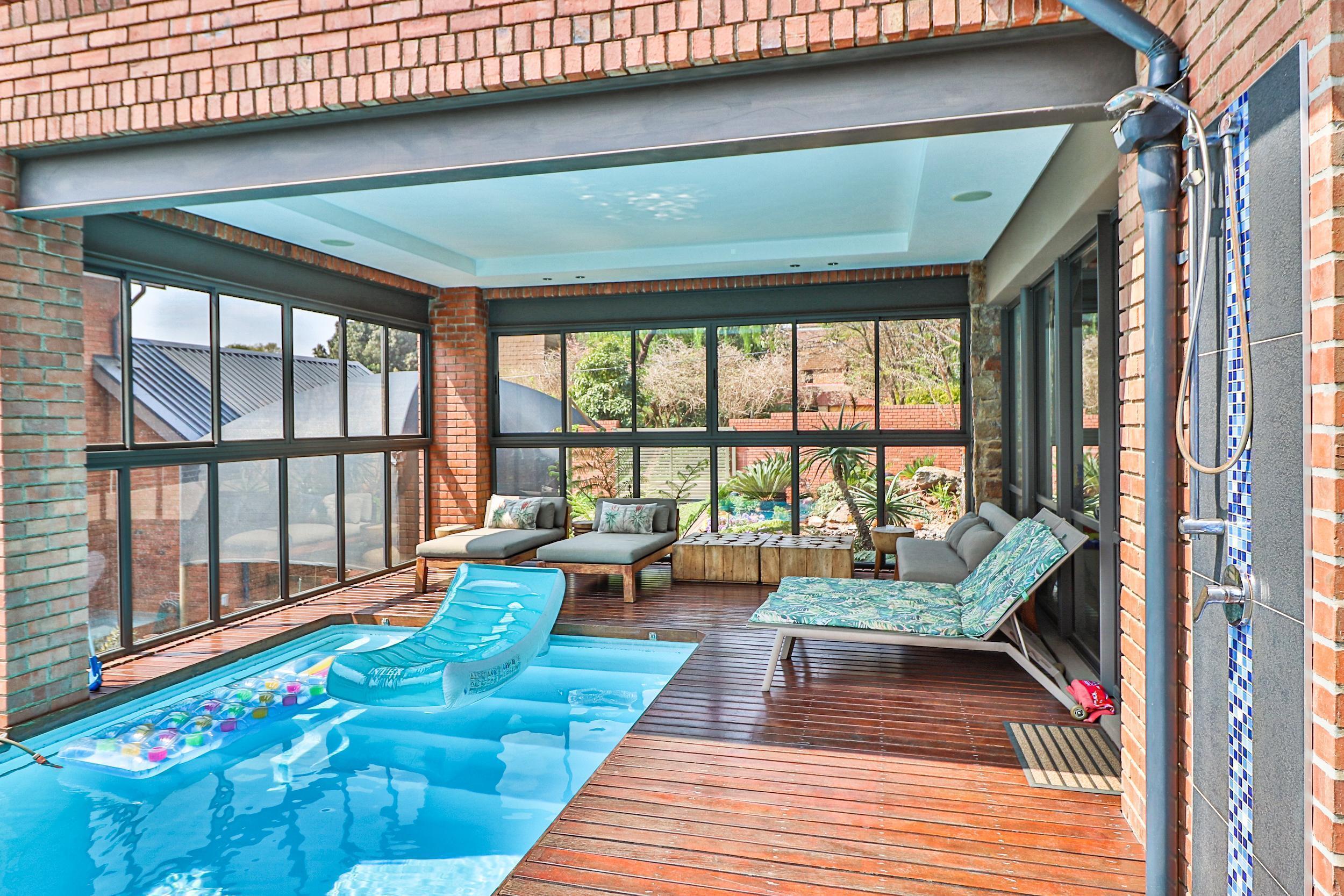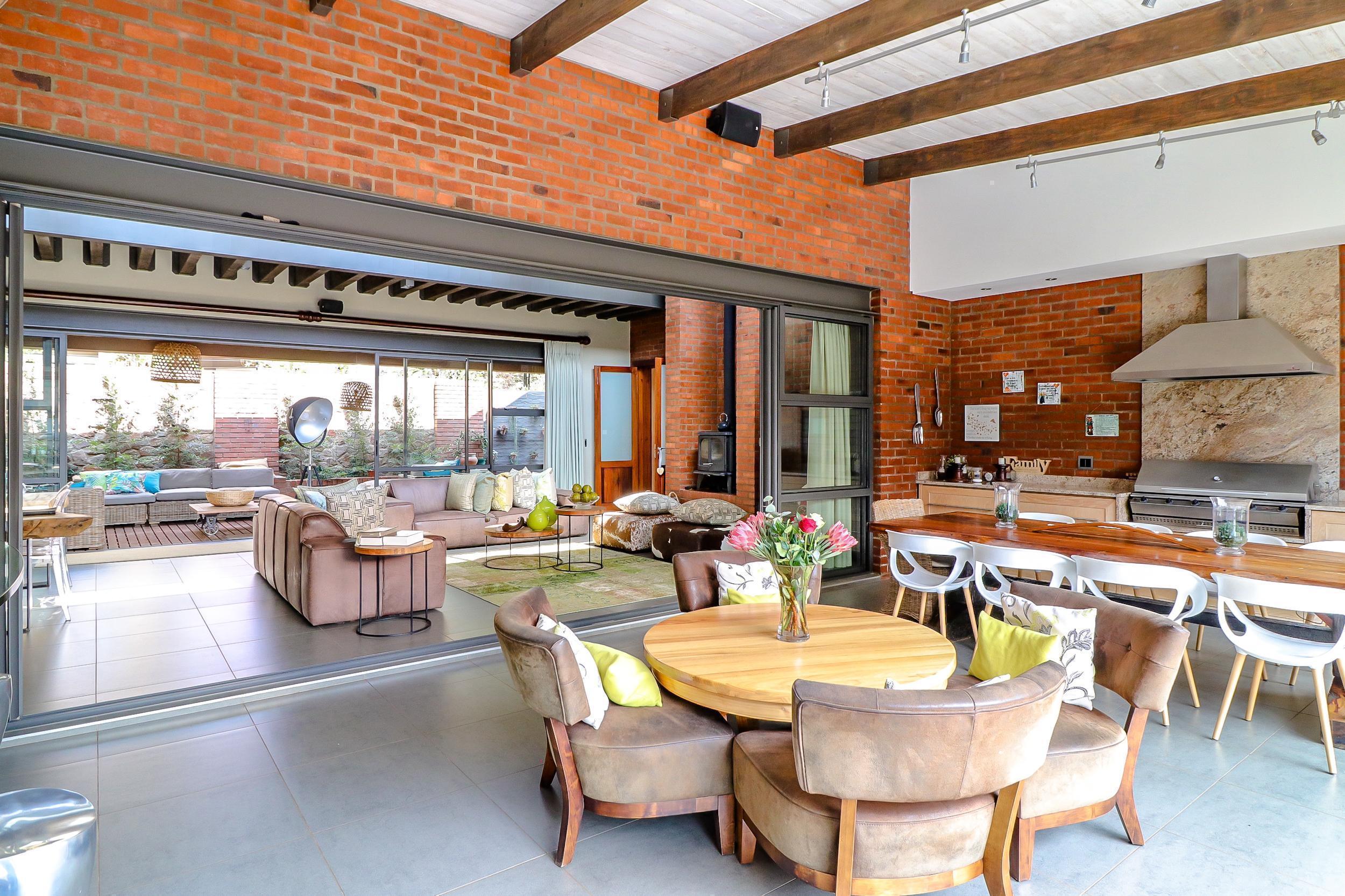 The ground floor is an entertainers delight and includes a gourmet kitchen (with imported AGA stove), scullery and pantry, double volume barn style living room with Morso fireplace, indoor BBQ room with fitted gas BBQ and drinks station (under counter fridges and ice machine), solar heated pool (partially indoor with an automated cover), a winter and summer veranda, a guest suite and awesome hobby room.