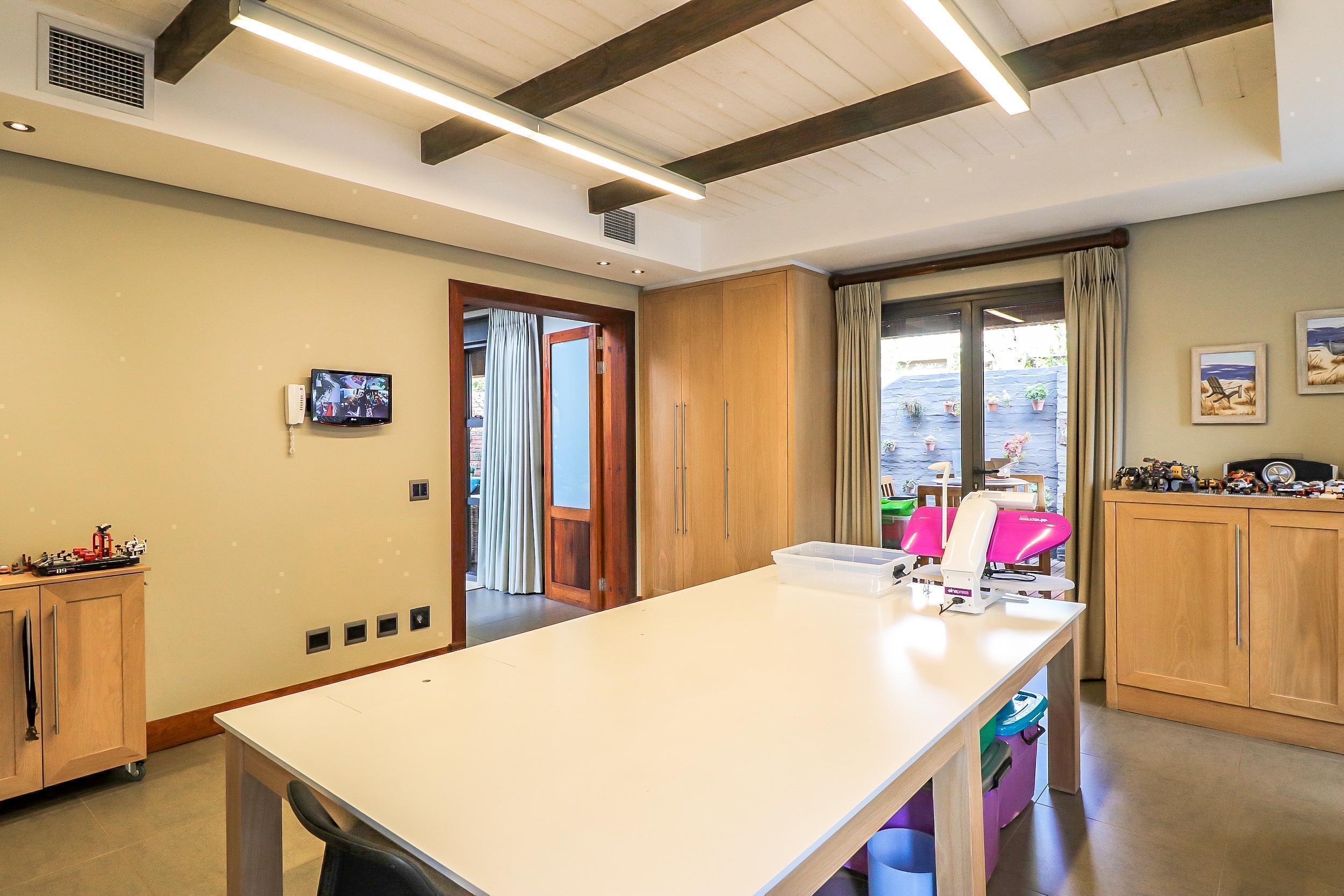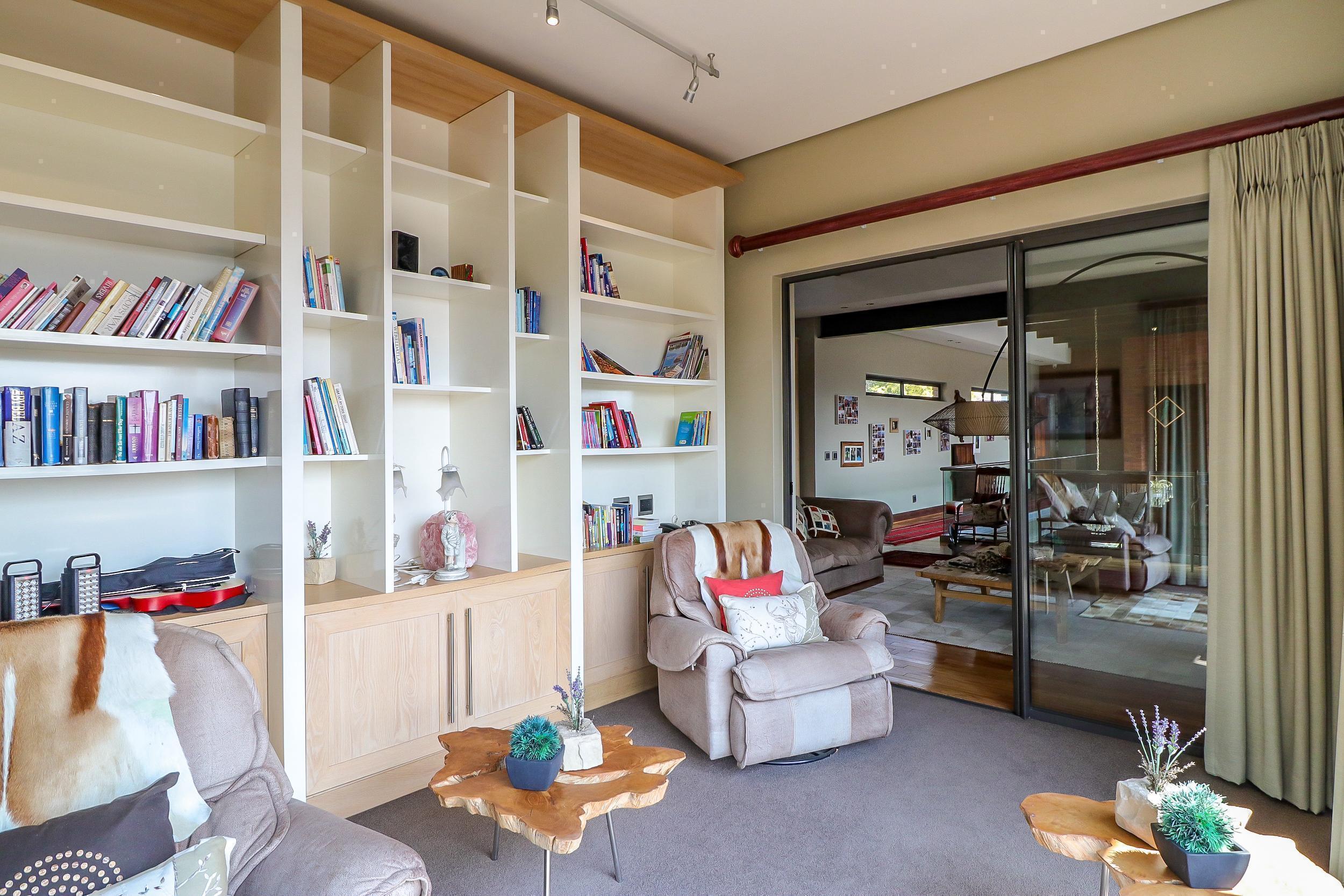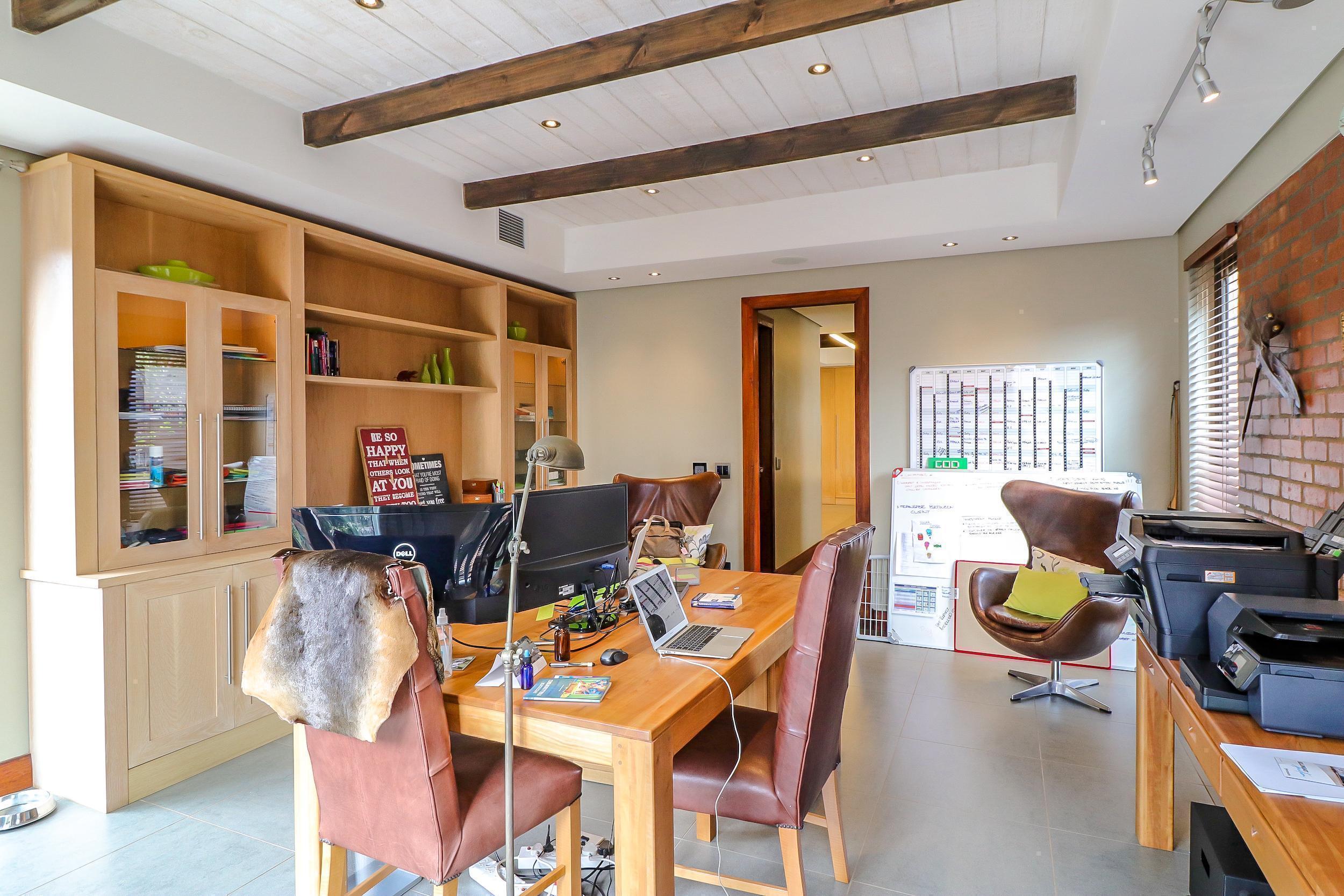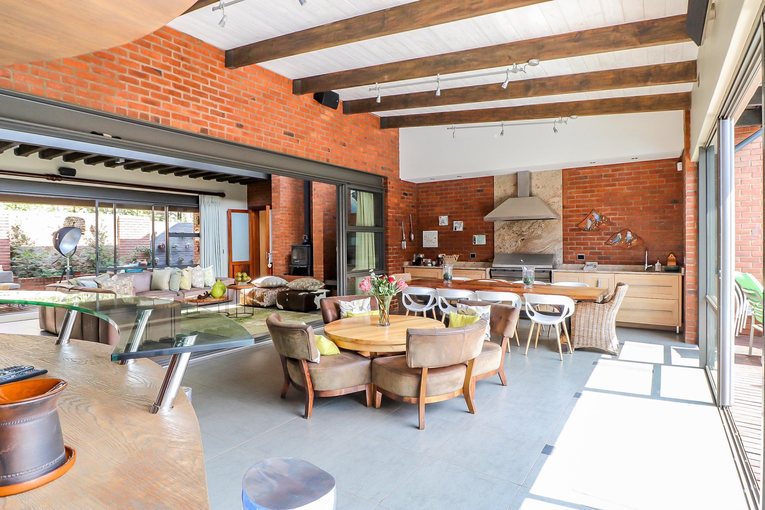 The ground floor is an entertainers delight and includes a gourmet kitchen (with imported AGA stove), scullery and pantry, double volume barn style living room with Morso fireplace, indoor BBQ room with fitted gas BBQ and drinks station (under counter fridges and ice machine), solar heated pool (partially indoor with an automated cover), a winter and summer veranda, a guest suite and awesome hobby room.