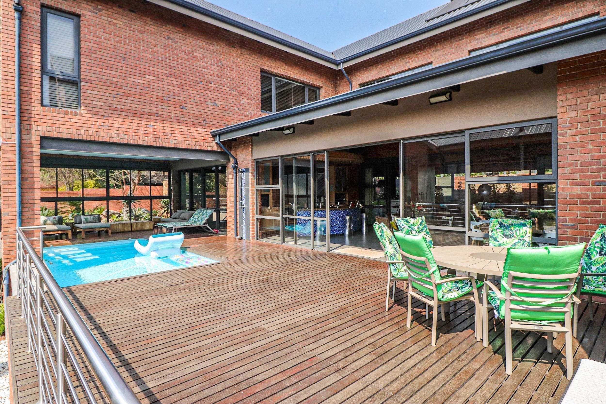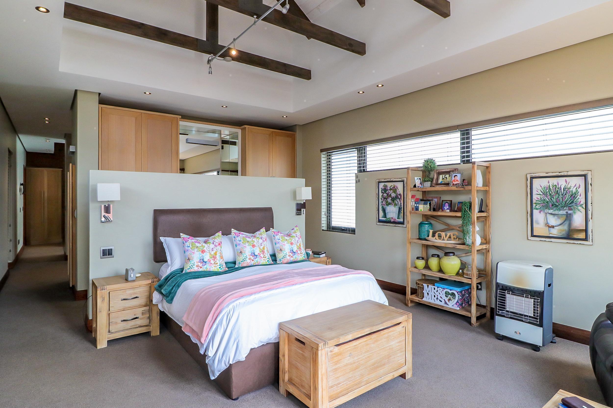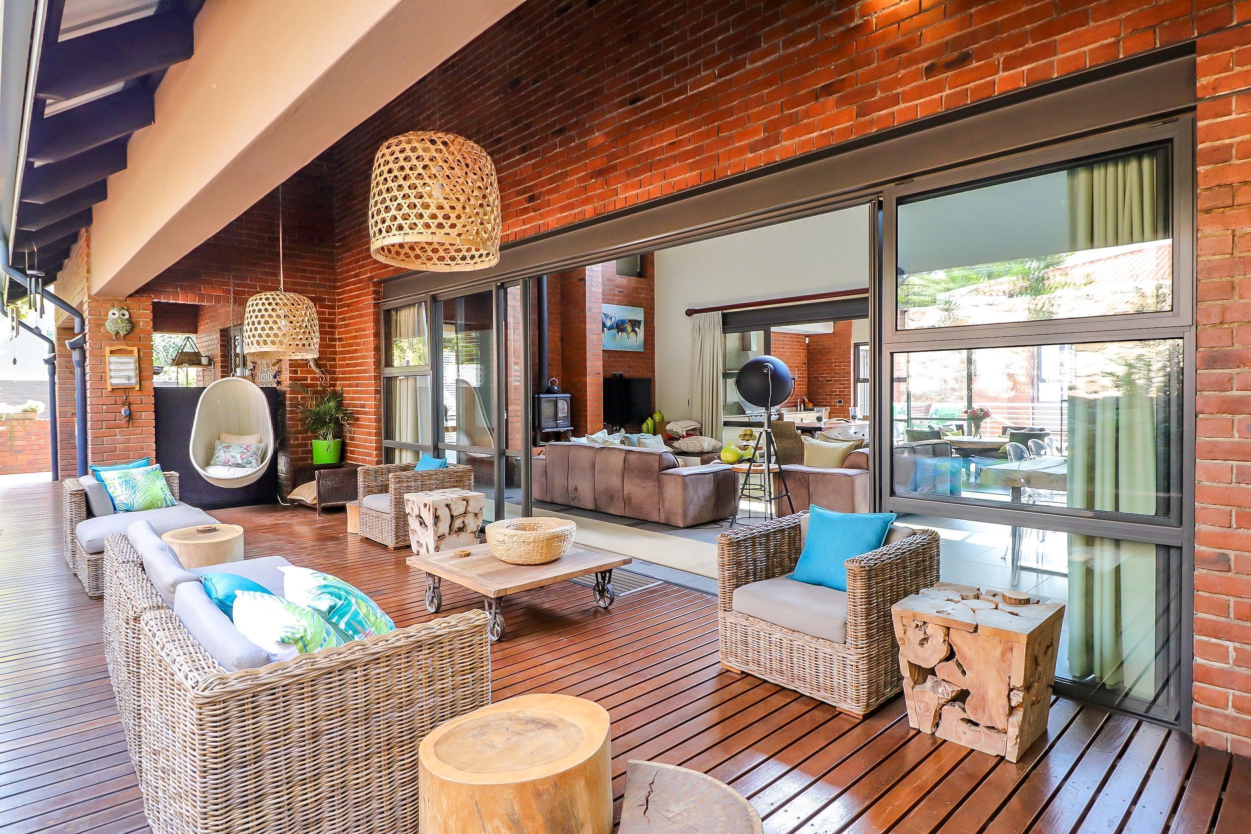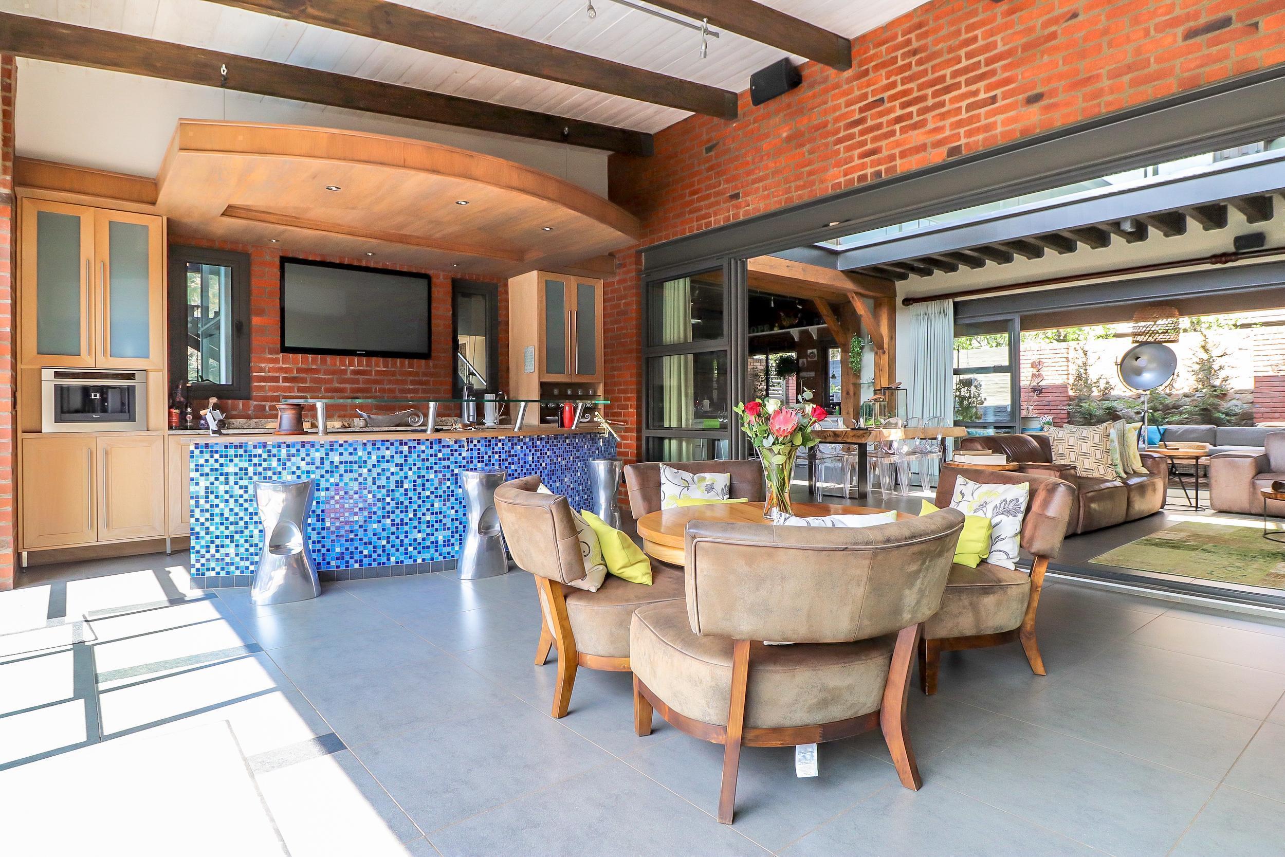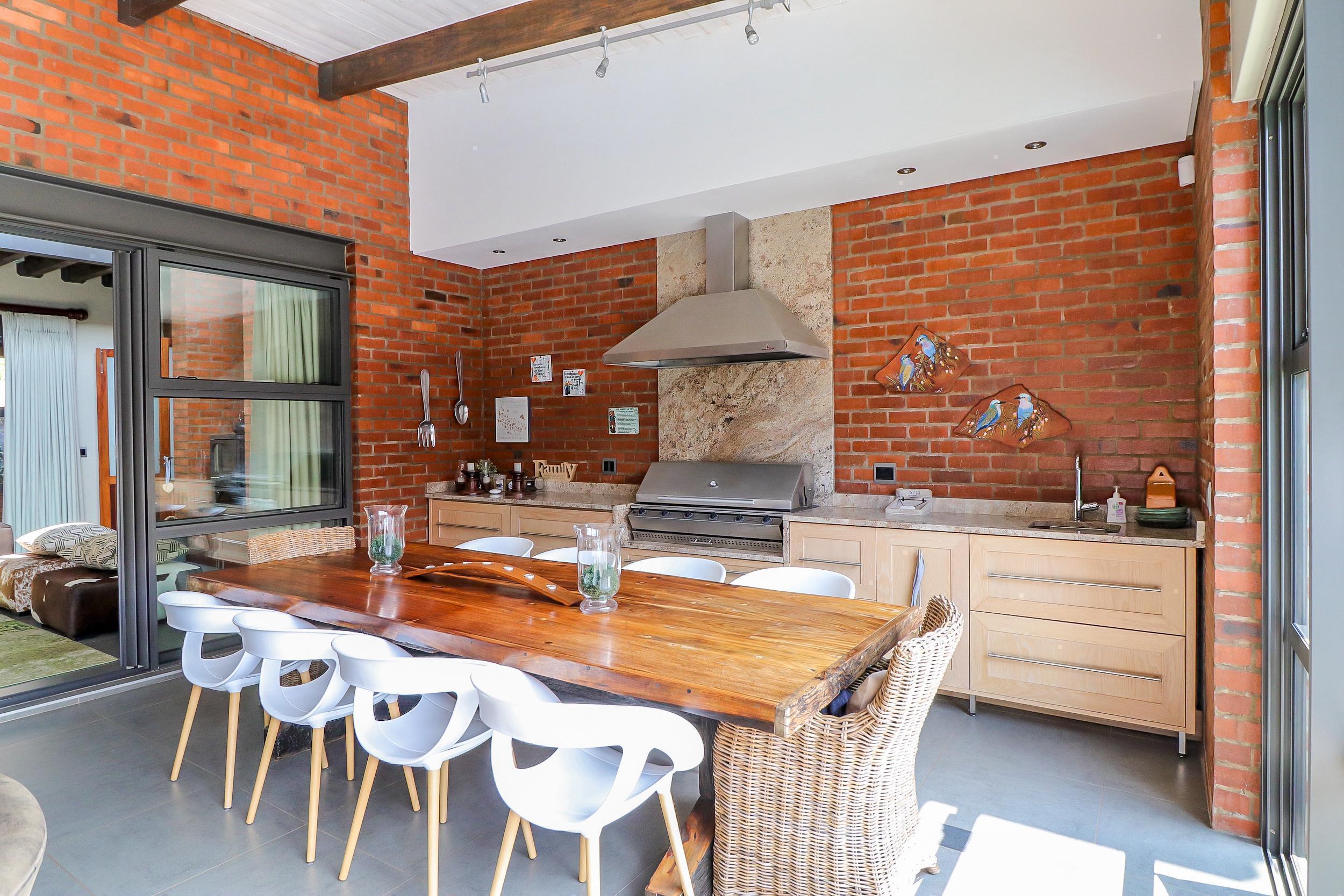 The ground floor is an entertainers delight and includes a gourmet kitchen (with imported AGA stove), scullery and pantry, double volume barn style living room with Morso fireplace, indoor BBQ room with fitted gas BBQ and drinks station (under counter fridges and ice machine), solar heated pool (partially indoor with an automated cover), a winter and summer veranda, a guest suite and awesome hobby room.