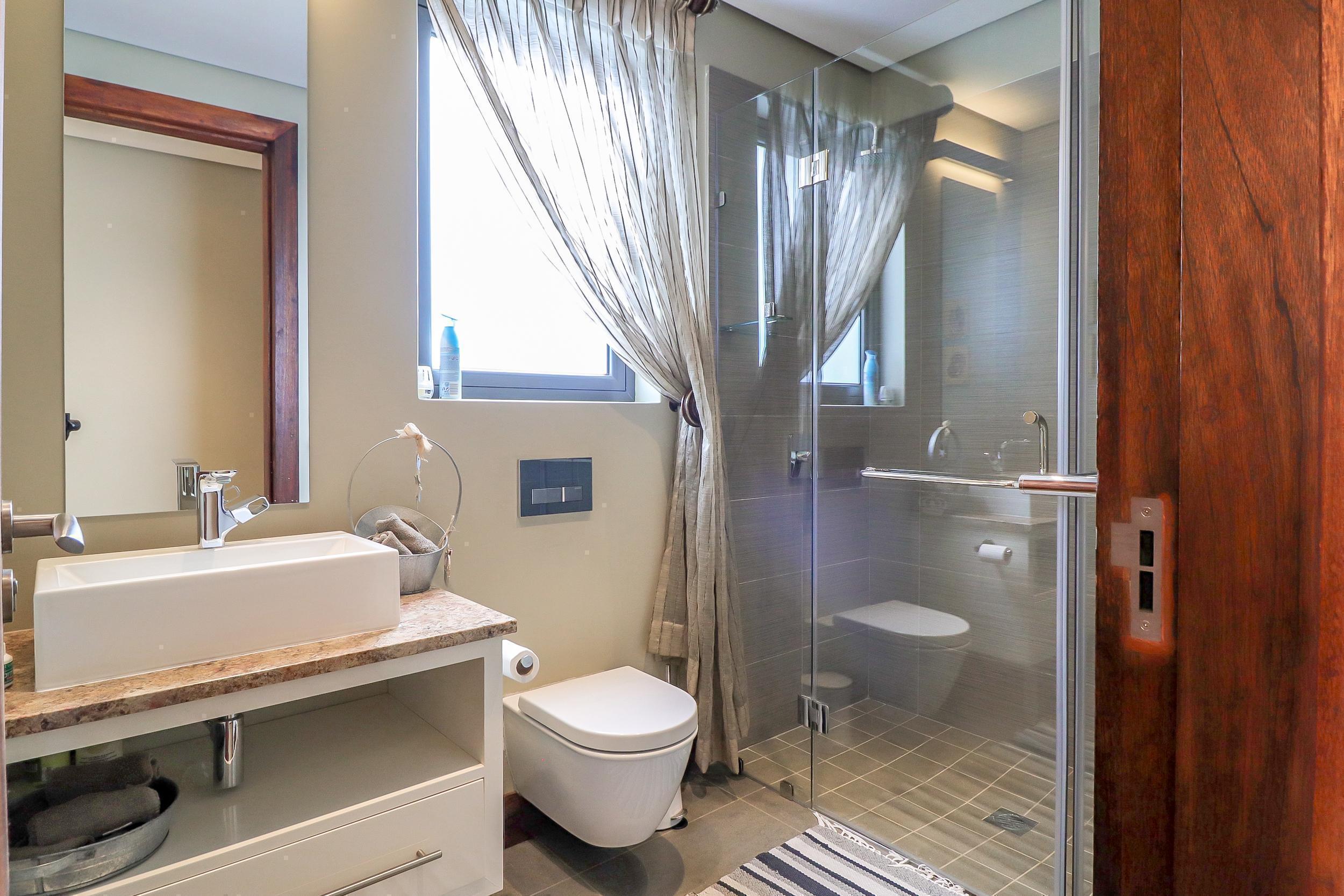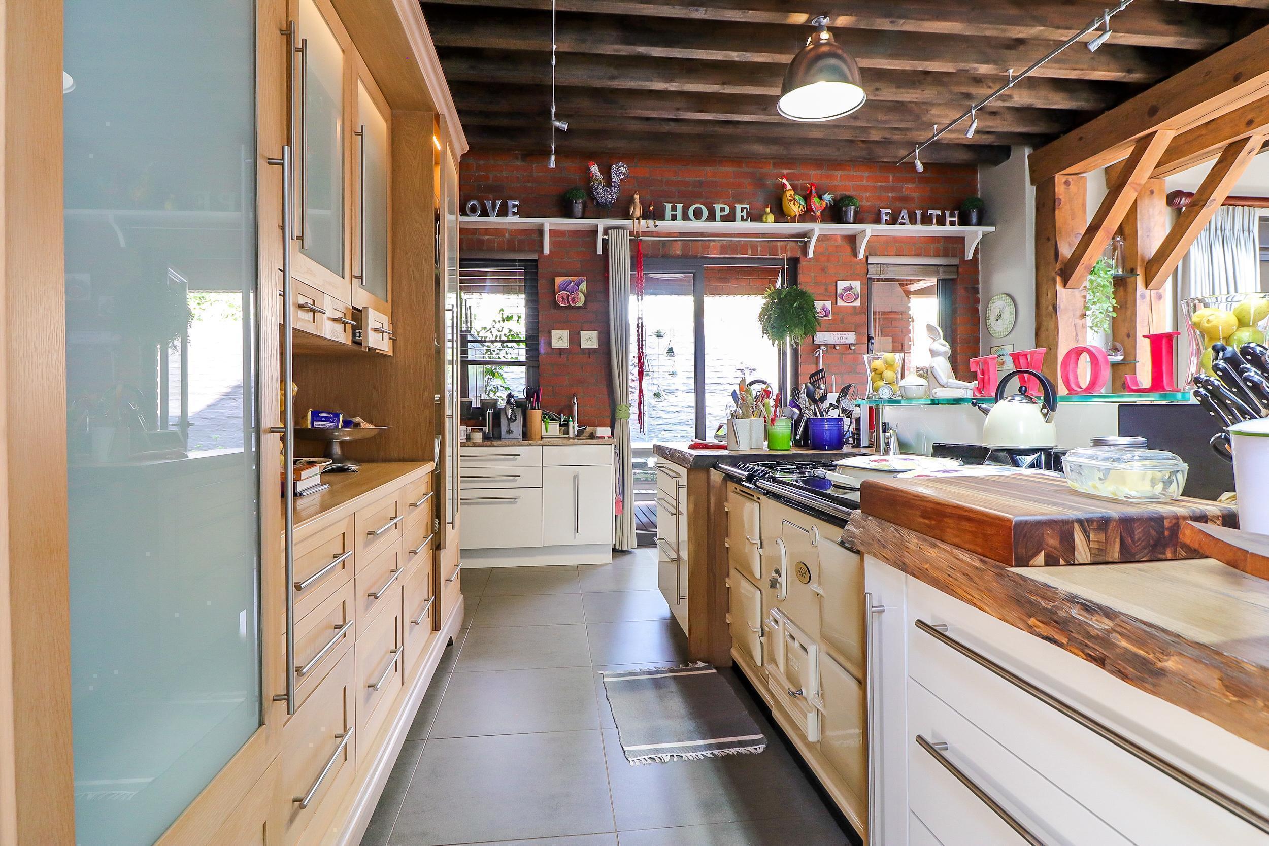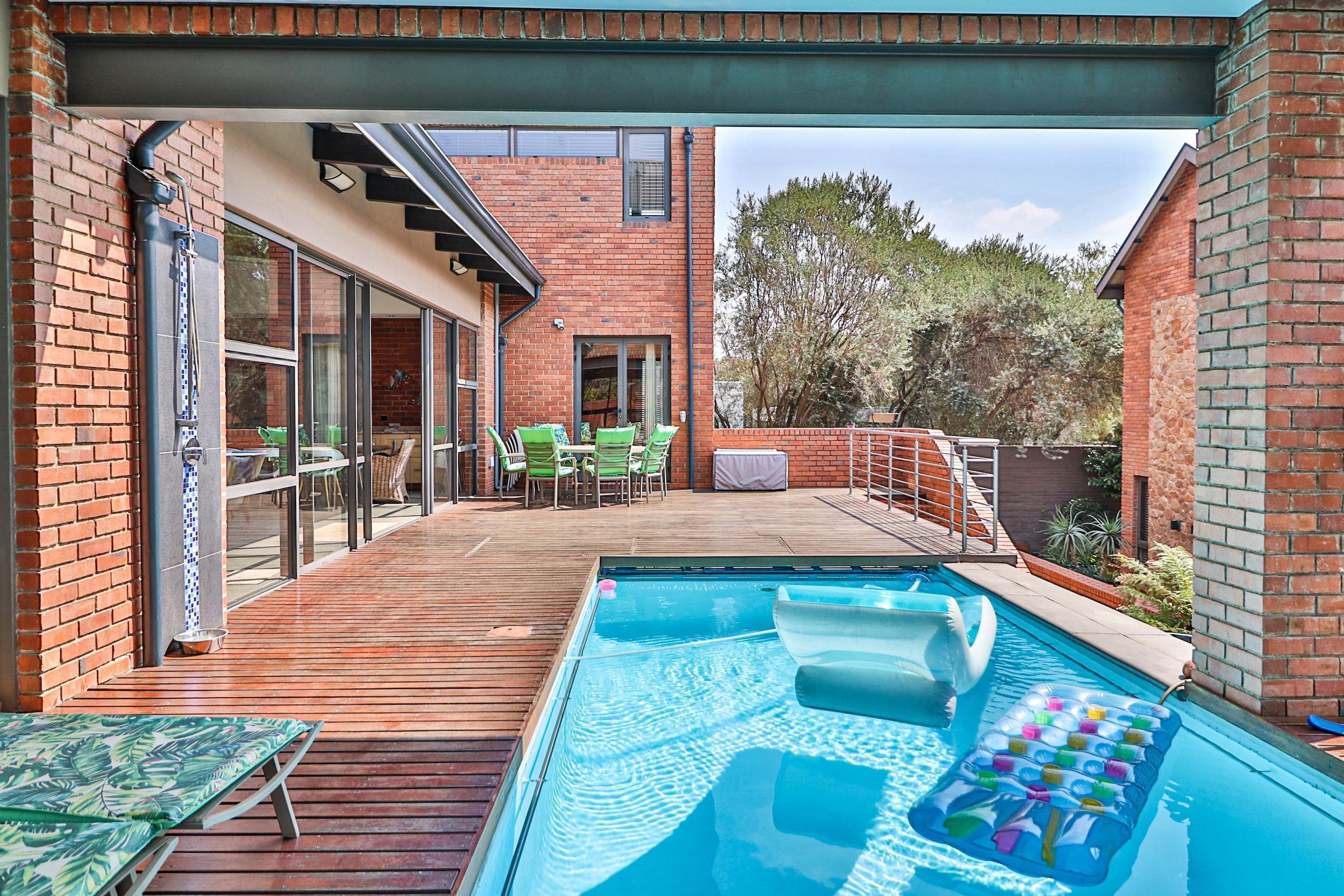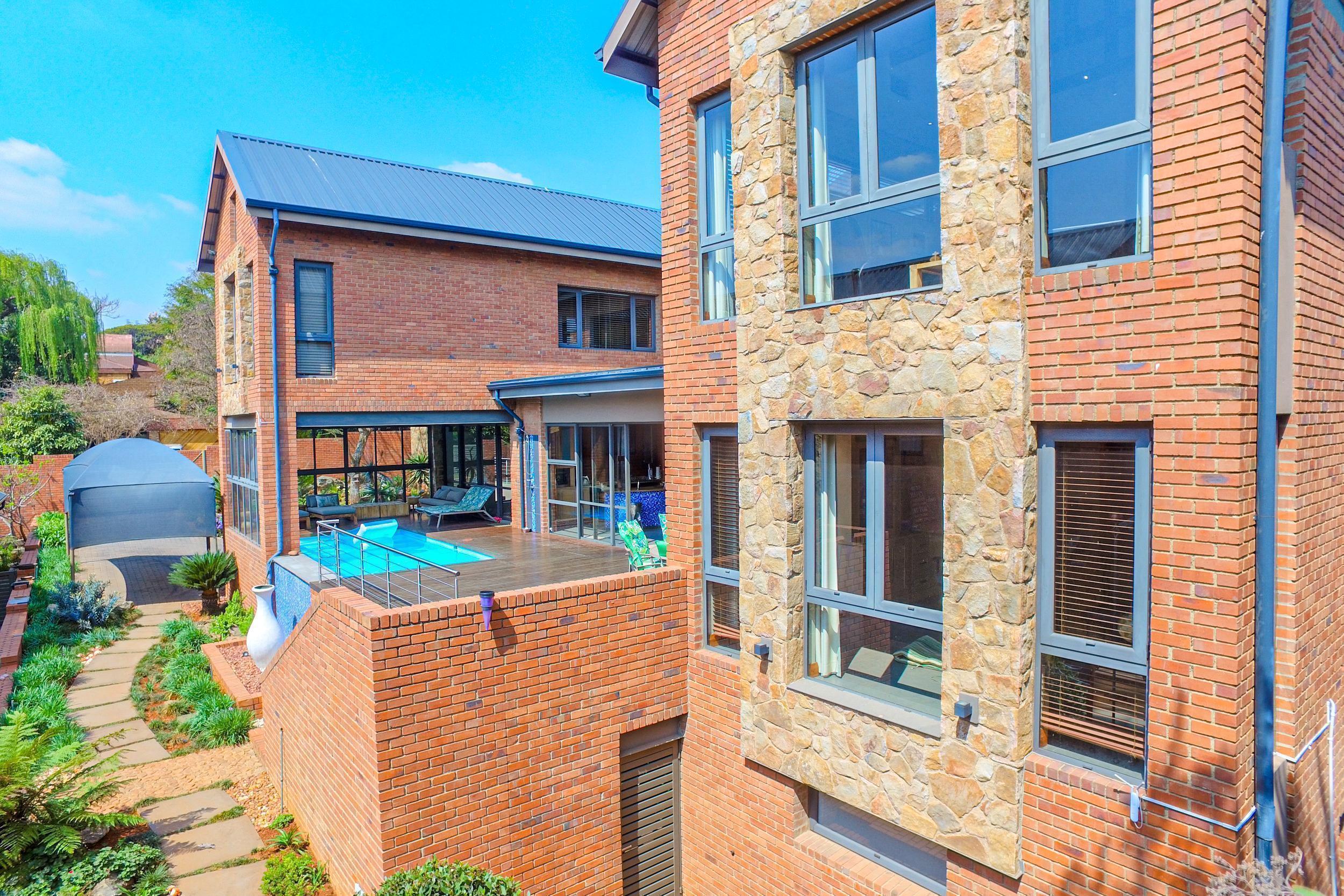 The ground floor is an entertainers delight and includes a gourmet kitchen (with imported AGA stove), scullery and pantry, double volume barn style living room with Morso fireplace, indoor BBQ room with fitted gas BBQ and drinks station (under counter fridges and ice machine), solar heated pool (partially indoor with an automated cover), a winter and summer veranda, a guest suite and awesome hobby room.
