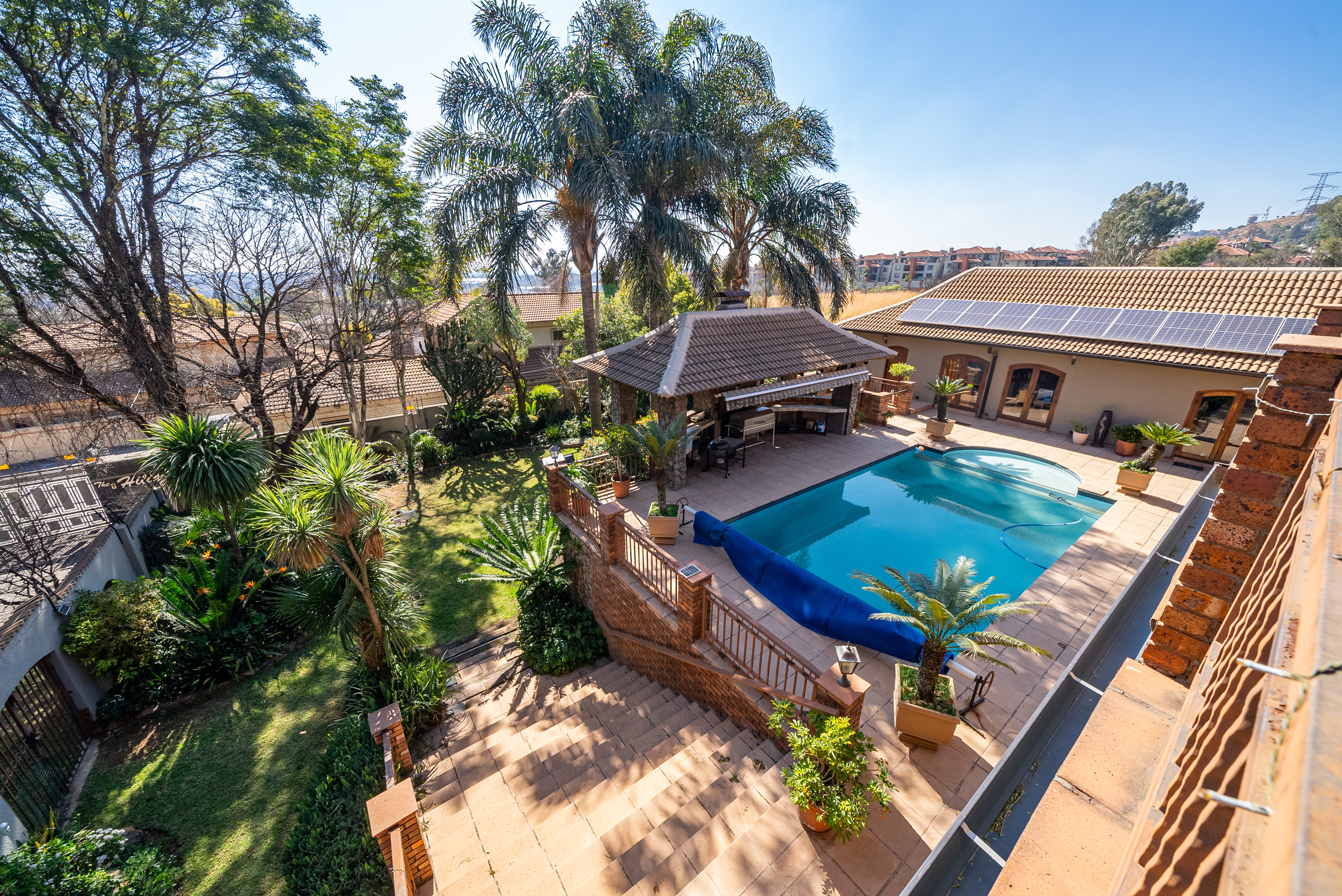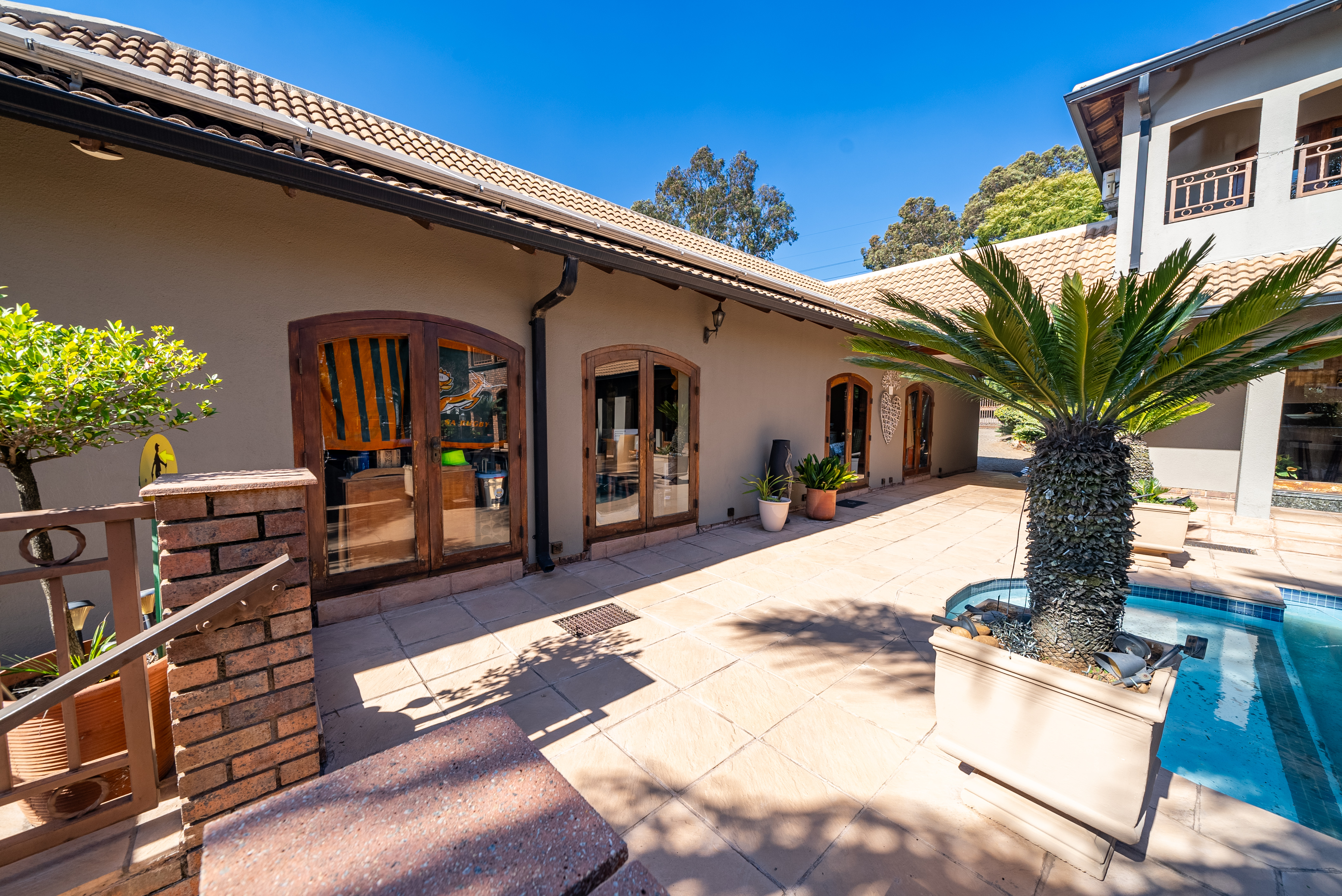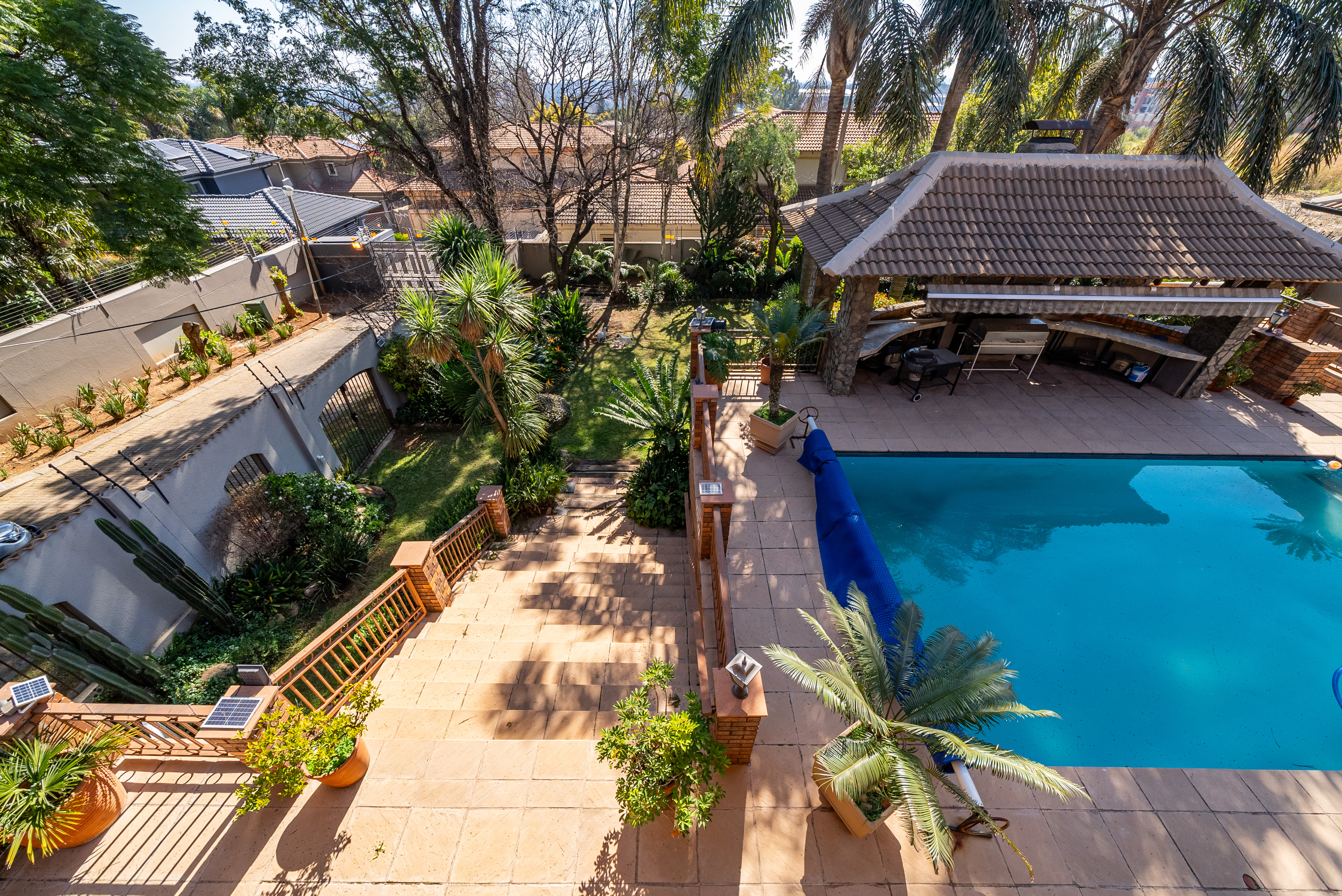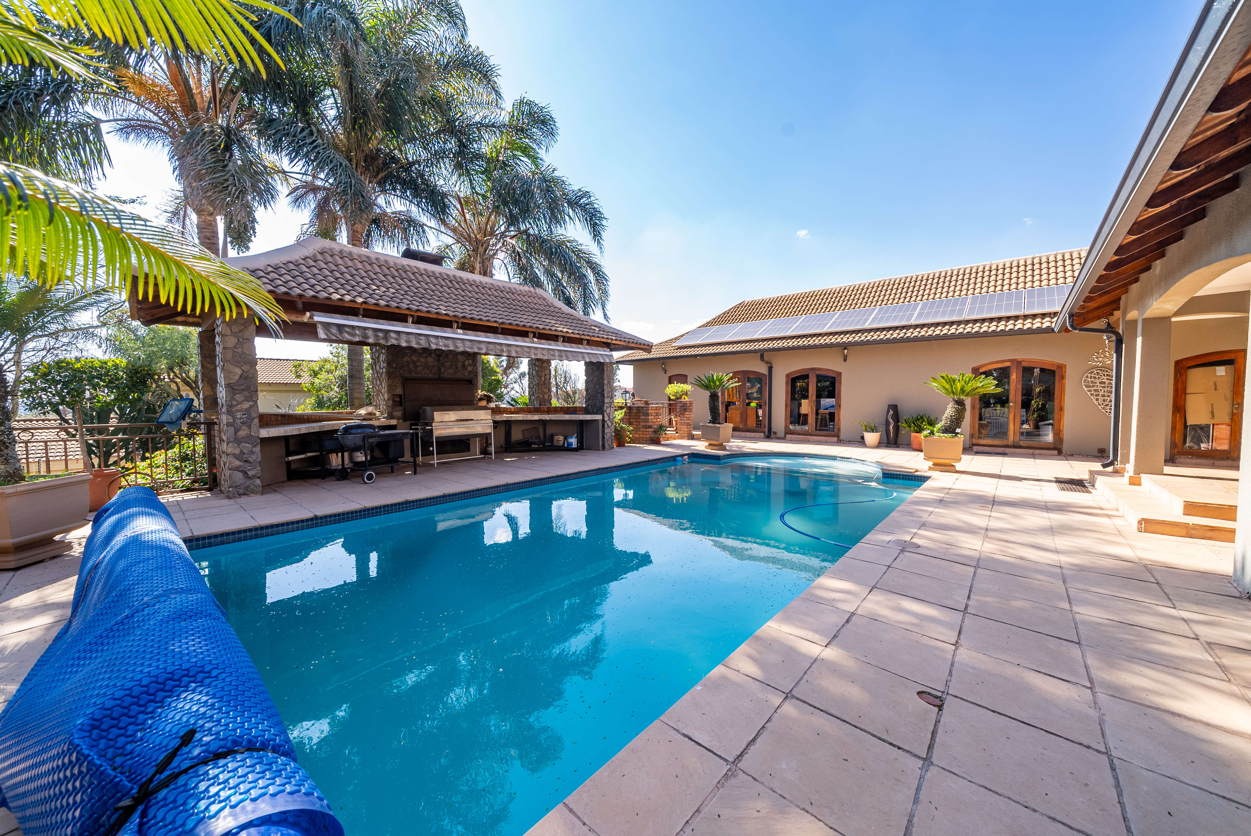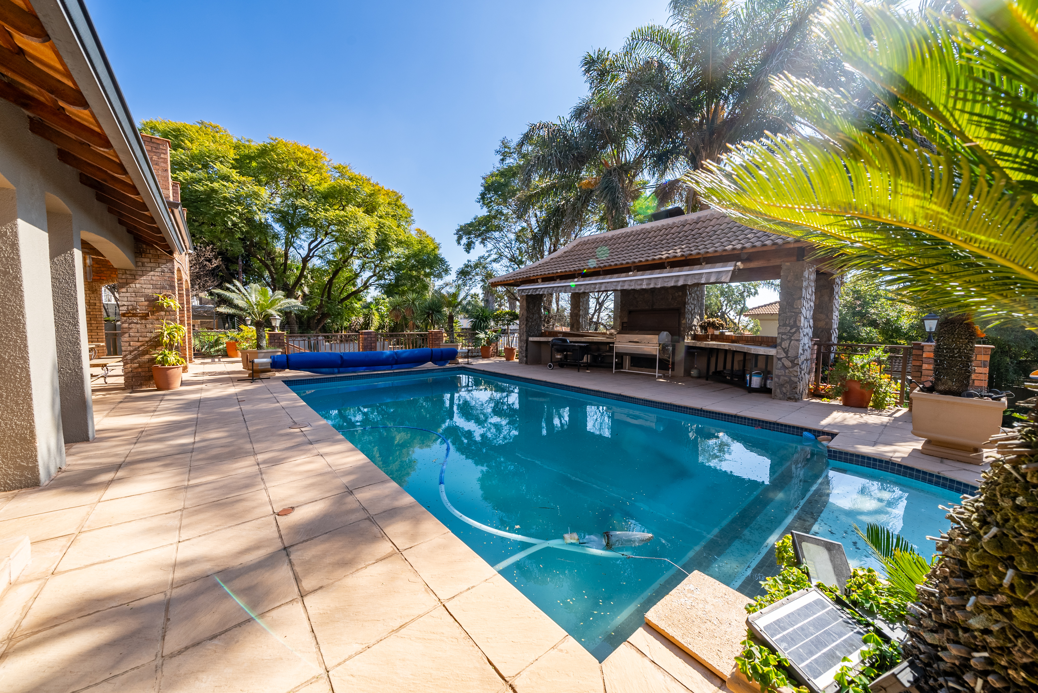 Step outside to discover your private resort-style oasis. The sparkling swimming pool, encircled by graceful palm trees and stunning views, beckons for relaxation and leisure. Entertaining is made effortless with a built-in braai area and a chic bar, ideal for hosting friends and family.