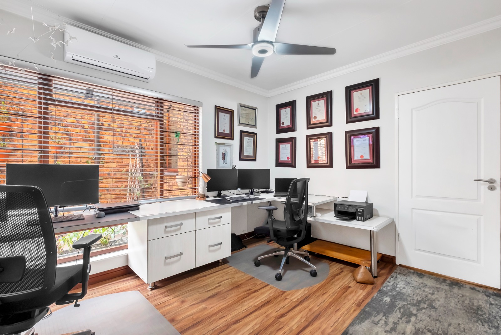 This home also features domestic quarters equipped with its own bathroom, providing the perfect opportunity to create a comfortable guest suite for visitors. The small workshop area in the garage is an ideal space for DIY enthusiasts or anyone looking to indulge in their hobbies. It's a convenient and dedicated area where you can easily organize your tools, materials. Additionally there is an extra Hollywood garage for extra storage or parking for a caravan or trailer. This property features secure under-roof parking for three vehicles, and perimeter electric fencing.
