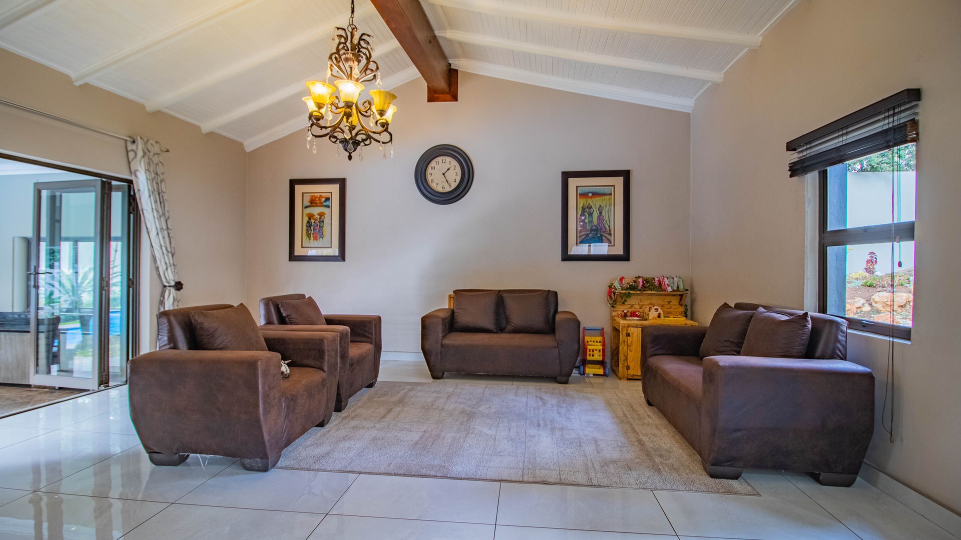 The entertainers veranda has a built in braai, a server and overlooks the pool,