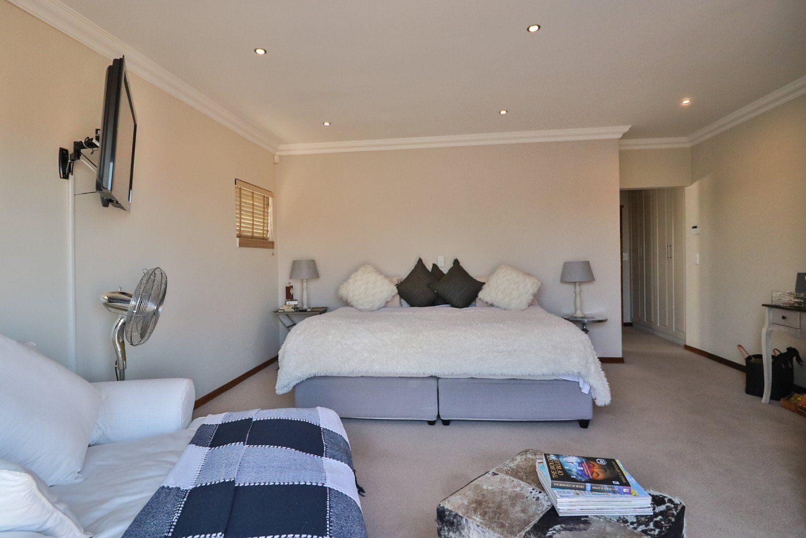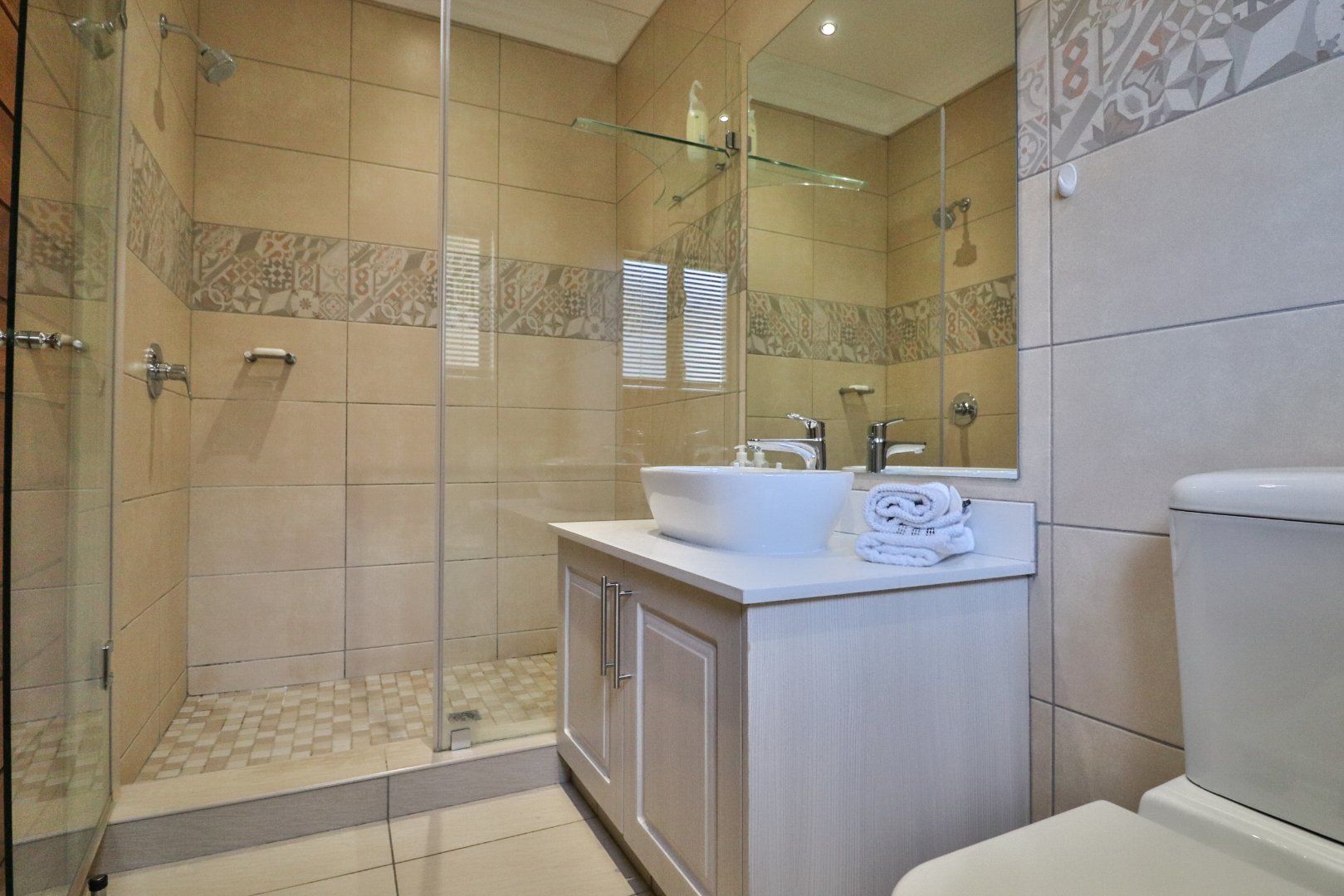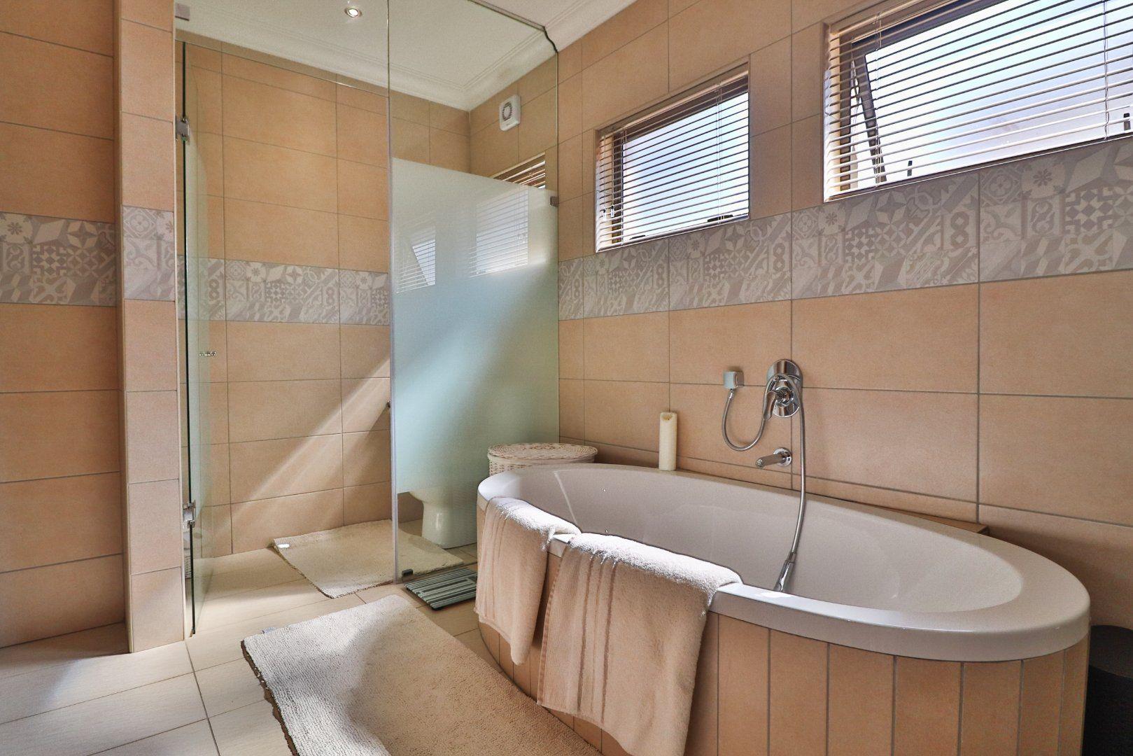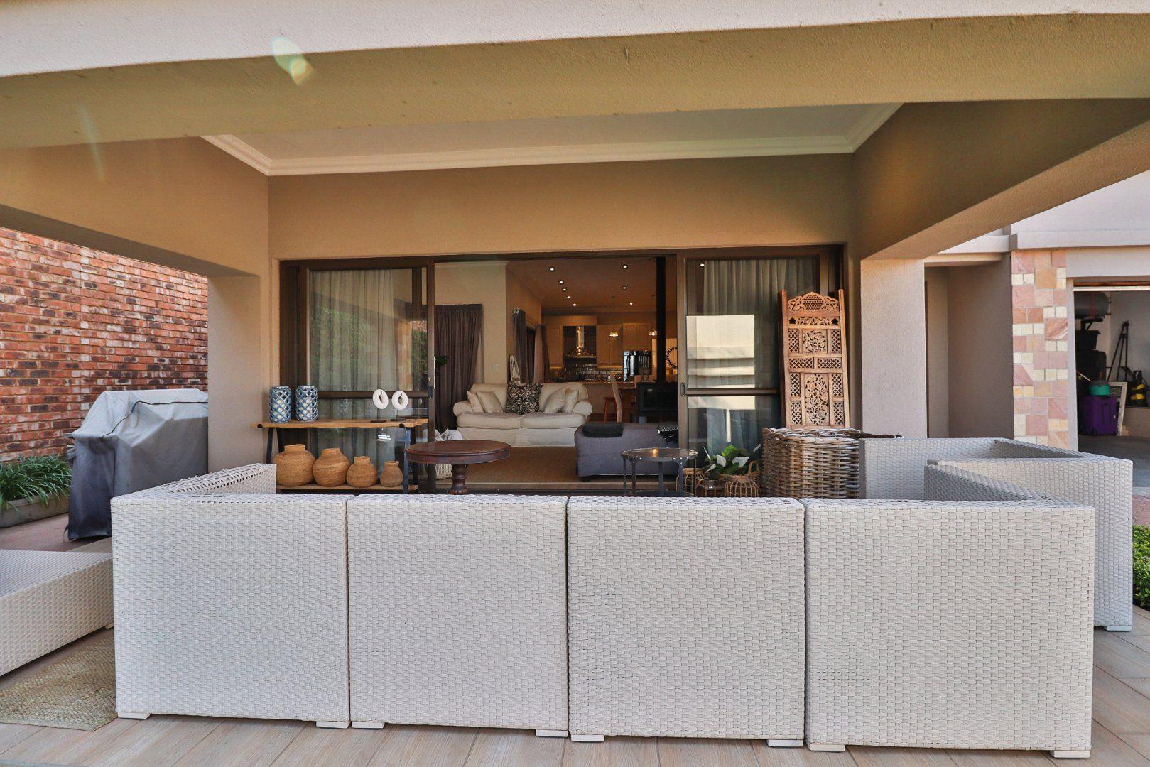 This magnificent cluster is a must see! As you enter this beautiful open-plan home, the reception areas are spacious with the lounge and dining room leading off the open plan kitchen. The lounge leads onto a covered patio. There is a fireplace between the lounge and dining room for those cosy winter evenings. The ultra-modern chefs kitchen design with Caesar stone tops, center island, gas stove and eye level double oven. There is a separate scullery/laundry with space for 3 appliances and a walk in pantry.