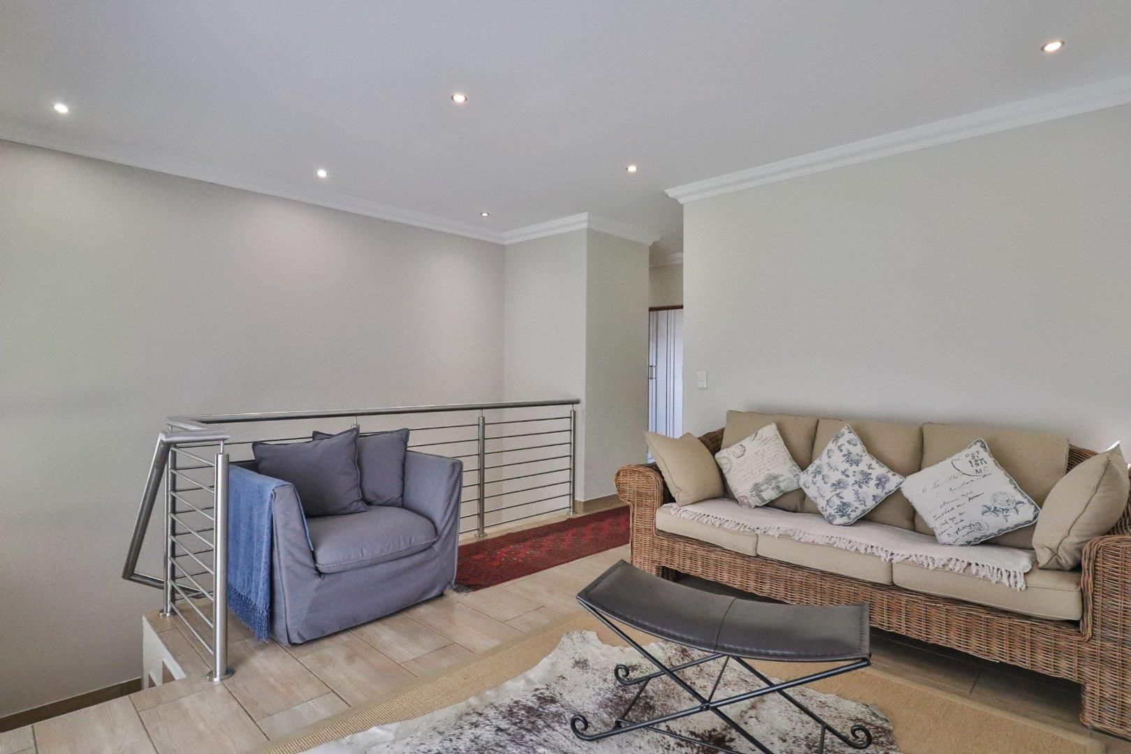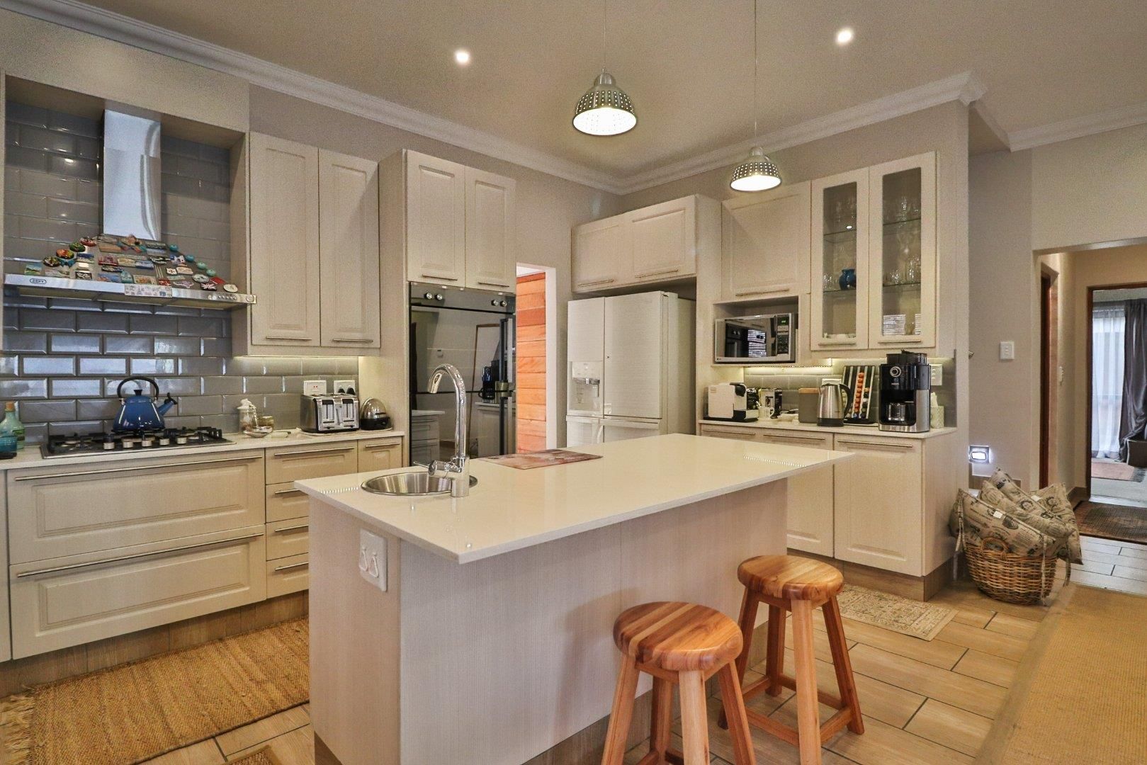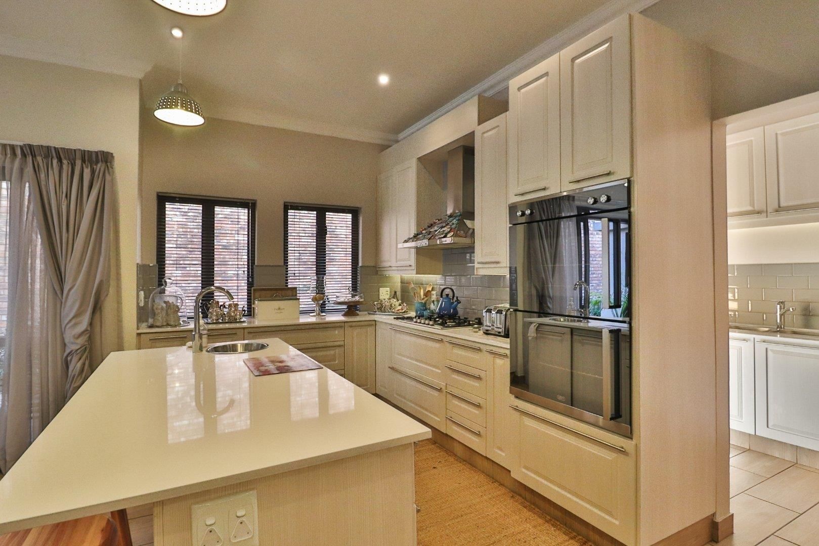 This magnificent cluster is a must see! As you enter this beautiful open-plan home, the reception areas are spacious with the lounge and dining room leading off the open plan kitchen. The lounge leads onto a covered patio. There is a fireplace between the lounge and dining room for those cosy winter evenings. The ultra-modern chefs kitchen design with Caesar stone tops, center island, gas stove and eye level double oven. There is a separate scullery/laundry with space for 3 appliances and a walk in pantry.