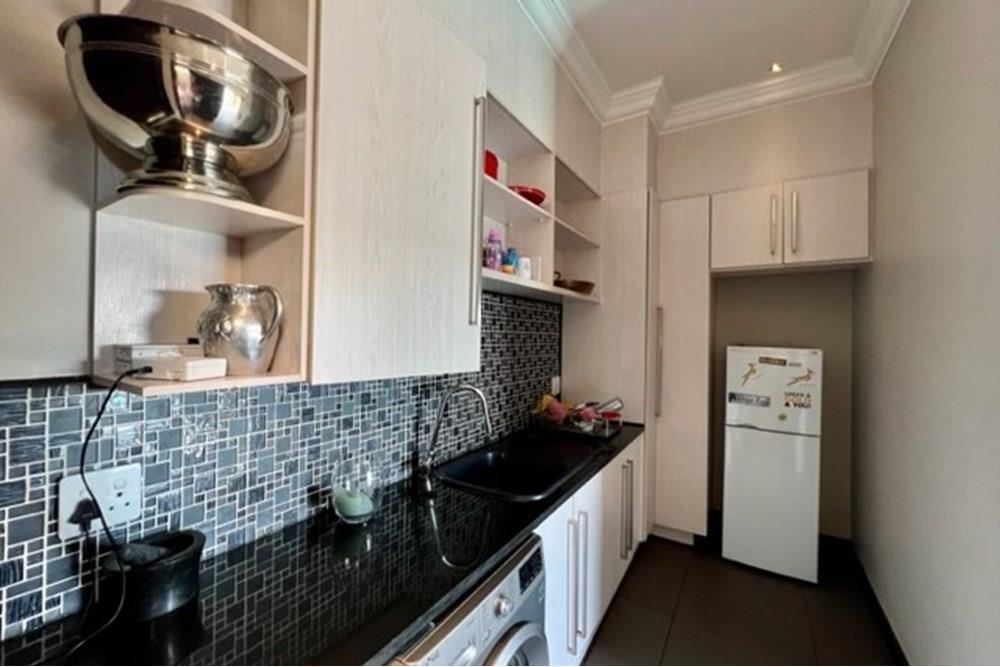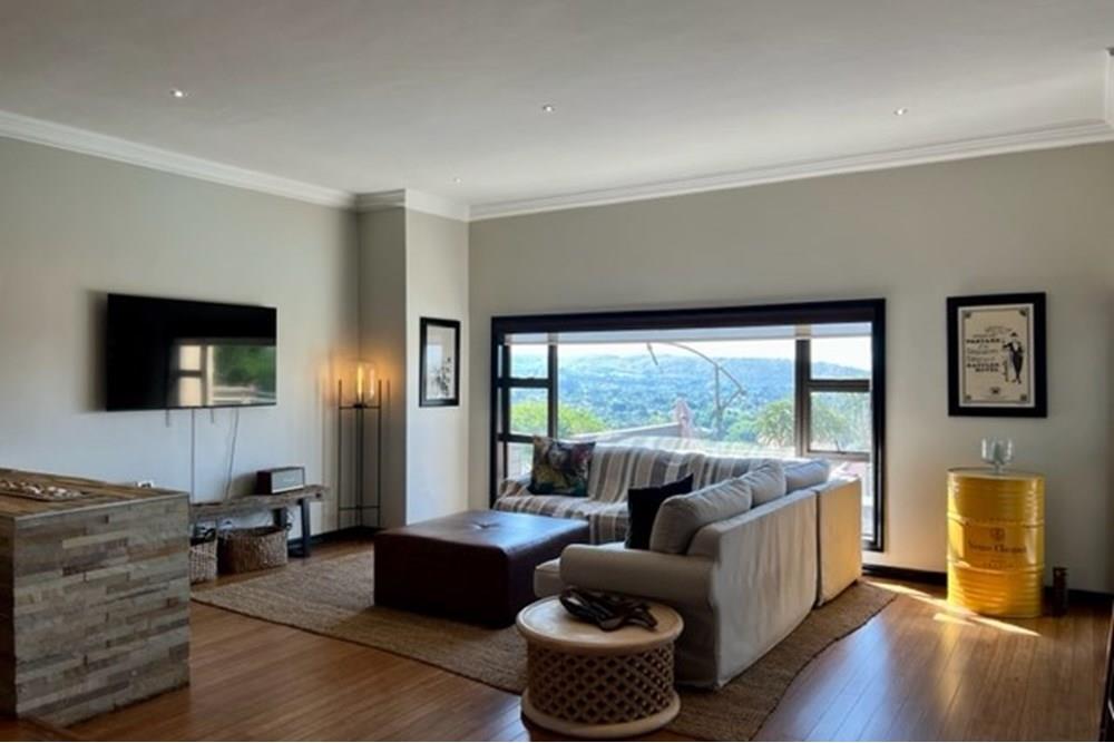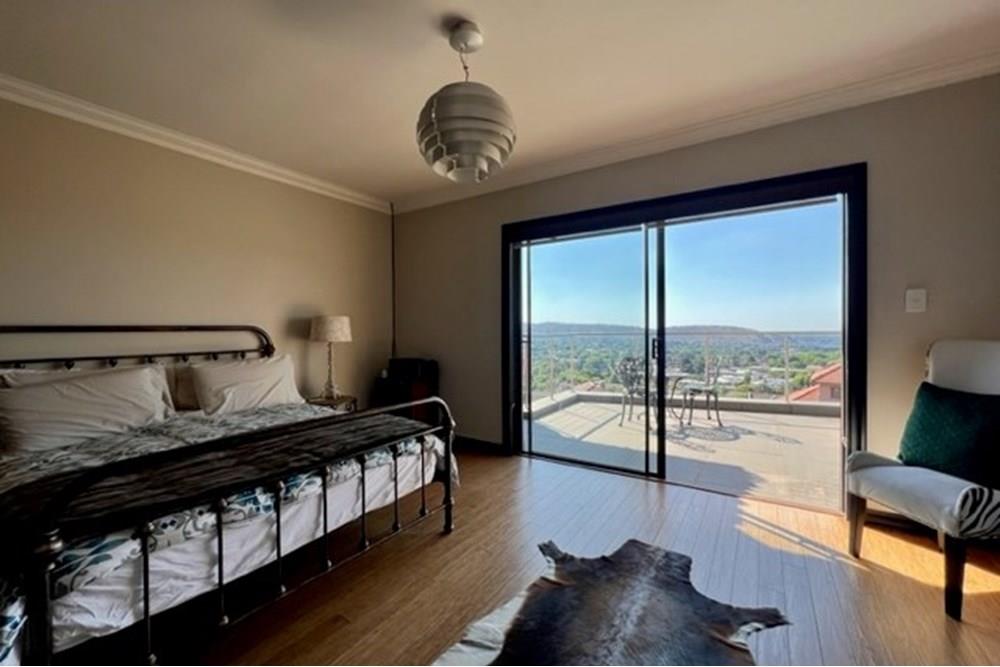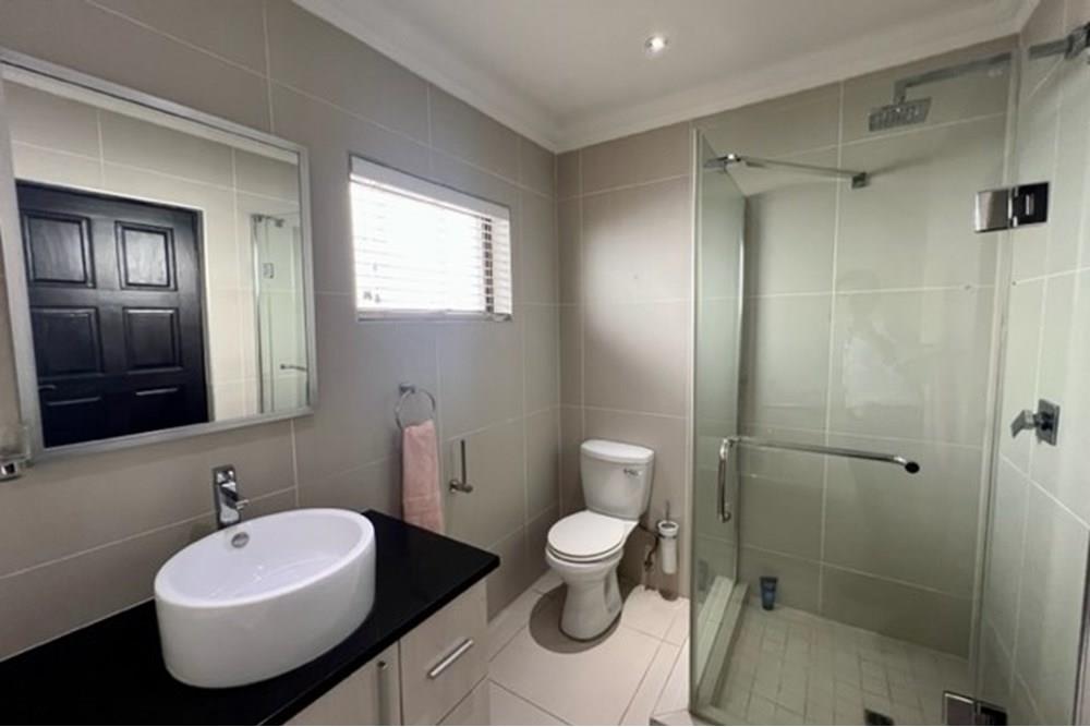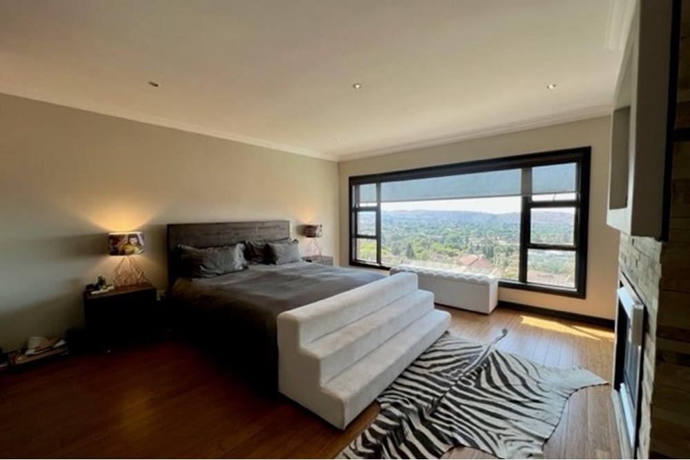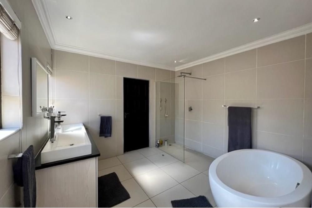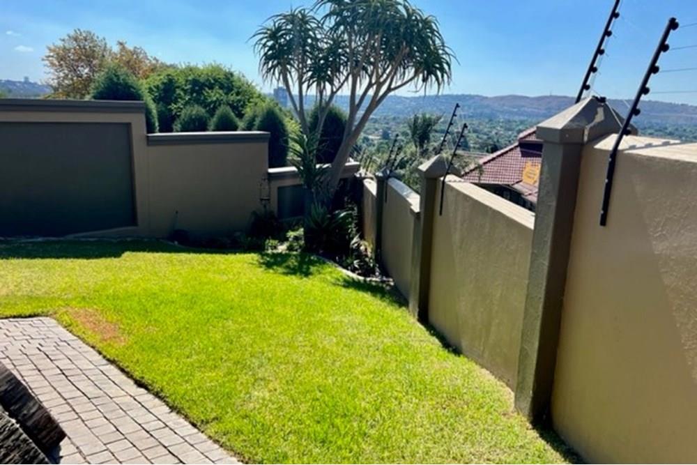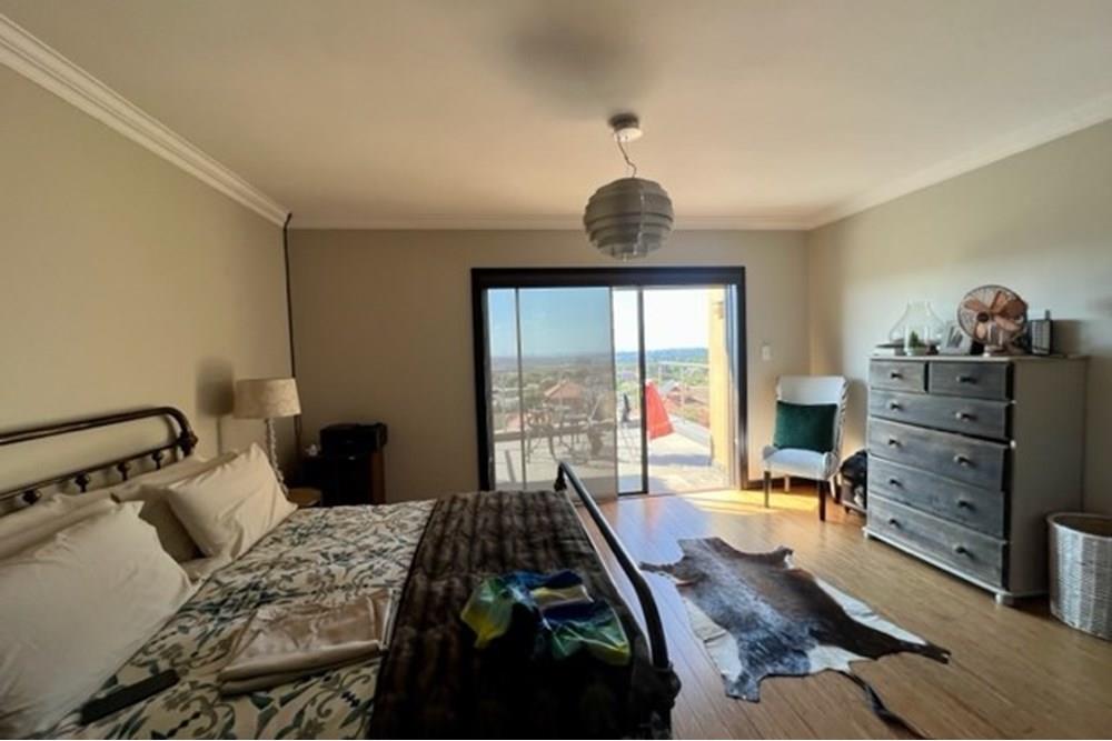 This 4 bedroom, 3 bathroom double storey cluster in a secure complex within a gated community offers fantastic accommodation and is beautifully maintained. An Inviting double volume entrance hall with feature lighting sets the tone as you enter this sun trap. The spacious lounge, dining room and kitchen are well thought out and fitted with bamboo floors, a feature fireplace and large picture windows that ensure plenty of natural light and capitalise on the amazing views, adding to the warmth and style of this exquisite property. The kitchen, lounge and dining room are positioned in such a way, that easy access to the covered verandah, braai, expansive sundeck, infinity pool and garden which make this property an entertainers dream. The first floor consists of 4 spacious bedrooms (2 en-suite bathrooms) complete with bamboo floors, built-in-cupboards and fitted blinds. The grand master suite has a built-in fireplace, walk through dressing room and lovely full bathroom en-suite. Both north facing bedrooms have direct access to the private balcony on the first floor. PLUS; Pre-paid electricity, gas , heated pool, 3 car garage with additional storage, back-up power supply to be installed upon secured lease.,