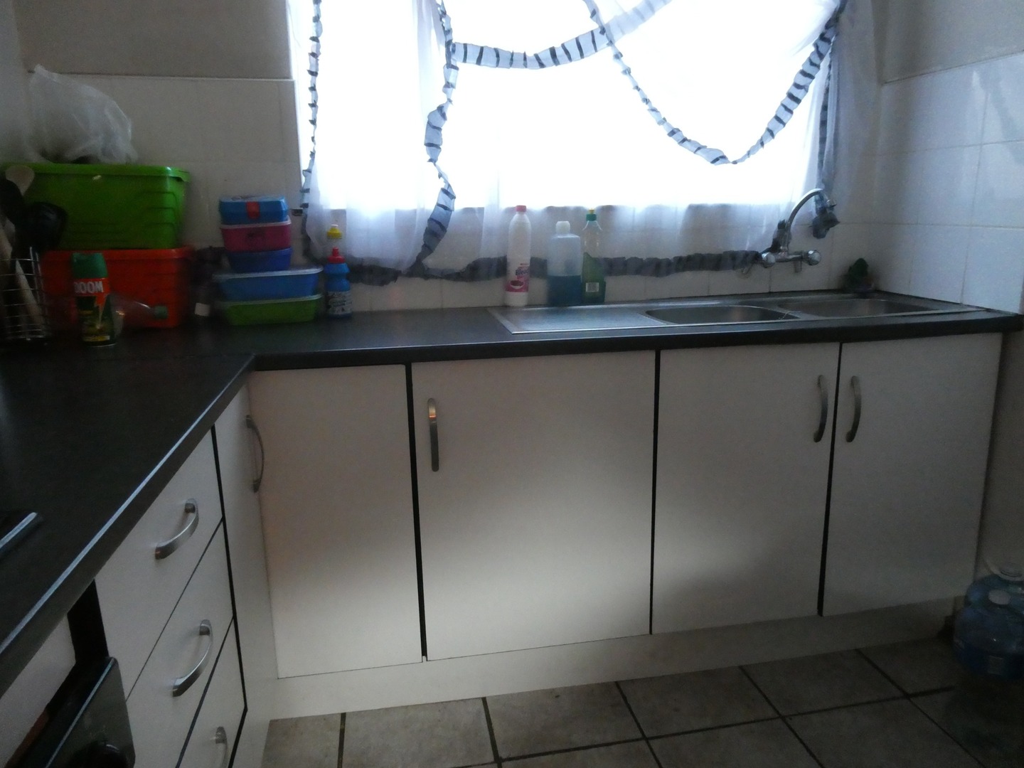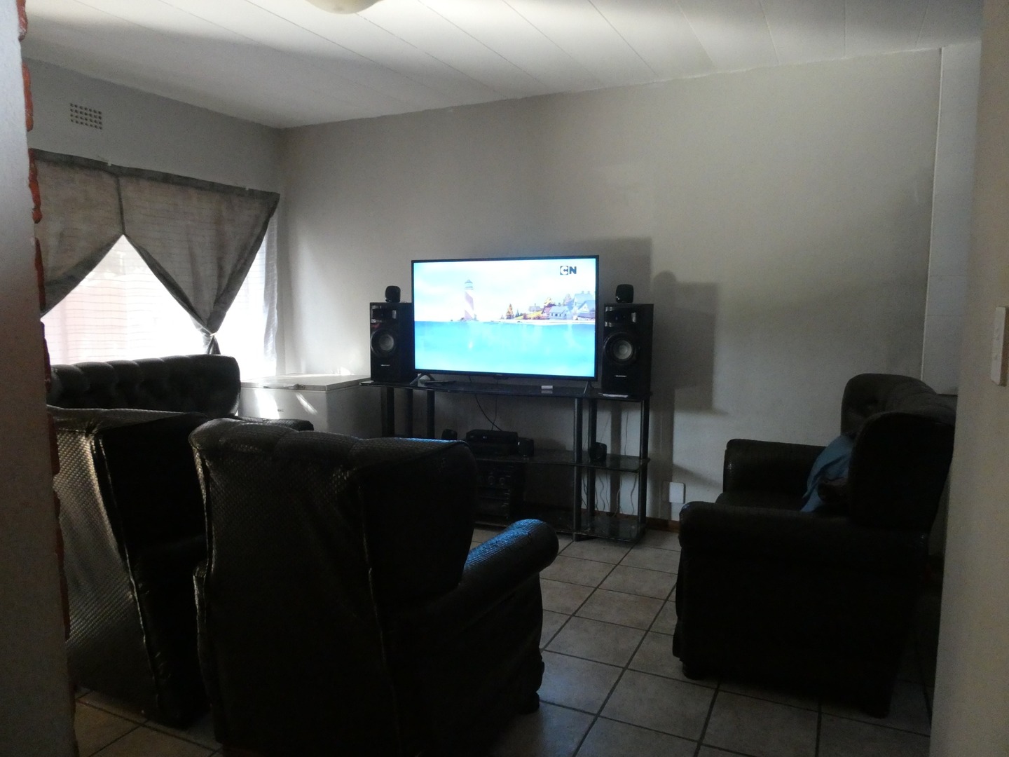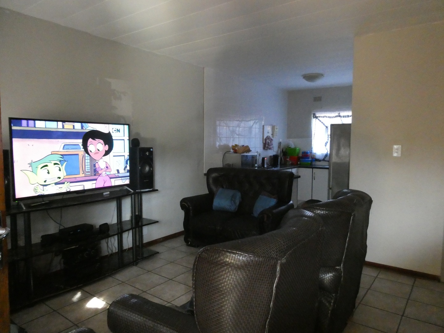 This is an open plan kitchen and lounge with enough space. There's a garden whereby one can create an entertaining area by putting a build in braai.