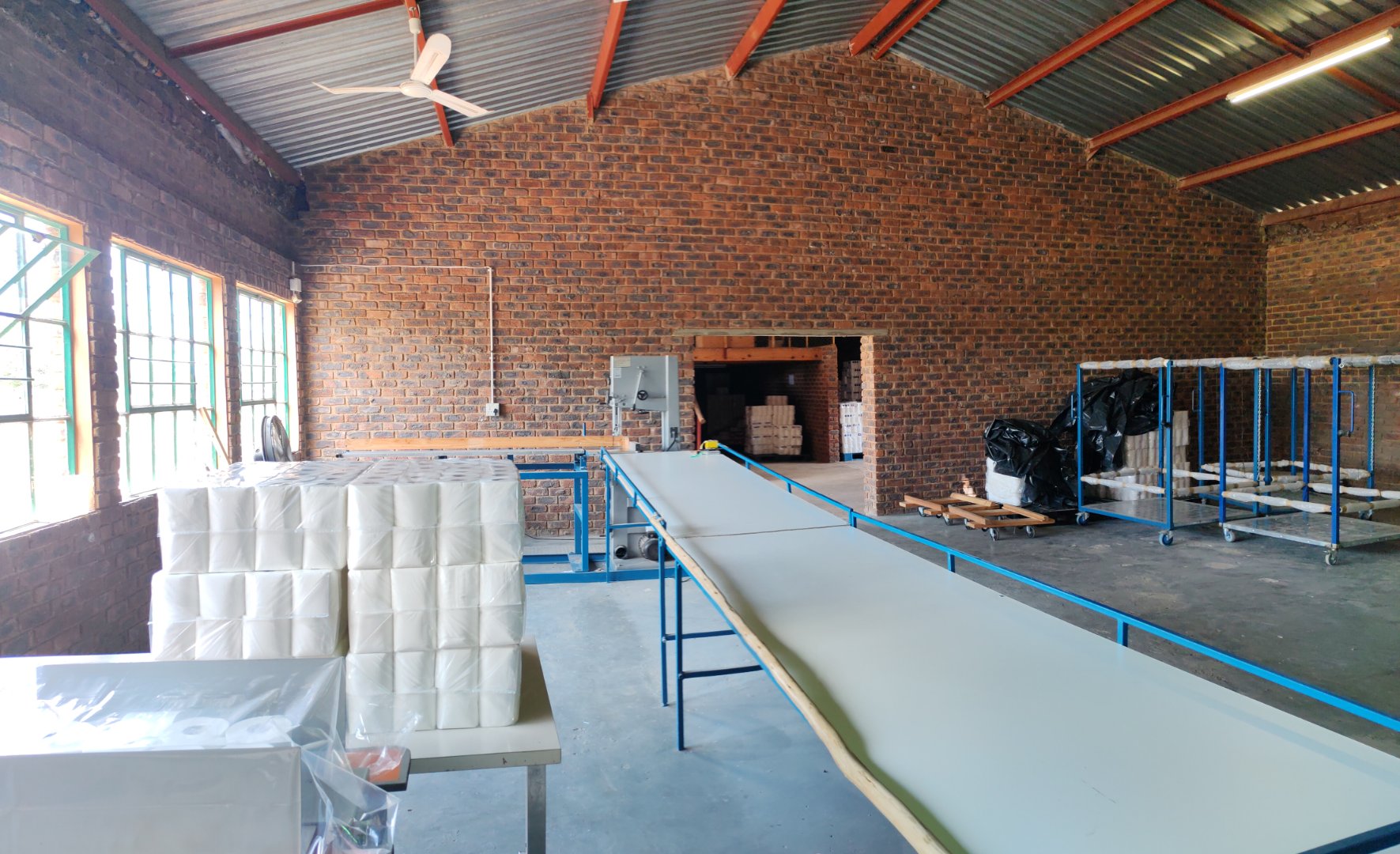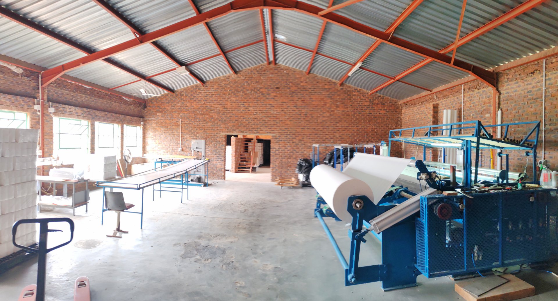 1x 1800sqm L-shaped factory building for toilet paper manufacturing.