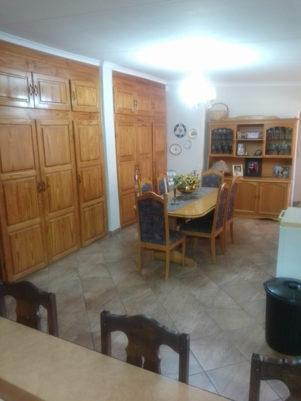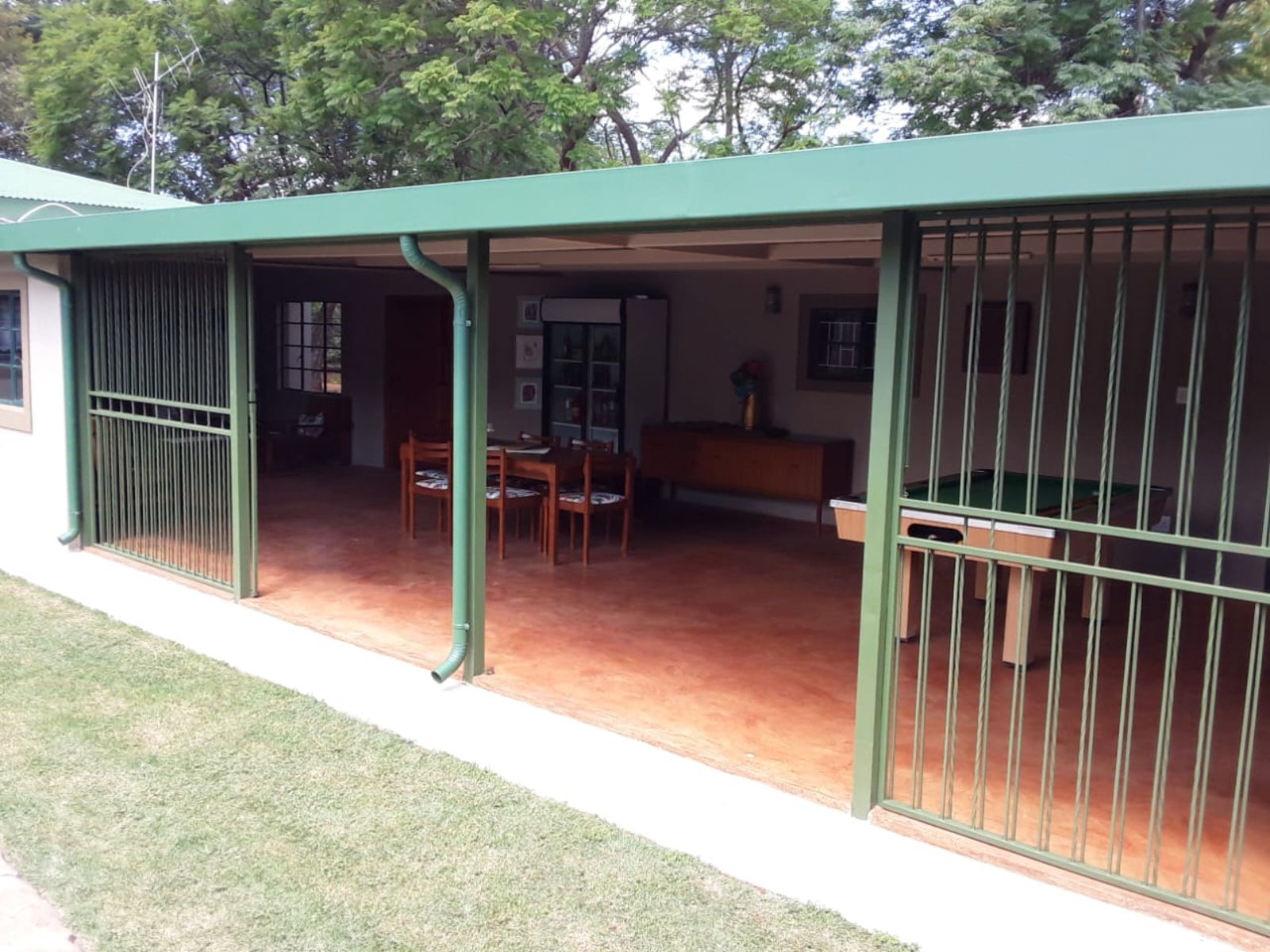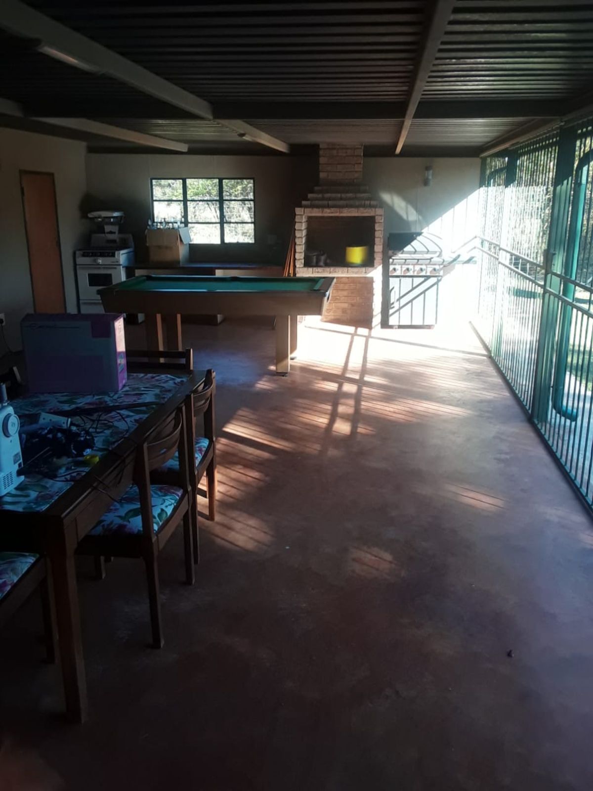 Step outside to an inviting entertainment area equipped with a built-in braai, perfect for hosting gatherings. The sparkling pool adds to the allure of outdoor living, while the extensive covered parking area offers space for 6-10 vehicles. The property is also equipped with a borehole, ensuring a reliable and sufficient water supply for all your needs.