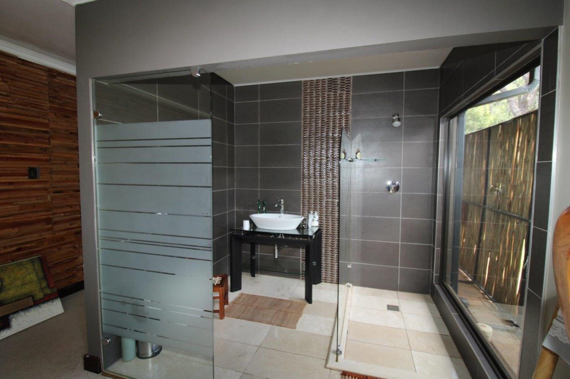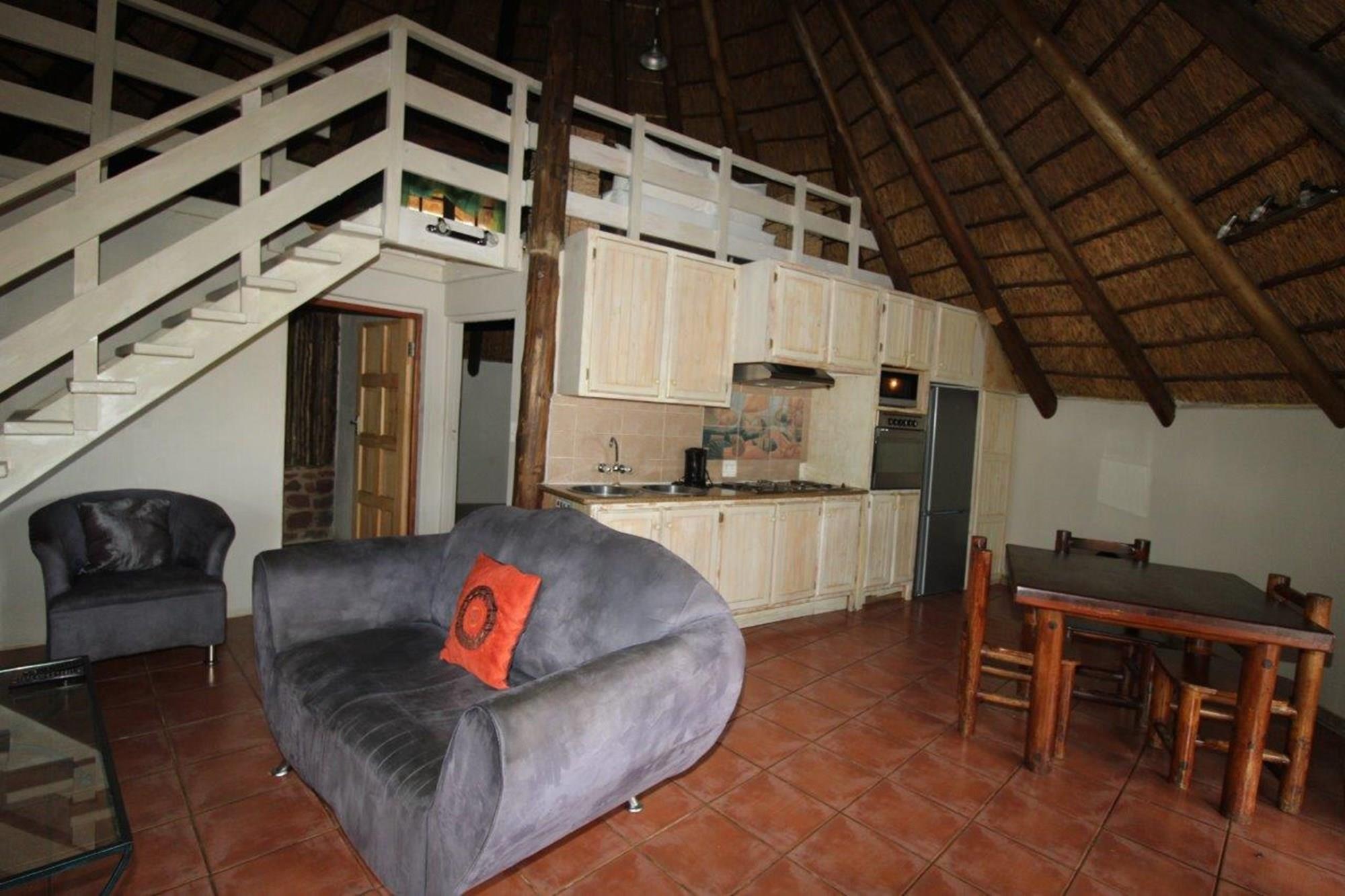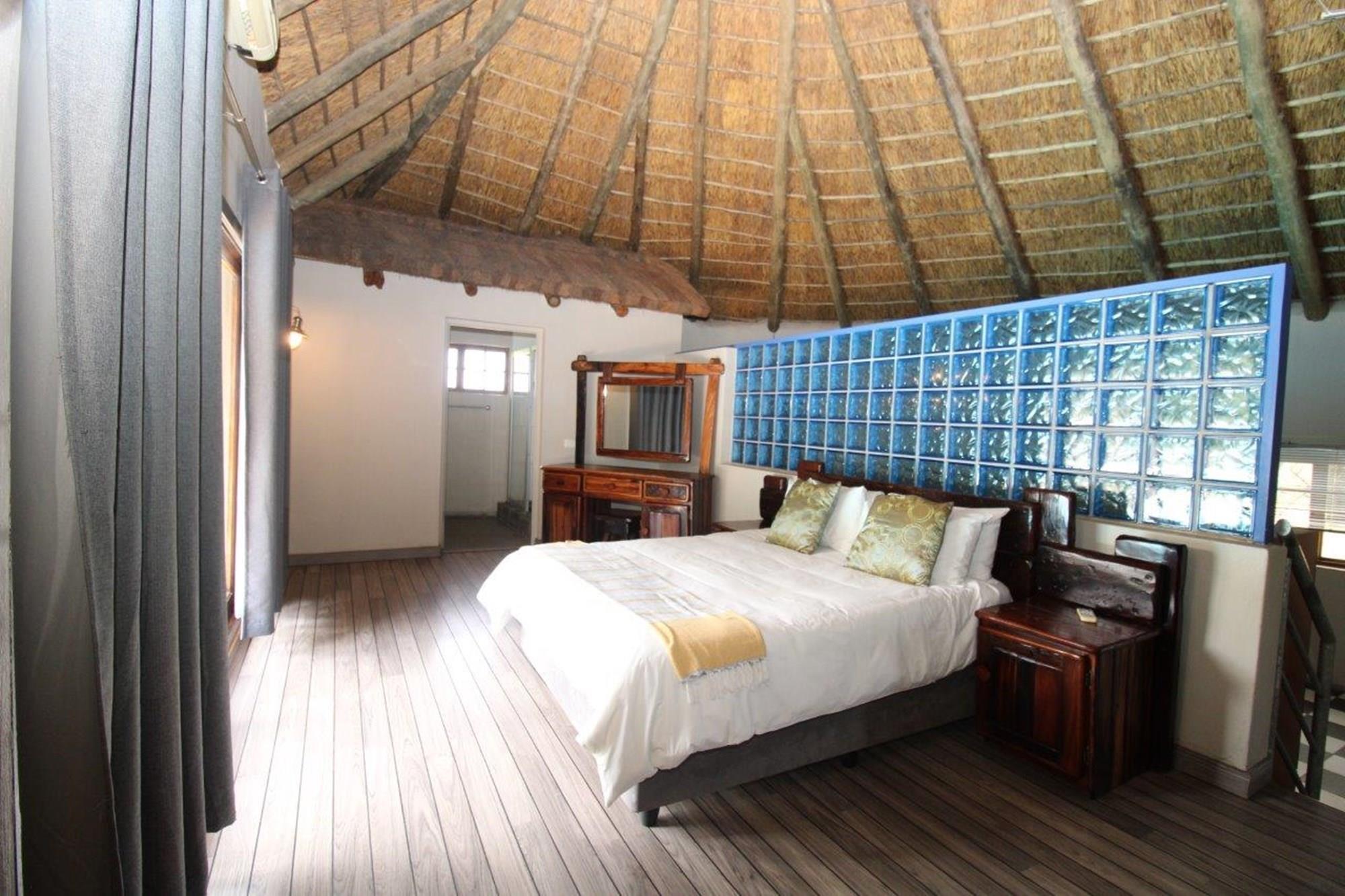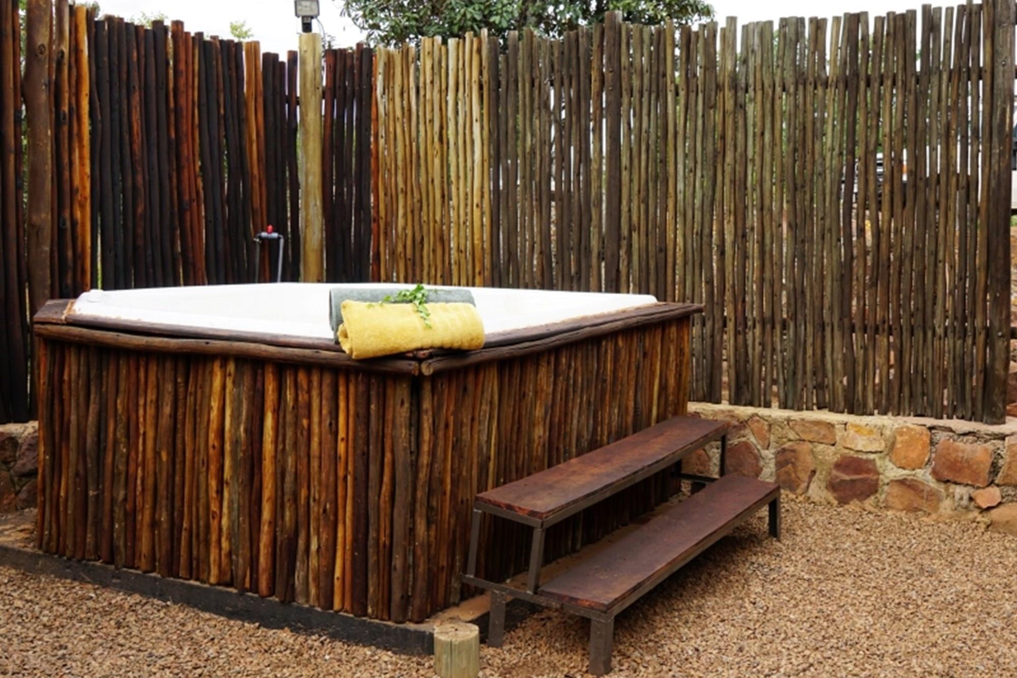 Driving to the top of the mountain, you will be surprised to find the cultural bush village in a spectacular private setting. Three chalets sleeps 8 people in total with own swimming pool, bush lapa/restaurant overlooking the dam. Covered day beds for total peace and relaxation. The cultural village is not connected to the grid. Chalets have gas geysers.