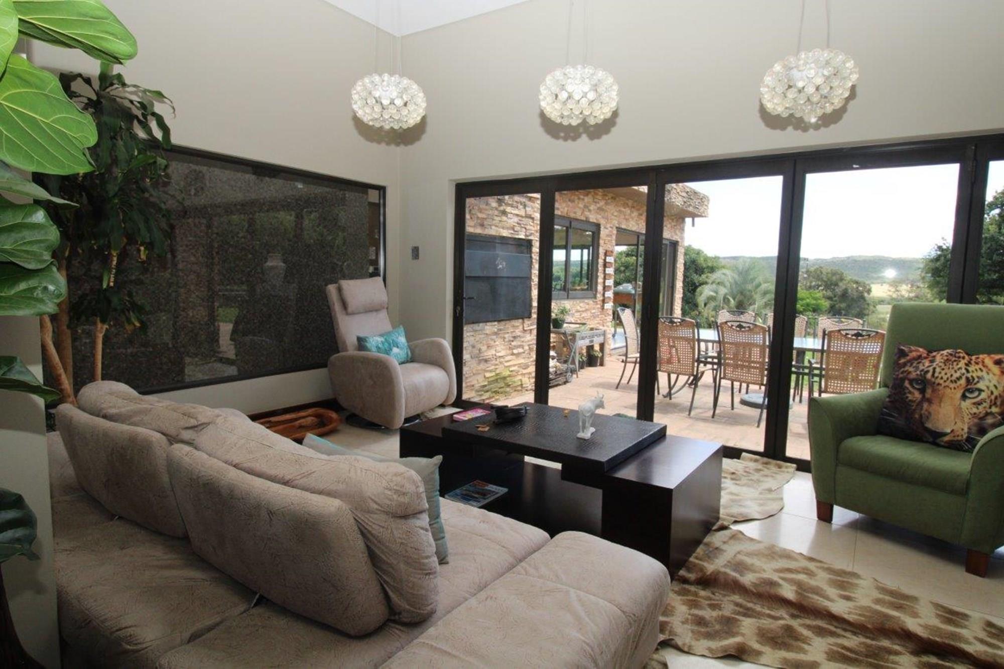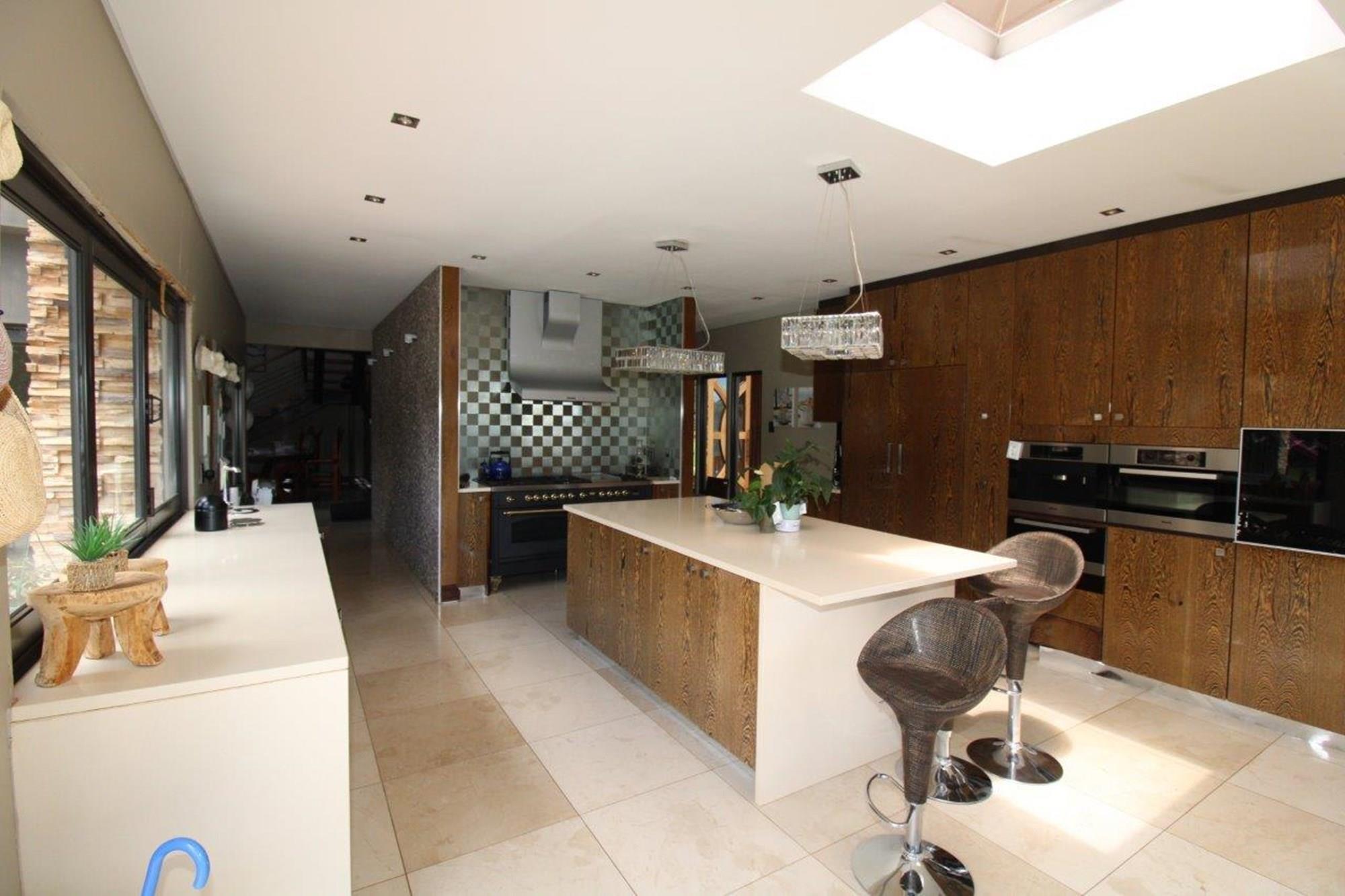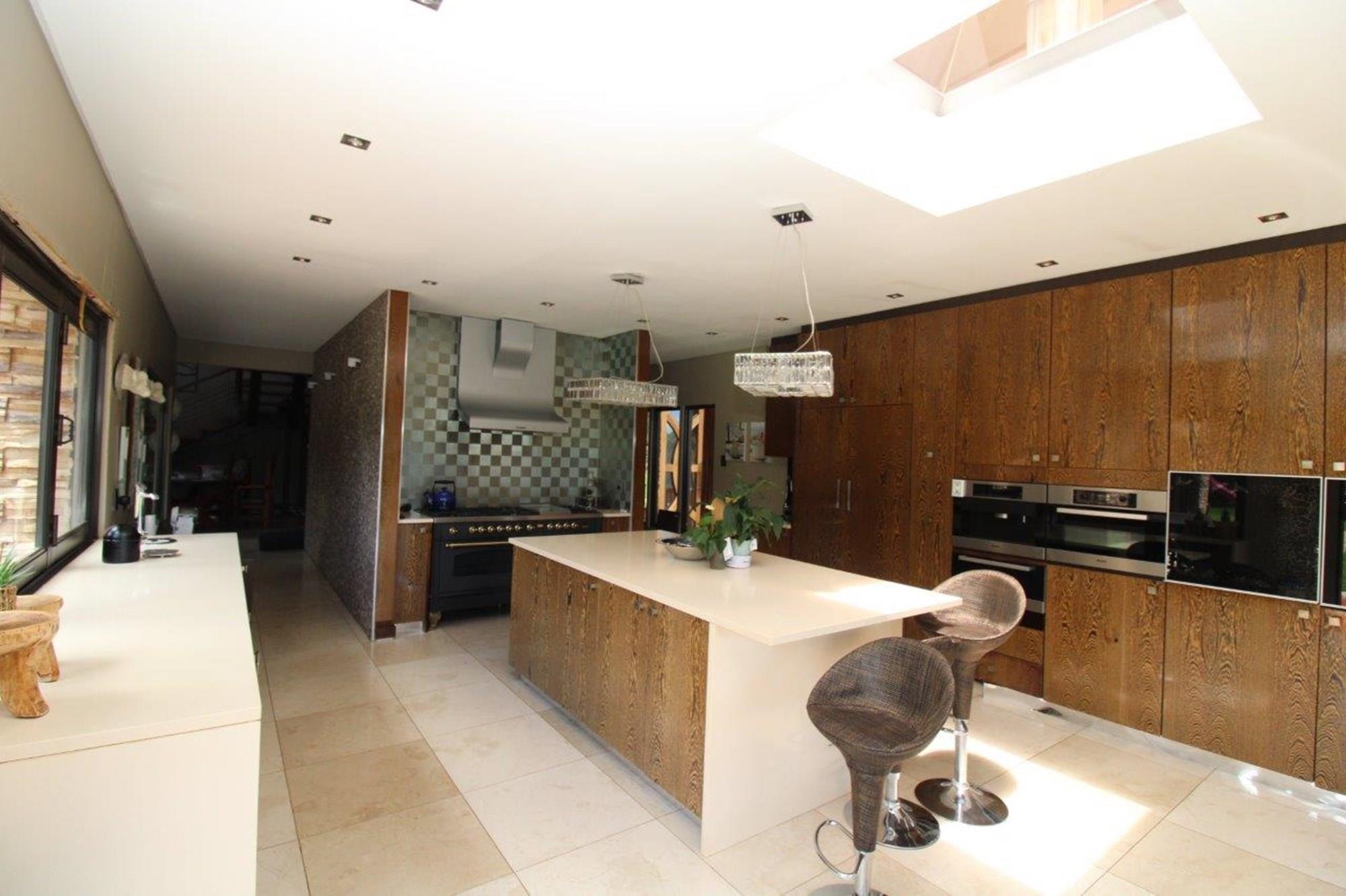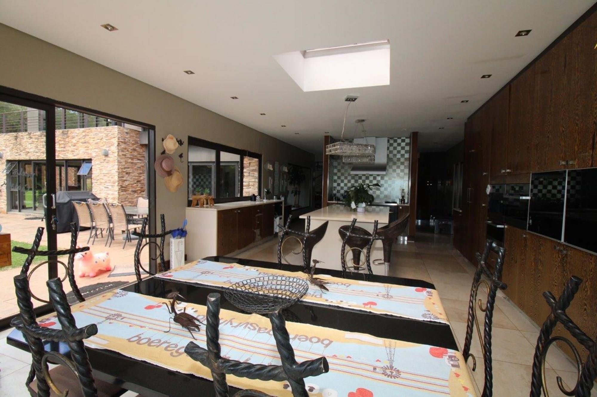 Luxurious 5 bedroom and 5 bathroom house with three lounges, dining room and modern and well equipped kitchen. Two studies and four garages including 1 hanger for the helicopter (helicopter not included) and Heli-Pad. Large swimming pool and well established and manicured garden overlooking the Waterberg mountains.ALL THE OWNER`S HOUSE FURNITURE NOW INCLUDED.
