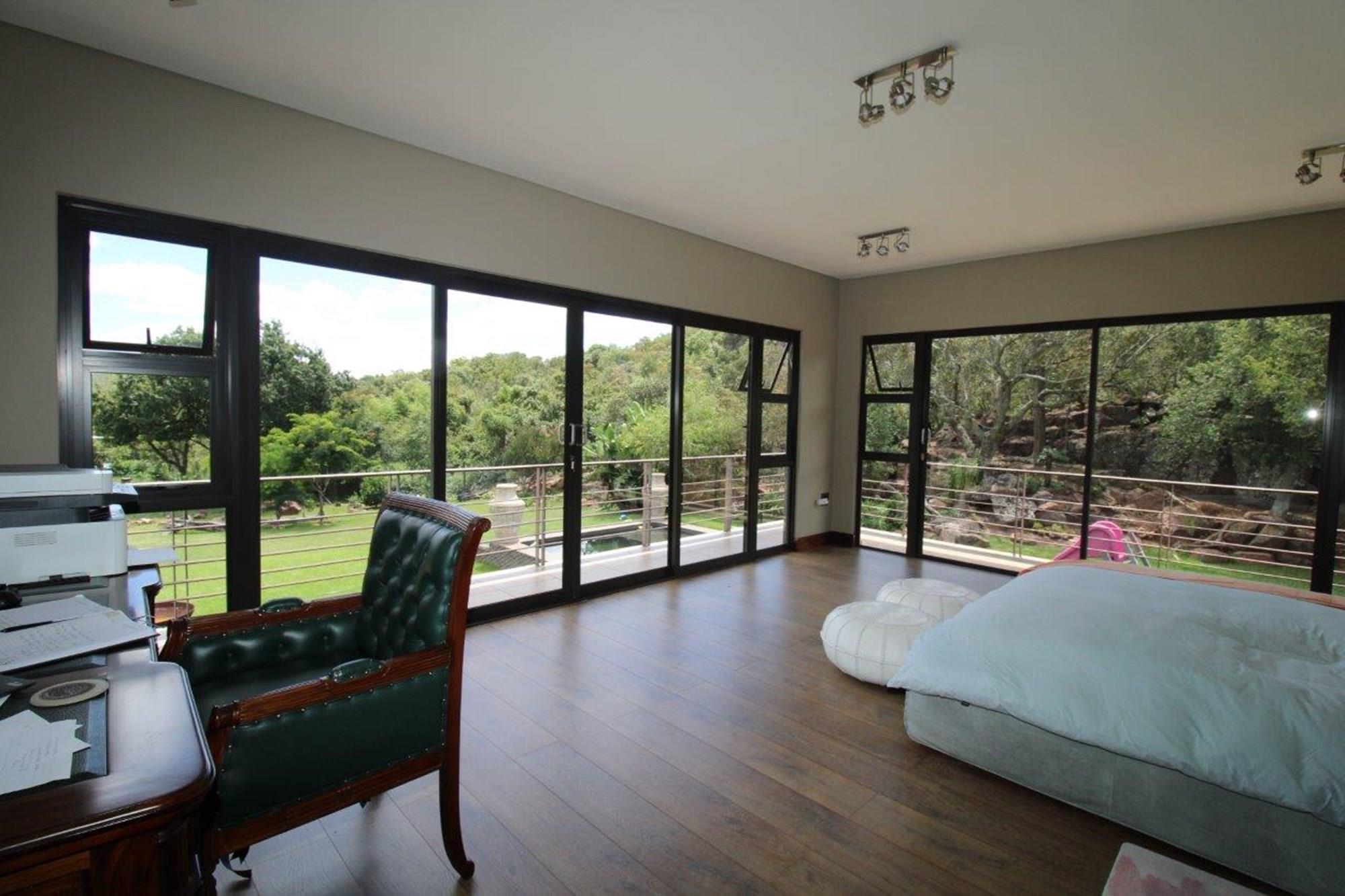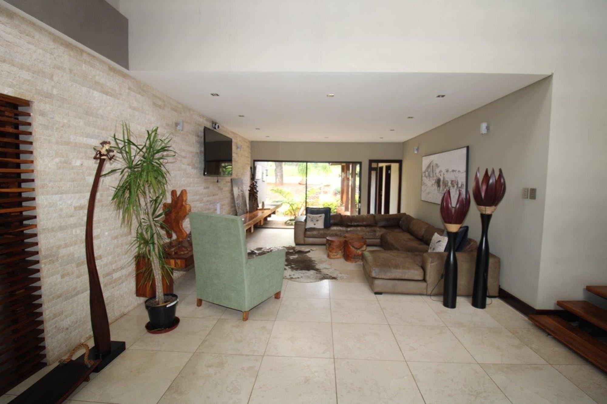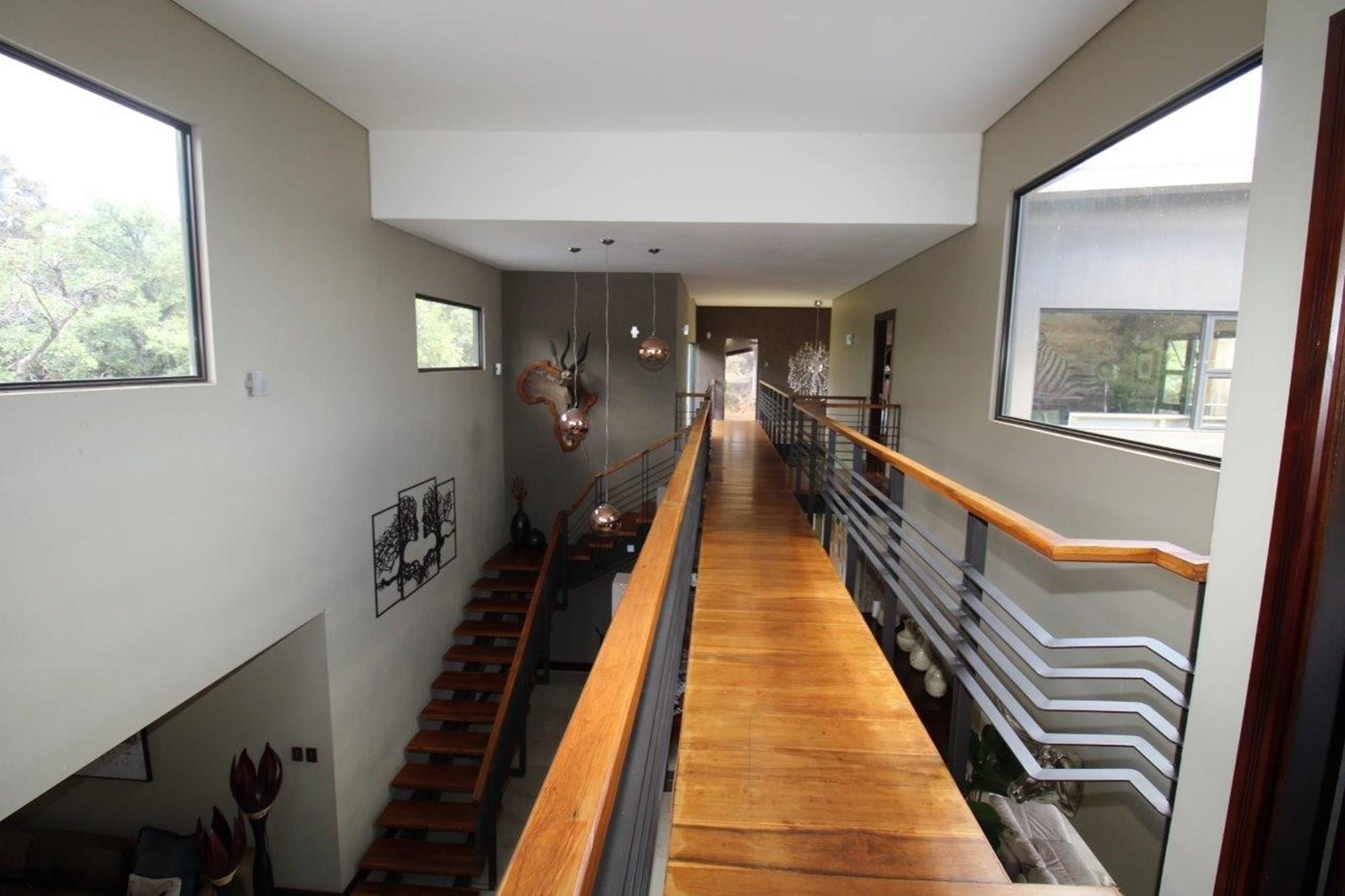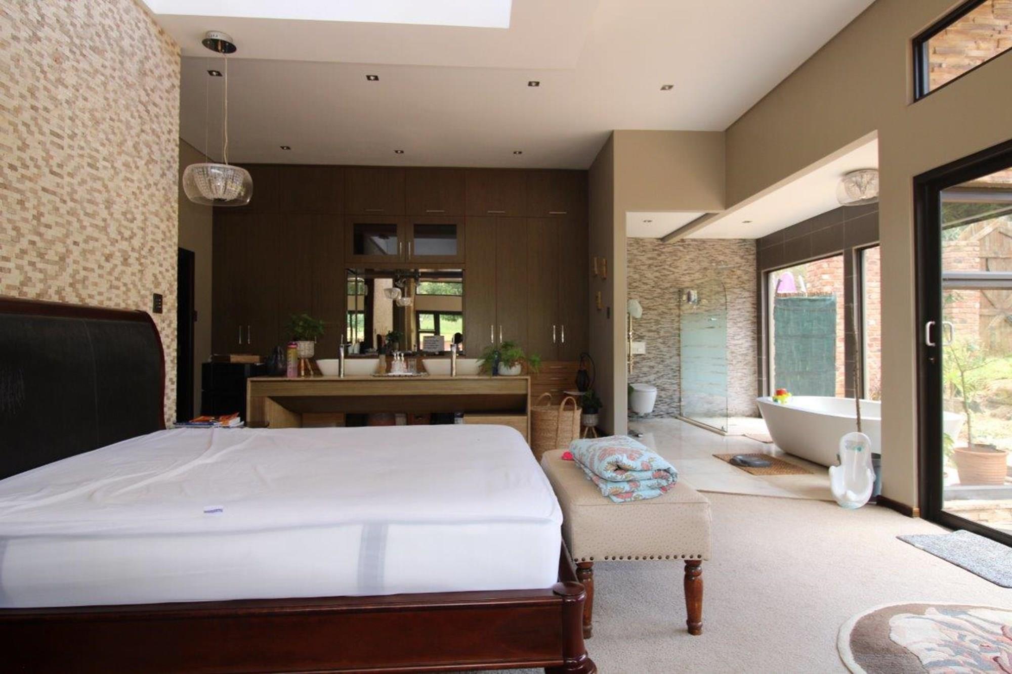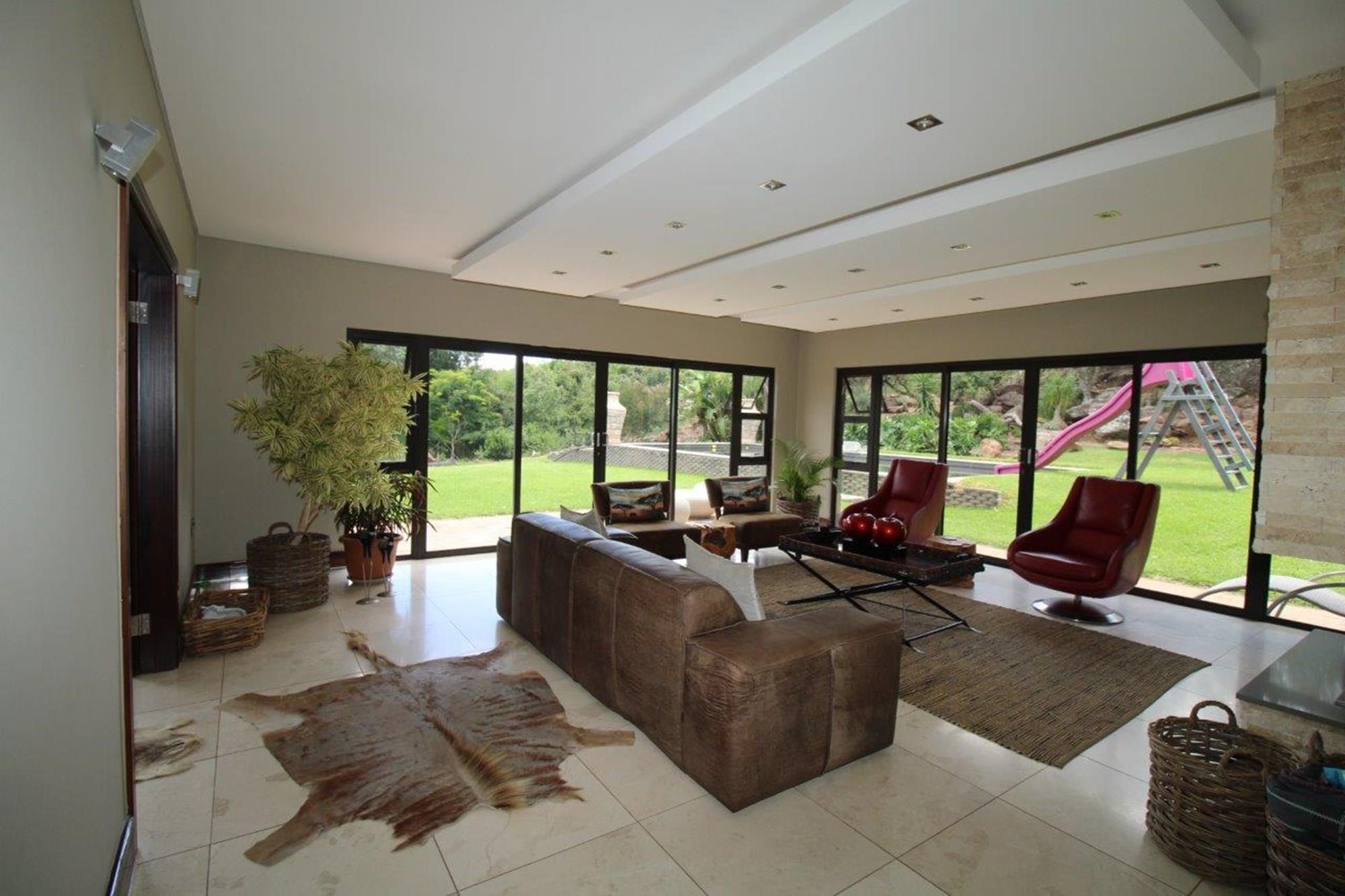 Luxurious 5 bedroom and 5 bathroom house with three lounges, dining room and modern and well equipped kitchen. Two studies and four garages including 1 hanger for the helicopter (helicopter not included) and Heli-Pad. Large swimming pool and well established and manicured garden overlooking the Waterberg mountains.ALL THE OWNER`S HOUSE FURNITURE NOW INCLUDED.