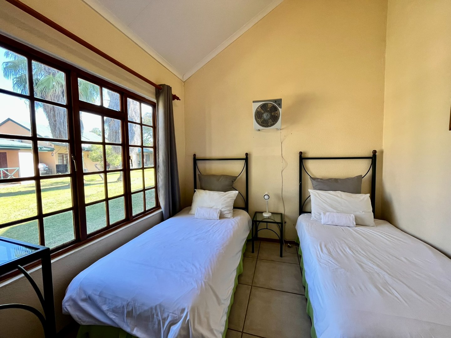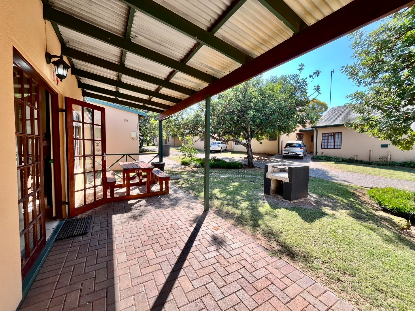 The property features three bedrooms and one well-maintained bathroom, ensuring comfort for residents and guests alike. The open-plan kitchen and lounge create a welcoming atmosphere, seamlessly blending cooking, dining, and relaxation. As an added extra, this property has two aircon units that is a huge bonus for those hot bushveld summer days. A covered patio, complete with an outdoor table set, provides the perfect space for enjoying meals in the fresh air, while the braai area is ideal for entertaining and embracing South Africa’s outdoor lifestyle. Additionally, the home includes single covered parking, offering secure and convenient vehicle storage.