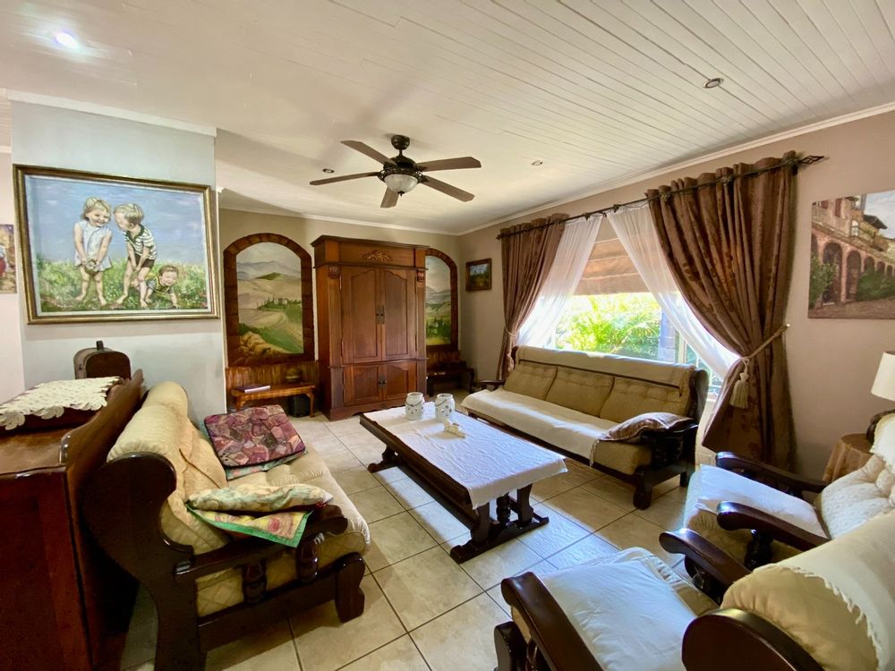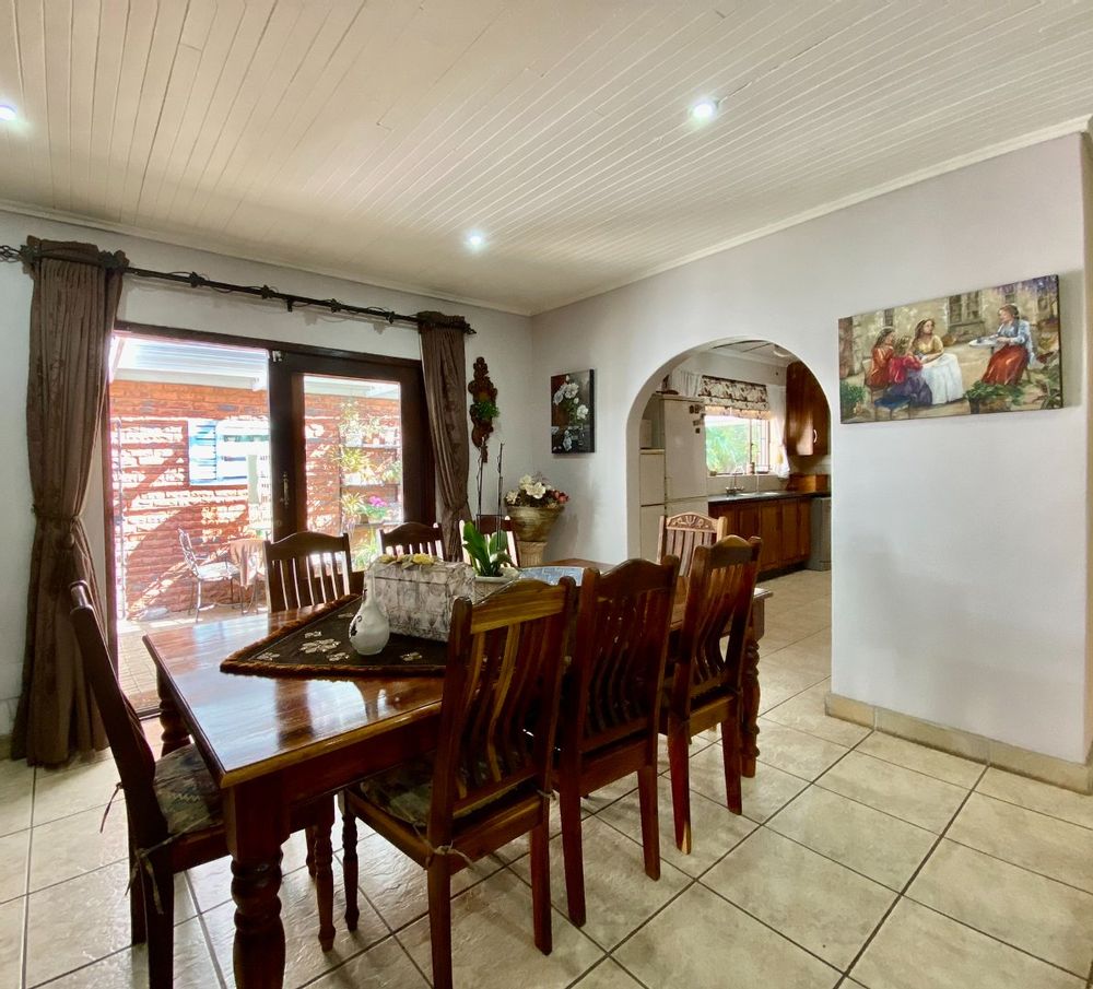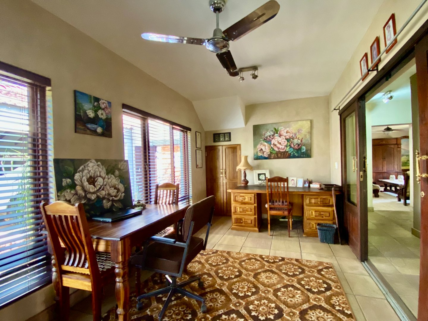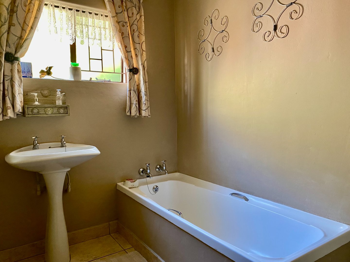 The home is thoughtfully designed with tiled flooring throughout, except for the main bedroom, which is carpeted to add a touch of coziness. Sustainability is a key feature of this property, with 2 solar geysers installed to provide energy-efficient hot water. Outdoor living is equally impressive, with a covered patio that offers a perfect spot for alfresco dining or simply enjoying the serene garden views. The established garden is a green oasis, providing a tranquil retreat from the hustle and bustle of daily life.