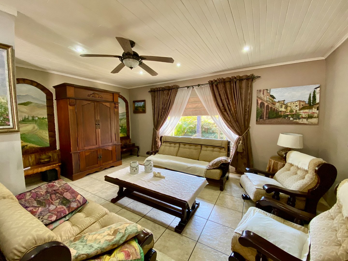 Welcome to this stunning double-story home, where elegant design meets a lush garden, offering a perfect blend of style and comfort for the whole family. This home is designed to cater to all your needs, featuring 5 spacious bedrooms. Three of these bedrooms are conveniently located downstairs, while two are upstairs, including one with a walk-in closet, perfect for organizing your wardrobe. The main bedroom is a haven of comfort, equipped with both a ceiling fan and air conditioning to ensure a pleasant atmosphere year-round. With 3 well-appointed bathrooms, including a luxurious main en-suite, your family will enjoy both convenience and privacy.
