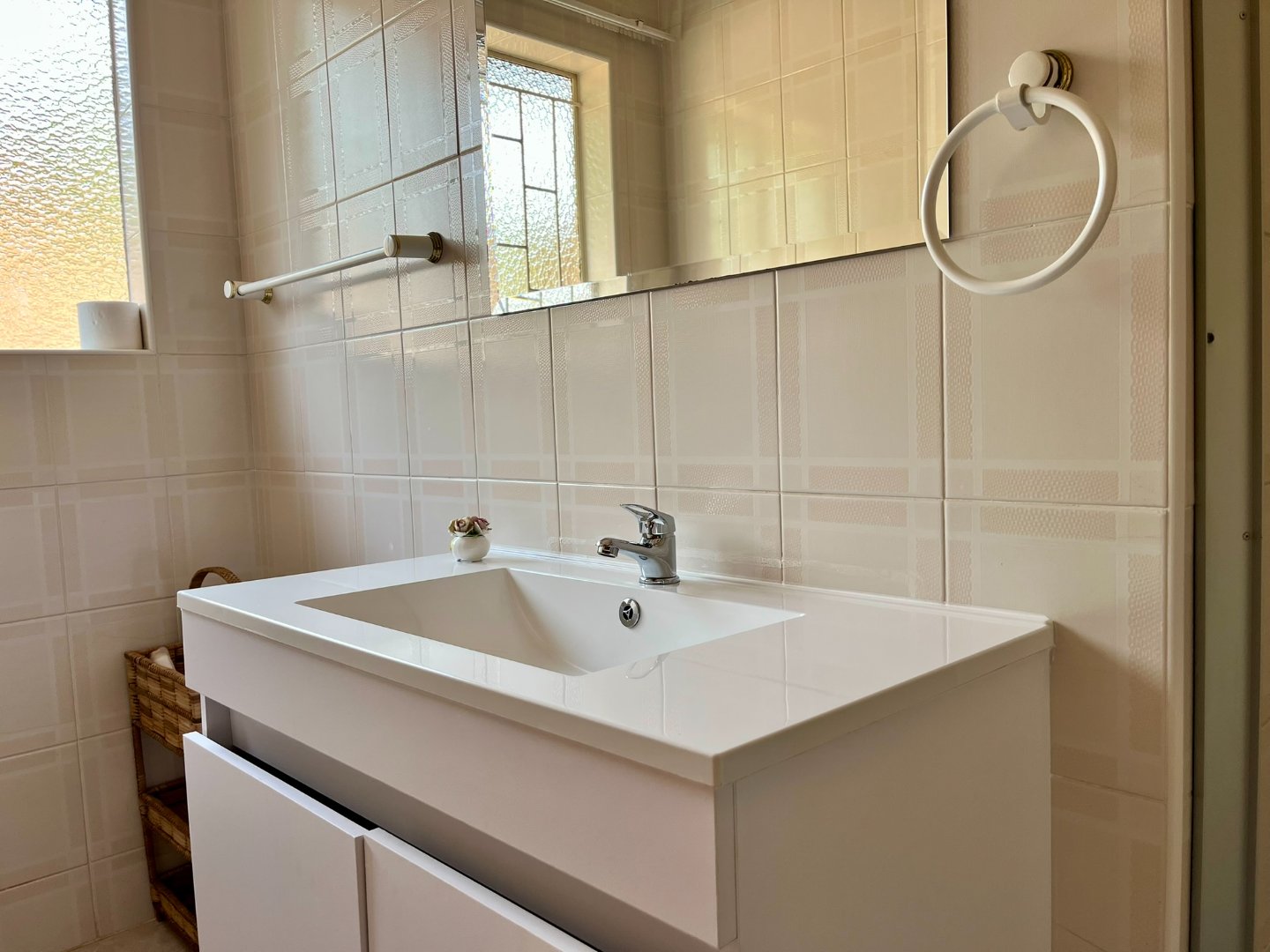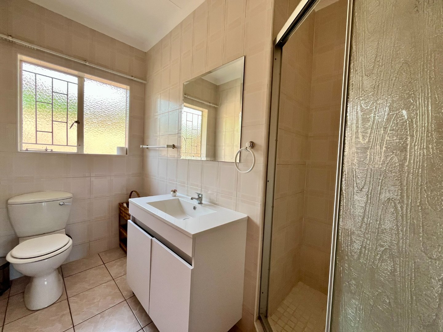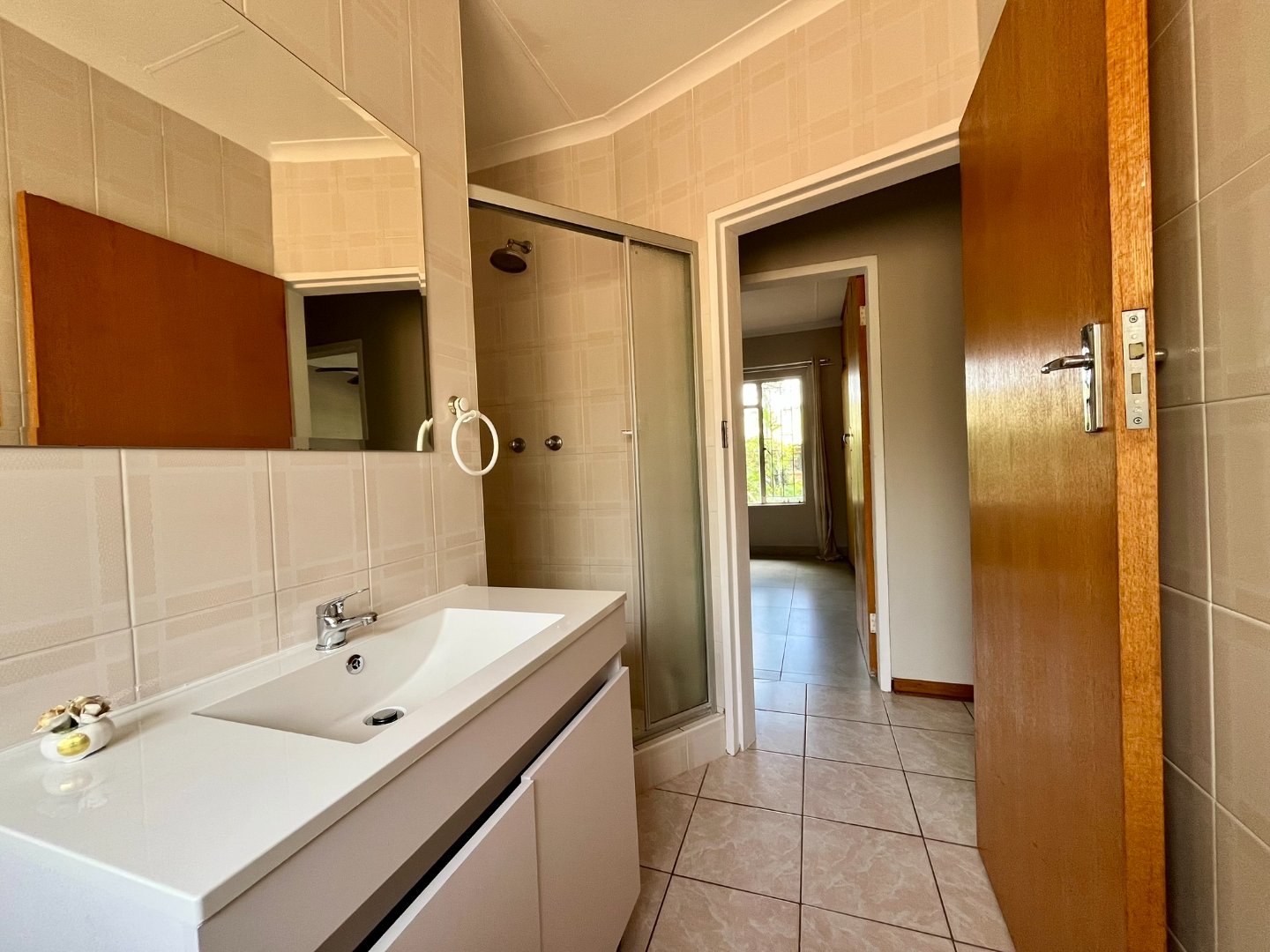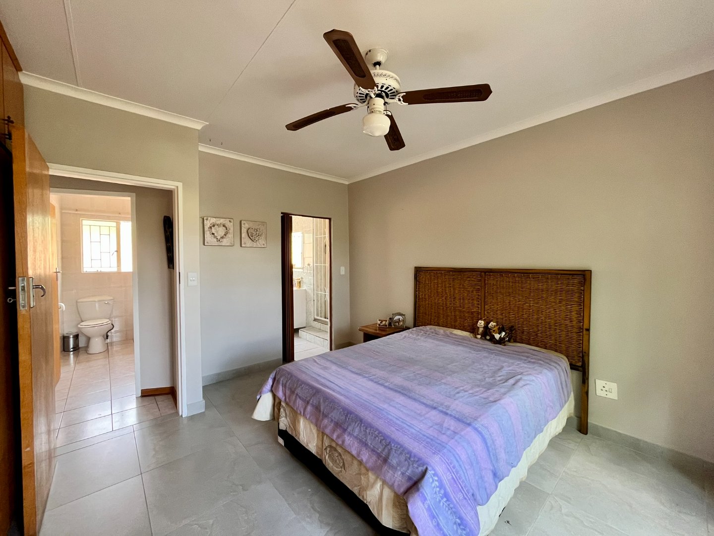Nestled in the safe and tranquil area of Bergsig, Bela Bela, this charming 2-bedroom, 2-bathroom home is the perfect retreat for those seeking comfort and serenity. Situated in a safe and secure complex with a remote-controlled gate, the property promises peace of mind and convenience. The house features a spacious open-plan lounge and dining area, ideal for relaxation and entertaining. The kitchen, fitted with built-in cupboards, is both functional and inviting. The main bedroom boasts an ensuite bathroom with a bath, while the spare bedroom is complemented by a separate bathroom with a shower.
