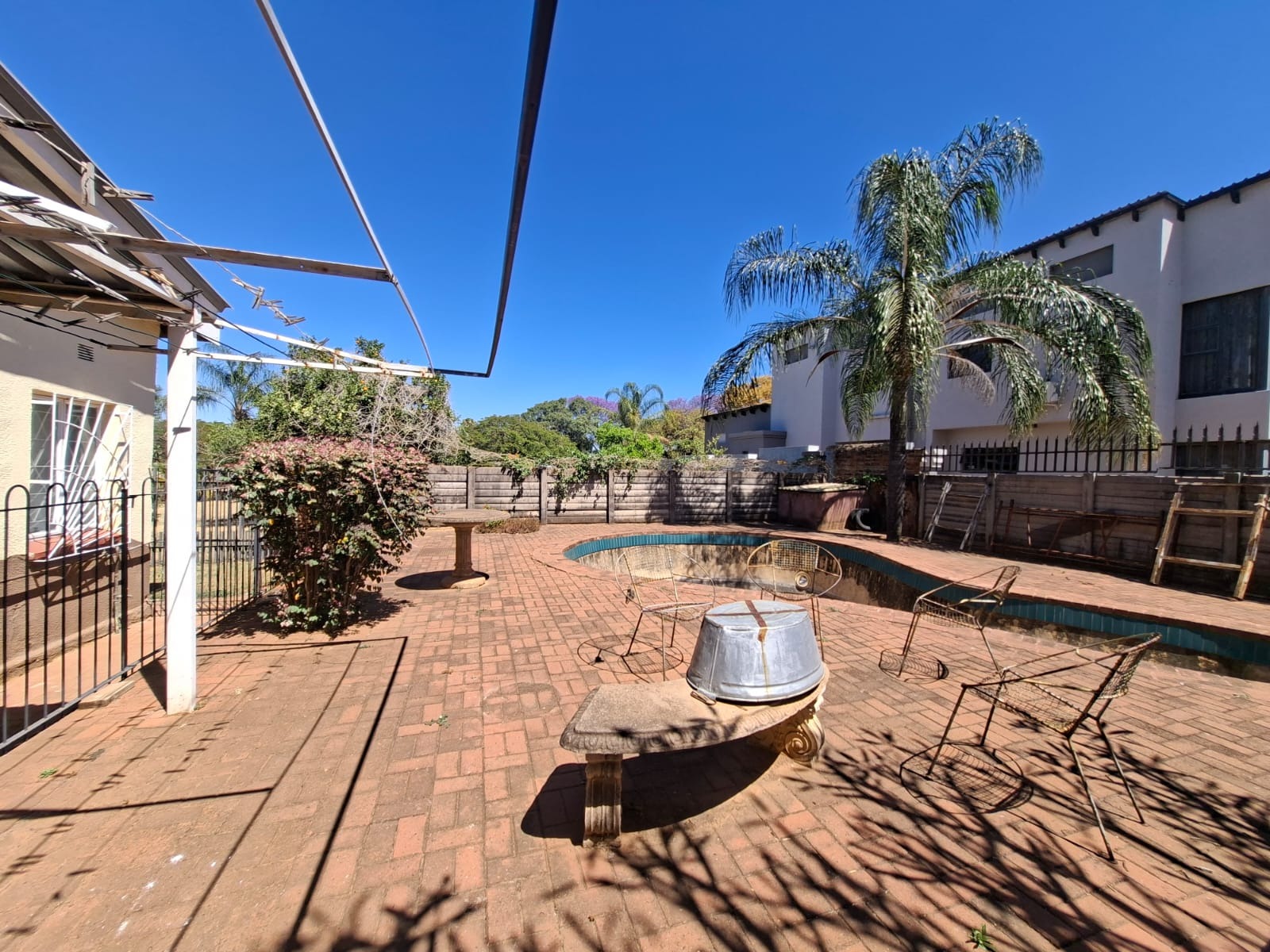 A large, secure veranda provides the perfect spot for entertaining or simply enjoying the garden view. The property also includes two double garages, ample outside parking, and a storeroom for garden equipment. The swimming pool is safely enclosed with its own fence, making it family-friendly and private.
