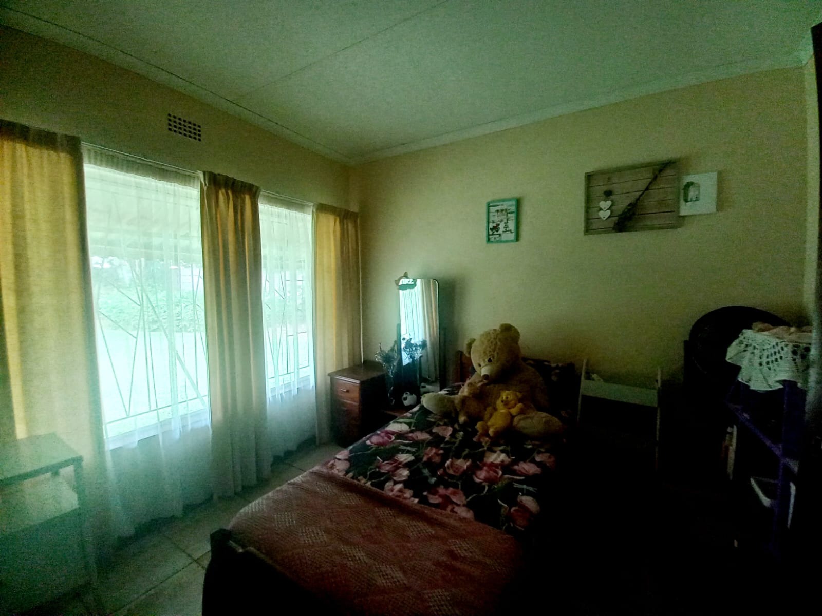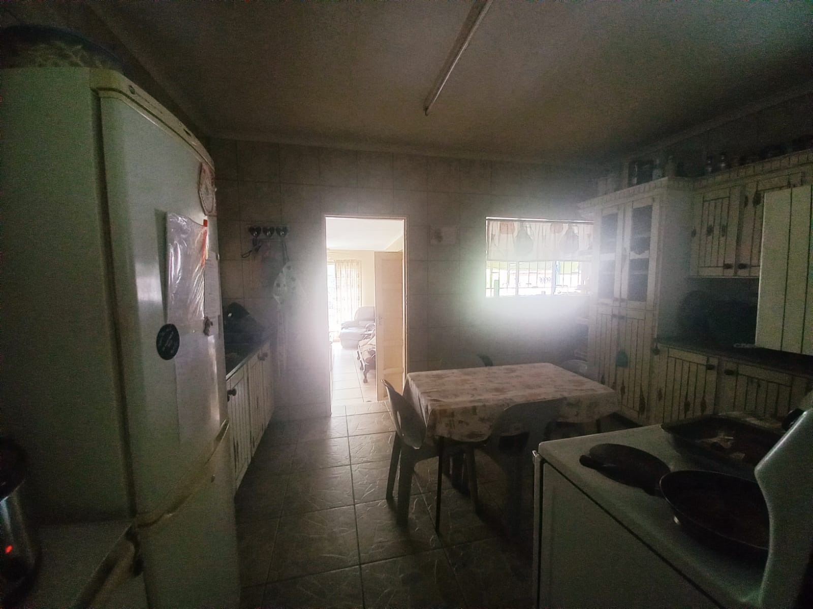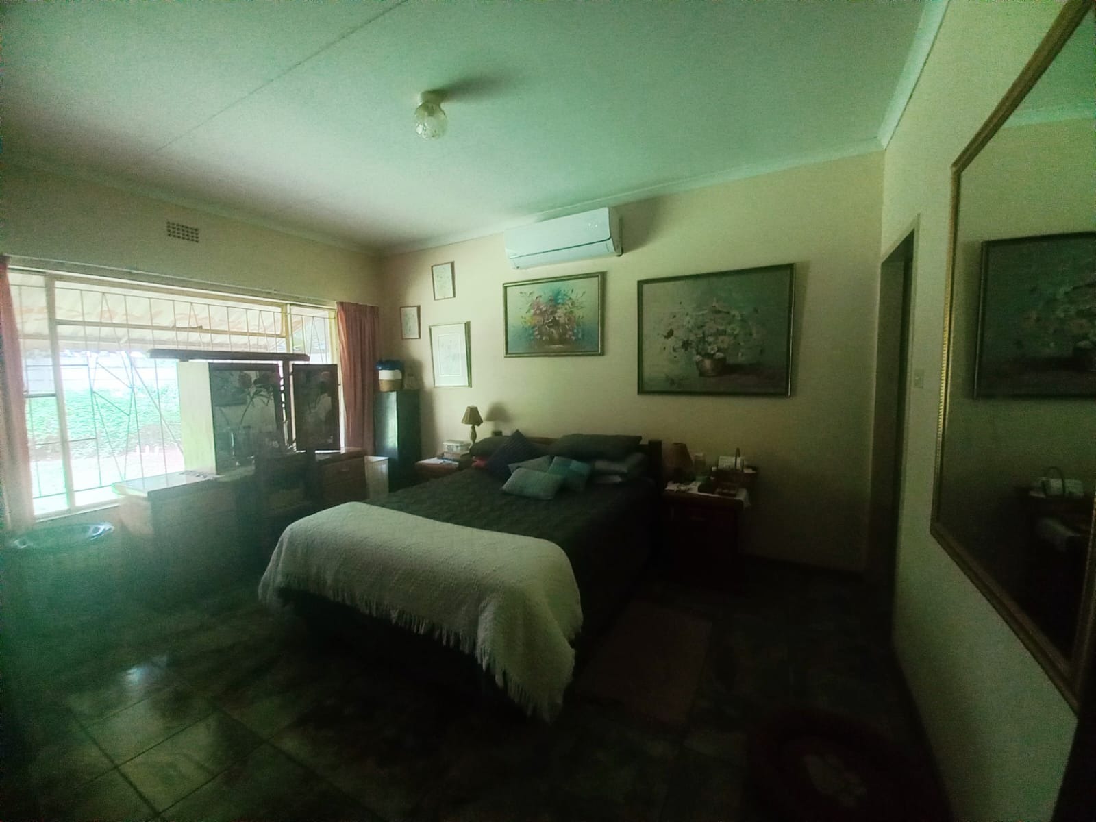The open-plan dining room and lounge create a warm and inviting space, perfect for family gatherings and entertaining friends. The kitchen is a chef’s delight, featuring elegant wooden cupboards, full tiling, and a separate scullery and laundry area to simplify your daily tasks. A dedicated office room provides a versatile space for work or study.