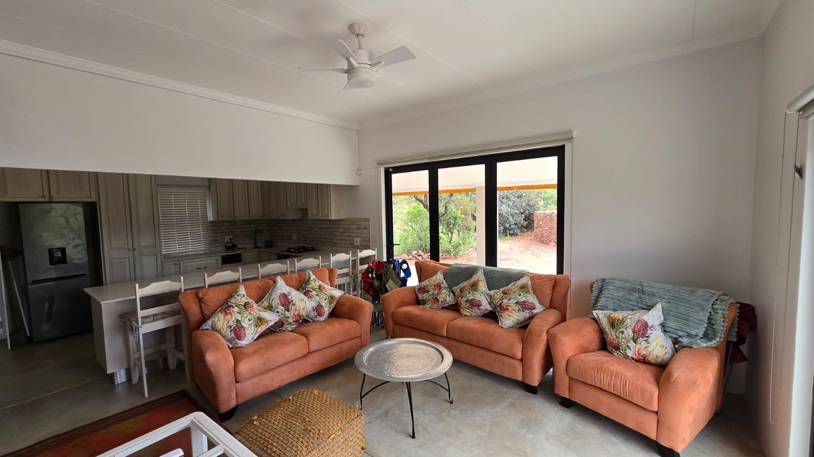 Step into a thoughtfully designed residence where contemporary living meets rustic charm. The open-plan kitchen with sleek built-in cupboards flows seamlessly into the spacious lounge and dining area—creating an inviting hub for everyday family life or memorable entertaining.
