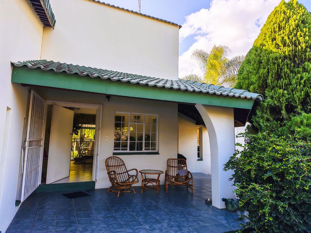 This charming 2-bedroom, 2-bathroom home sits on a generous 1178m2 corner stand, surrounded by a lush, private garden and shaded by mature trees. The home boasts a warm and inviting atmosphere with spacious living areas, open-plan kitchen and dining, a large TV lounge, and a cozy front stoep to enjoy your morning coffee.