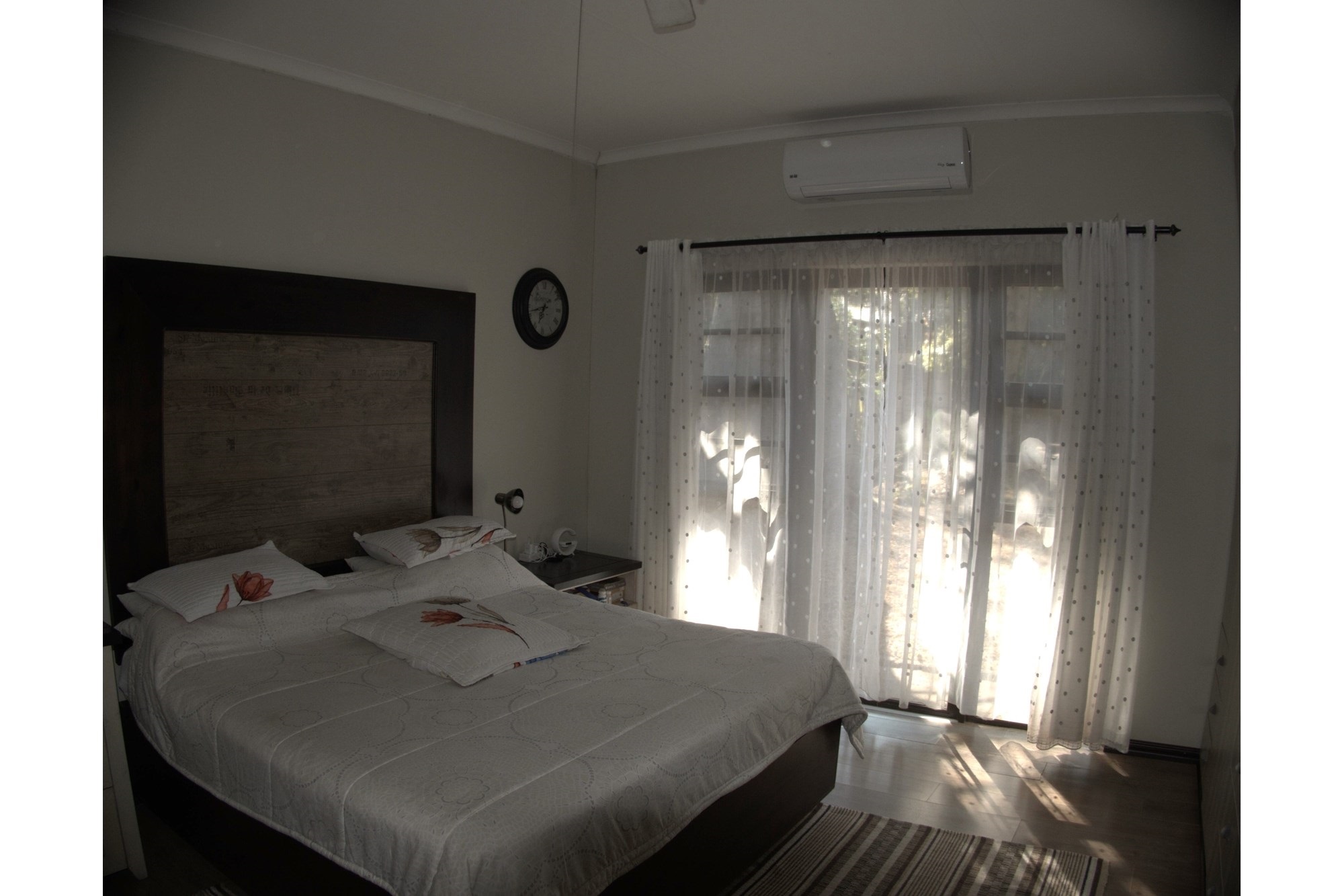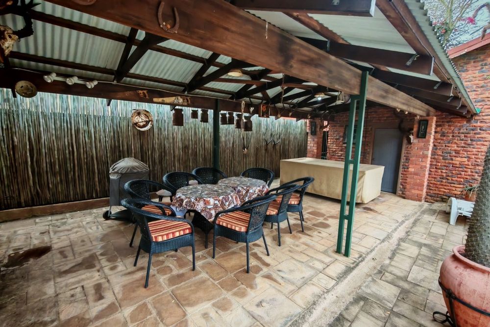 Spacious 3-Bedroom Family Home with Flatlet in Bela Bela This large 460 m2 home offers comfortable family living with modern features and plenty of space. The main house includes: 3 bedrooms, with the main en-suite featuring a bath, shower, basin, and toilet 2.5 bathrooms in total, with a guest toilet Air conditioning in the main bedroom and lounge A modern kitchen with built-in cupboards, scullery, and laundry area Open-plan living areas flowing seamlessly from the dining room and lounge into a second indoor lounge with a built-in braai A private study adjacent to the lounge Additional wing: Four versatile rooms currently used as a study, drum room, needlework room, and cartridge loading space Upstairs piano included Separate structure: Flatlet with en-suite bathroom (shower, toilet, and basin) Meat processing room, separate storeroom, and outside toilet conveniently located near the lapa The outside structure can be converted into two flatlets Outdoor features: Swimming pool and under roof lapa with outdoor built-in braai Double garage with electric doors plus additional carports Lush irrigated garden with a 2,200-liter reservoir Secure perimeter with palisade fencing in front, walls on the sides, and security beams This property offers excellent potential – whether for extended family living, renting out the flatlet, or even creating two separate living spaces.