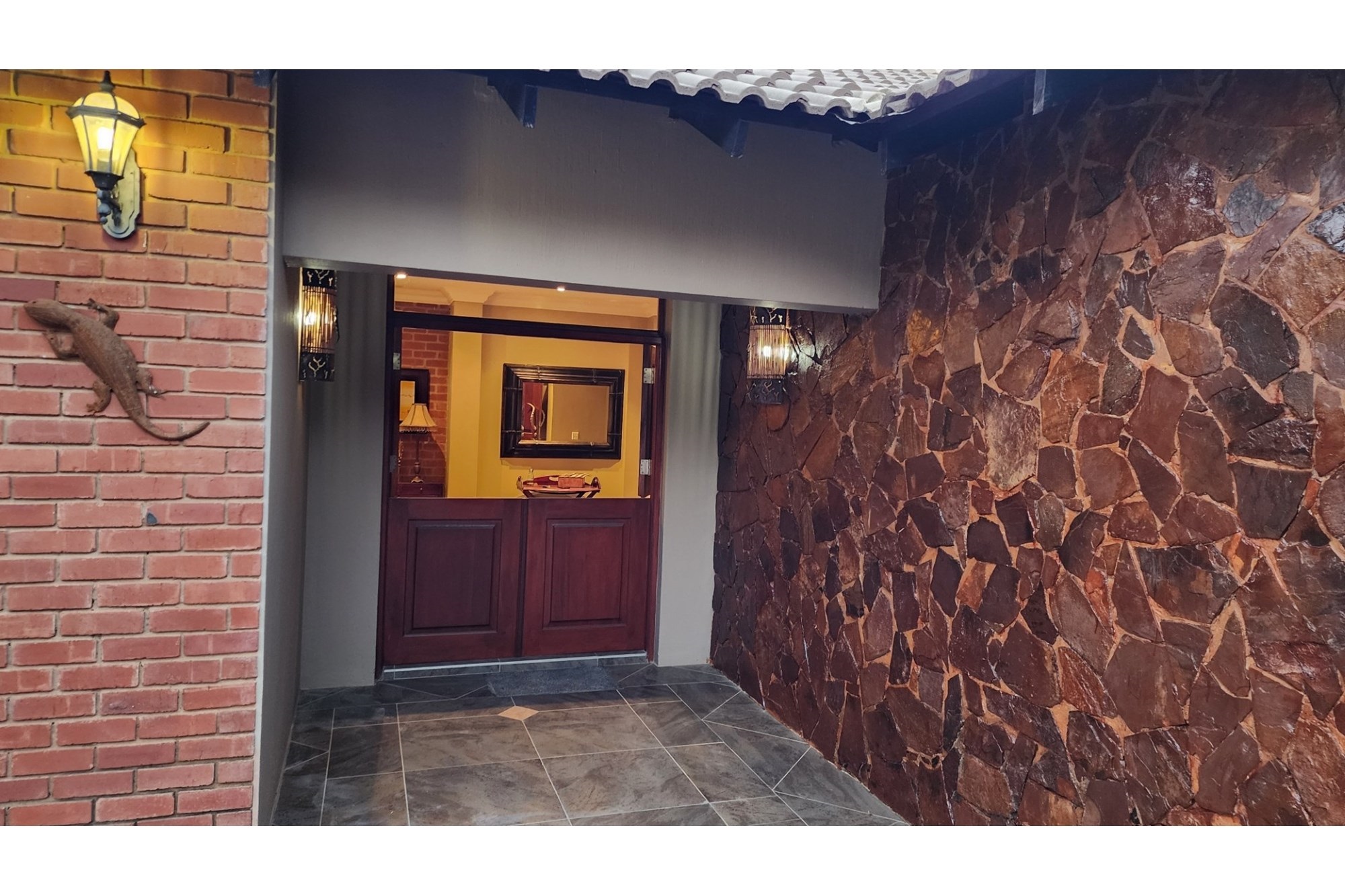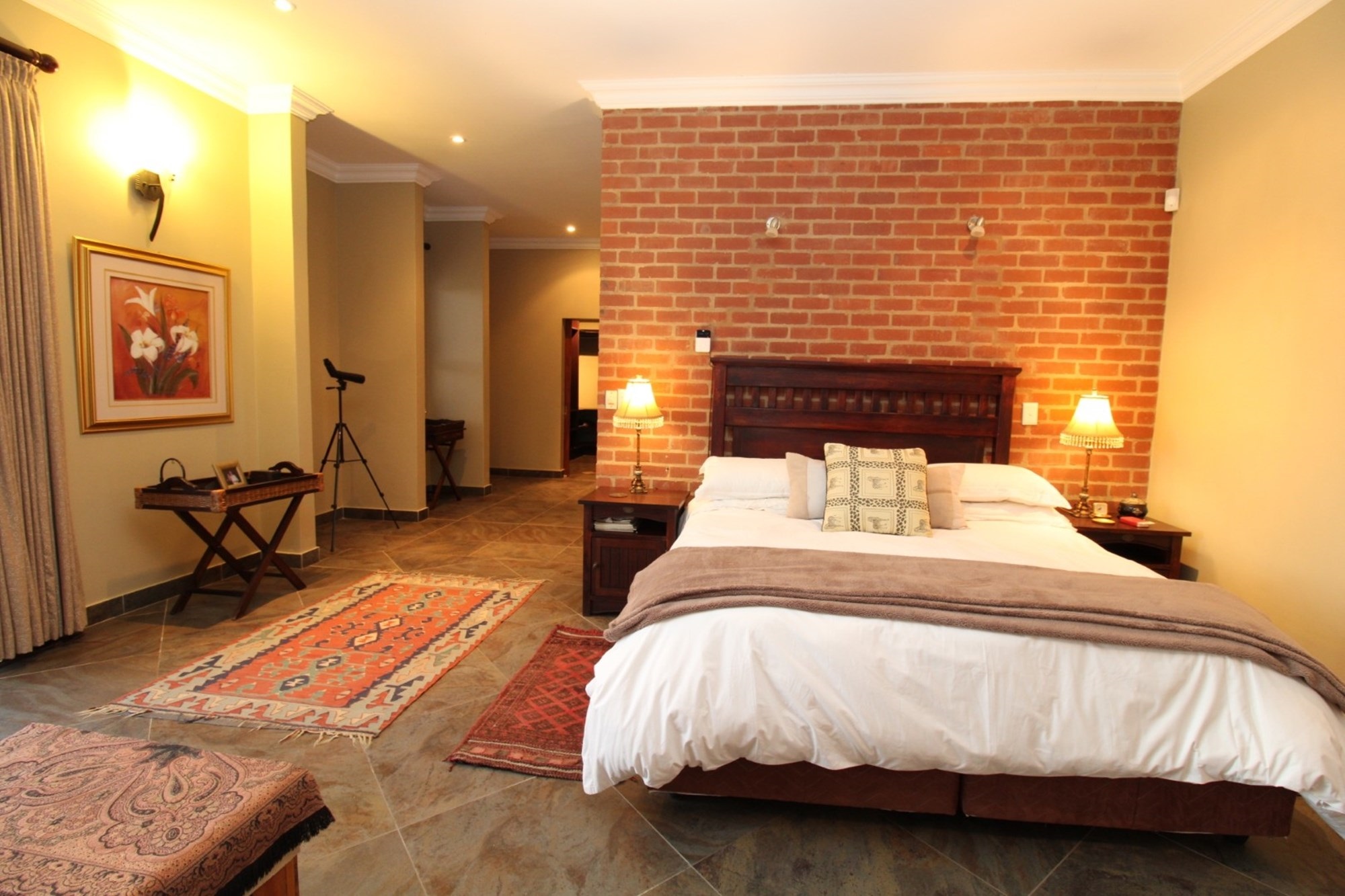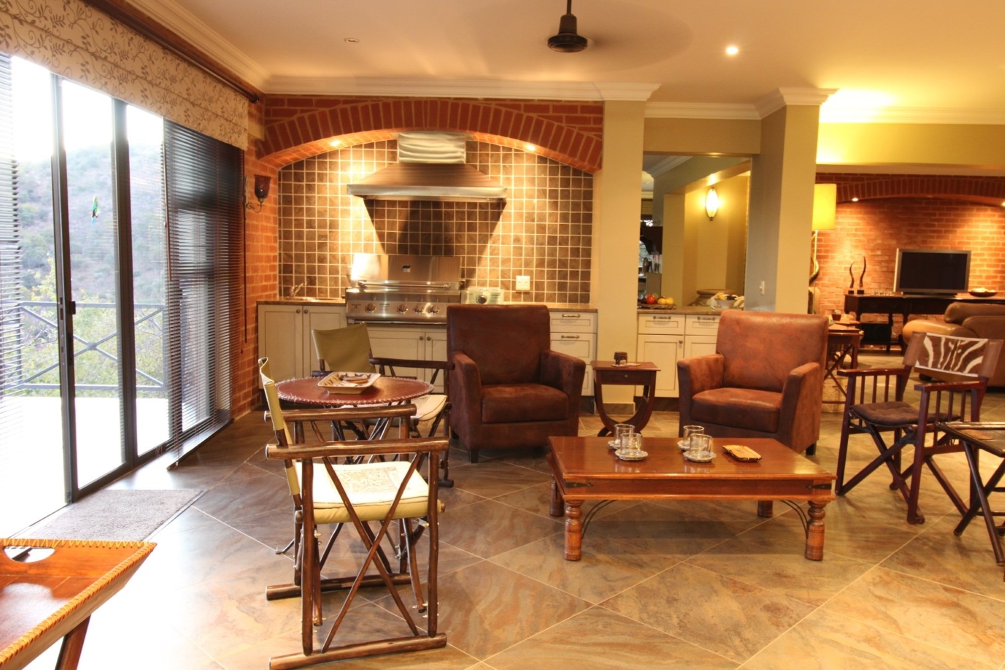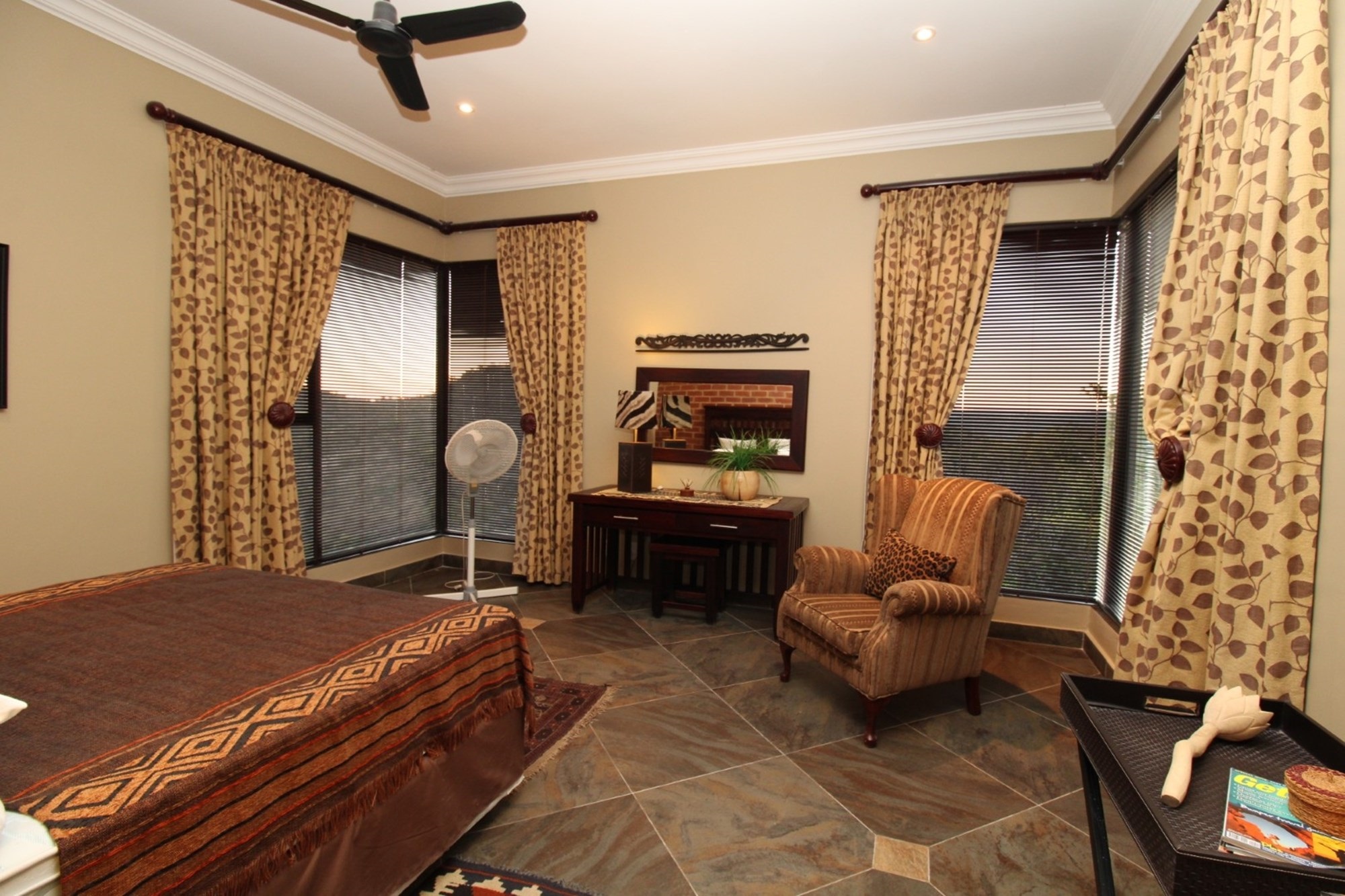 The upper level is at street level and dedicated to rest and reflection, boasting four themed en-suite bedrooms, each thoughtfully crafted with its own character and a separate kitchenette for added convenience. Large windows invite breathtaking views of the surrounding bushveld—waking up here feels like stepping into a nature-inspired dream.