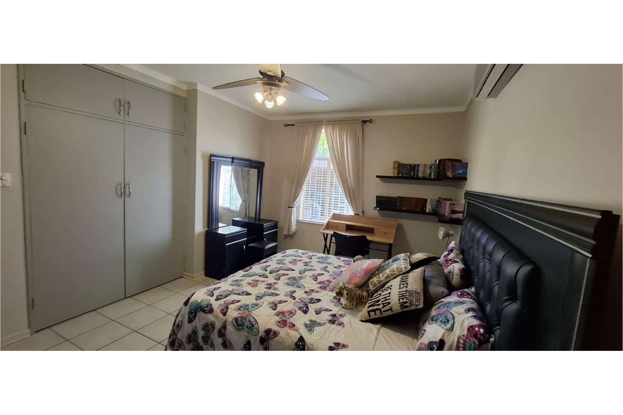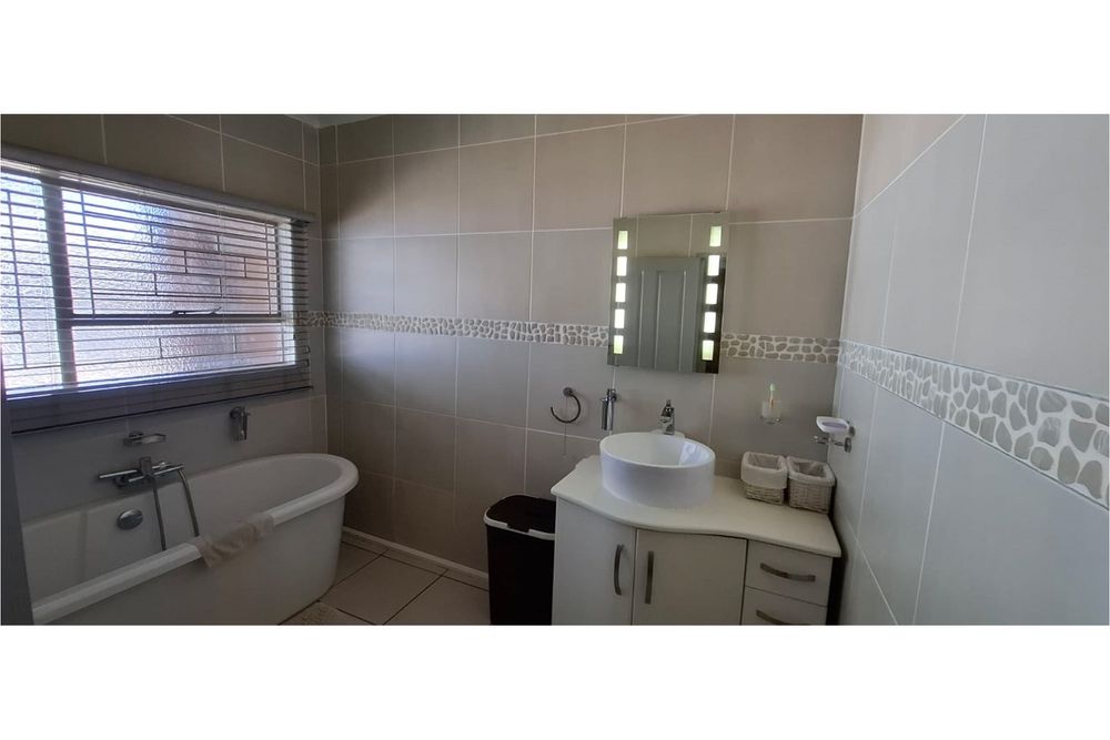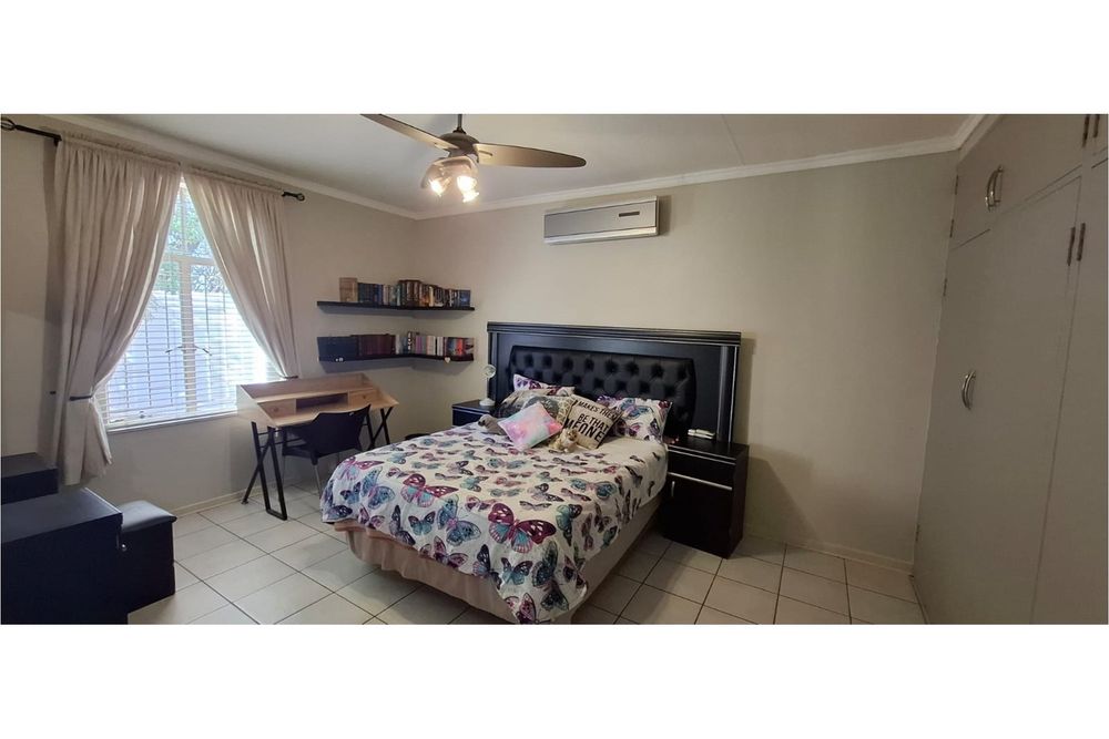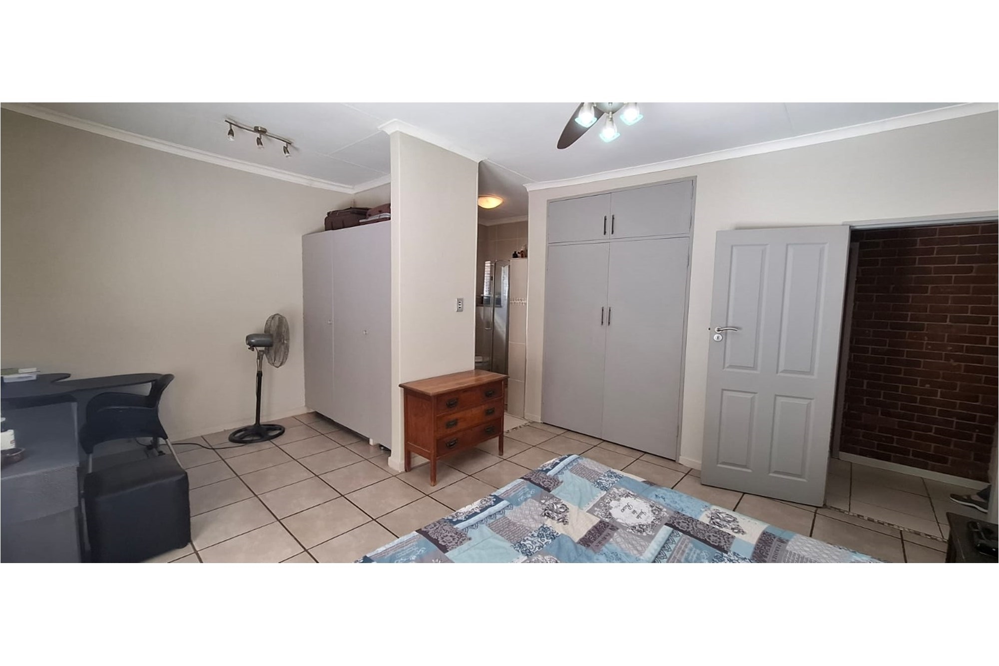 Beyond, an electric double garage door opens to ample parking, while a storeroom, laundry, and a small extra room—ideal for a flat conversion, add flexibility. A water tank and borehole ensure a reliable water supply, while an irrigation system keeps the garden lush year-round. An outside toilet offers extra practicality for garden or maintenance days.