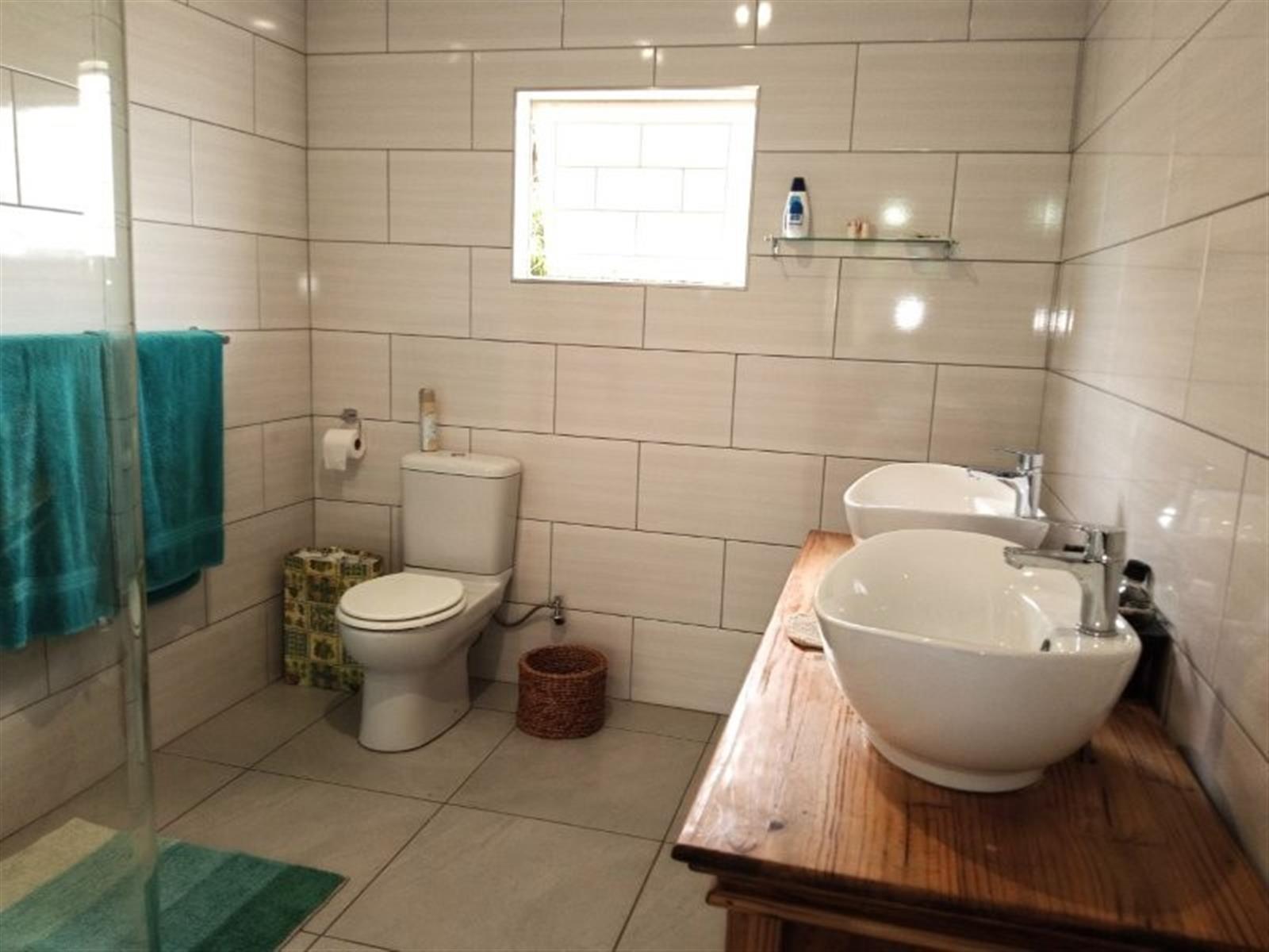 Master bedroom with en-suite bathroom including toilet, basins, and shower.