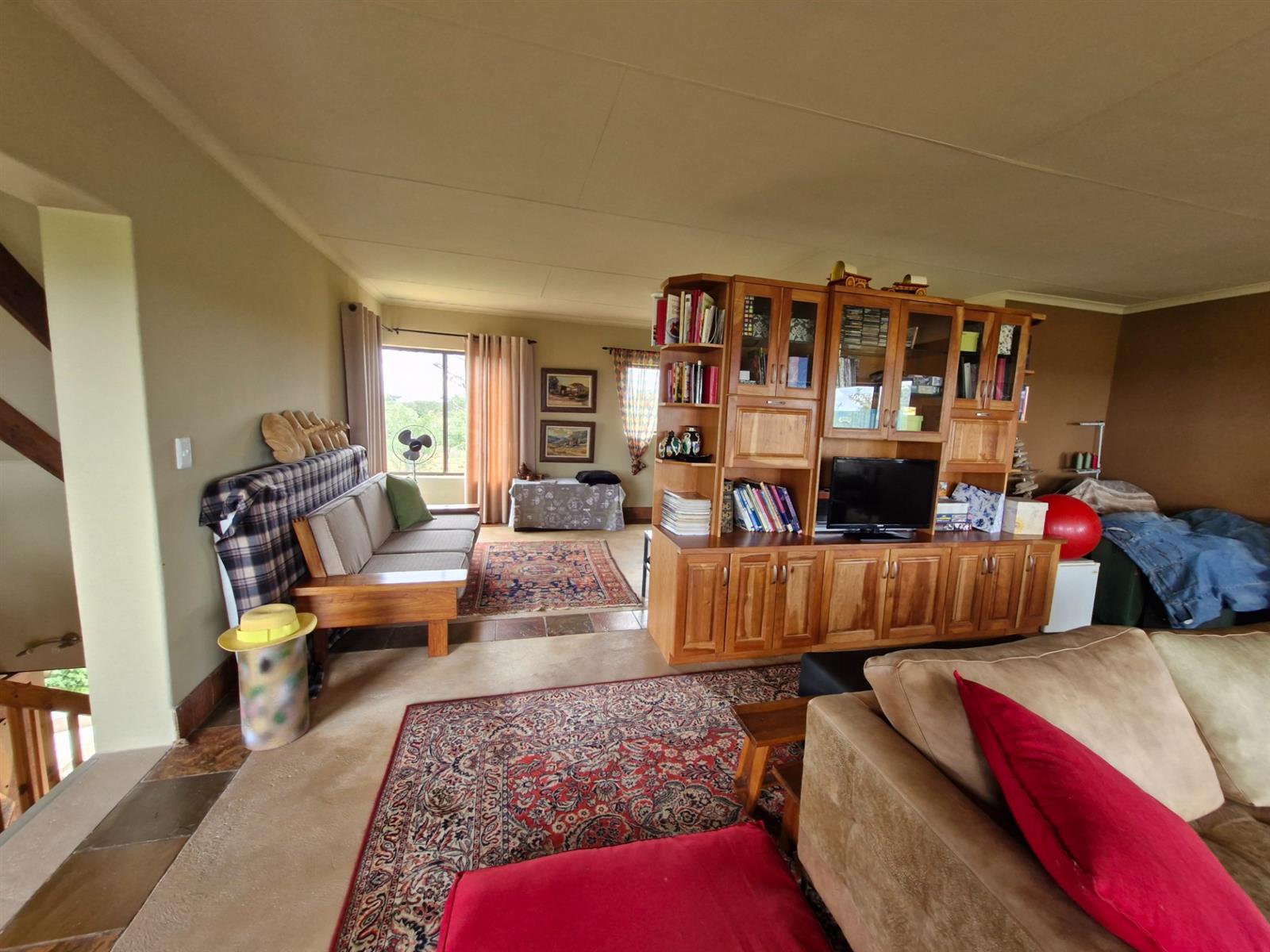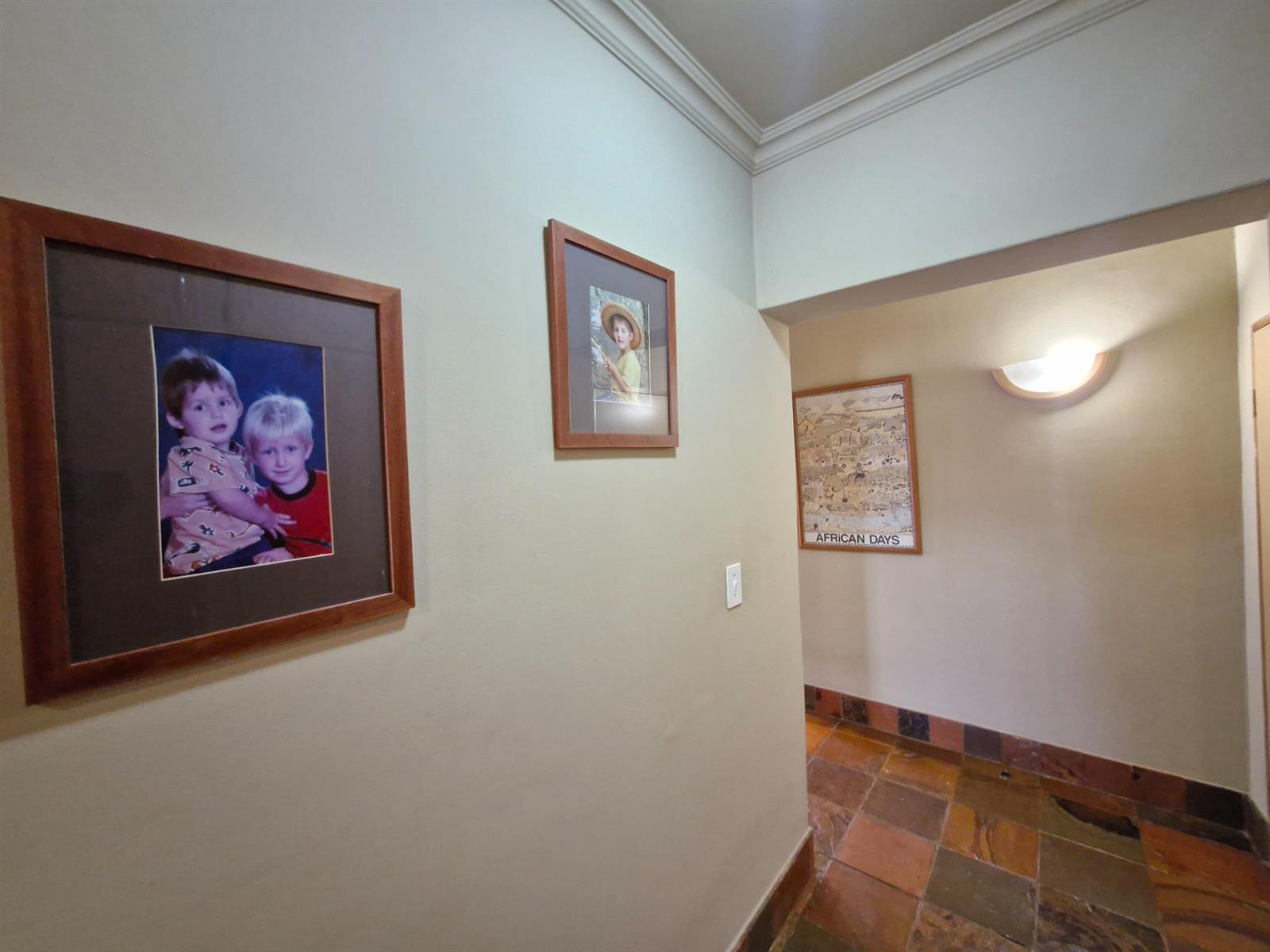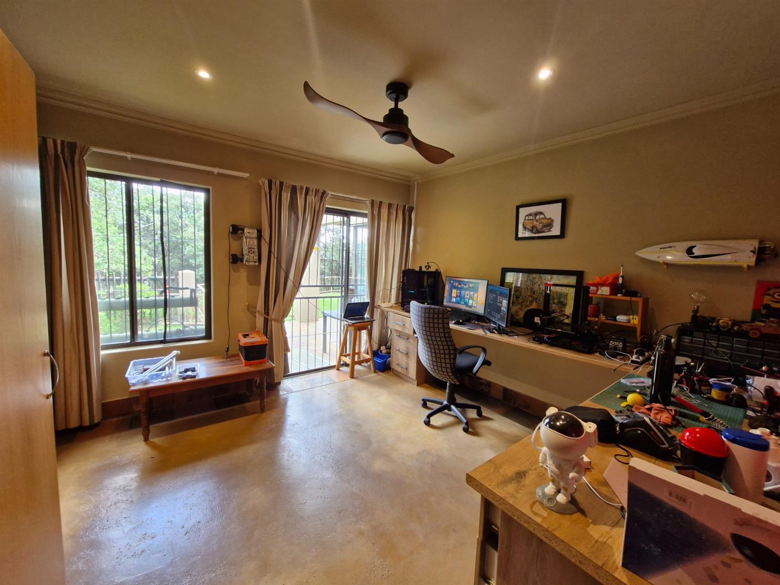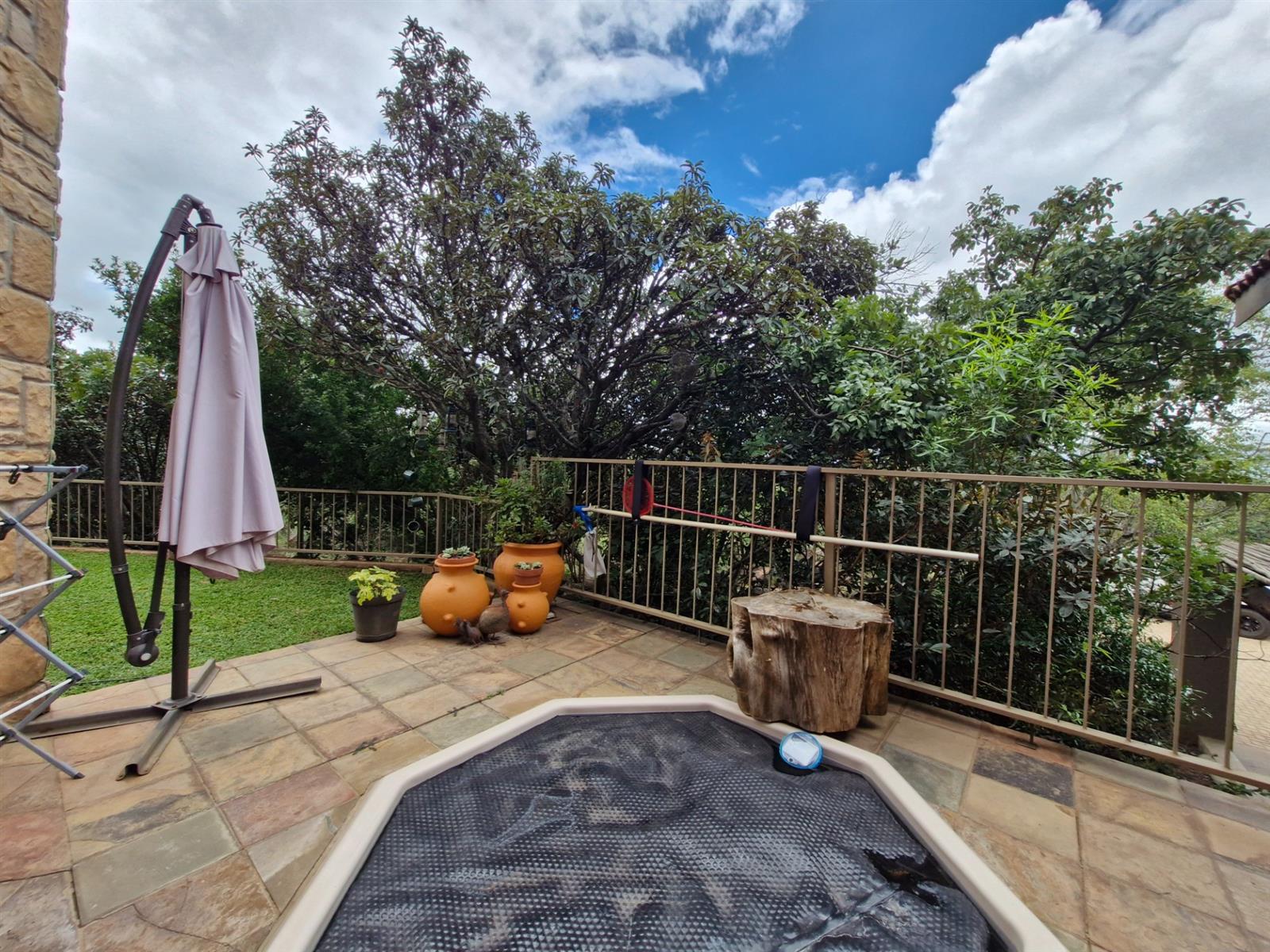 The living area open through glass sliding doors onto a well-designed entertainment area featuring a built-in braai and jacuzzi, ideal for refined indoor-outdoor living and entertaining.