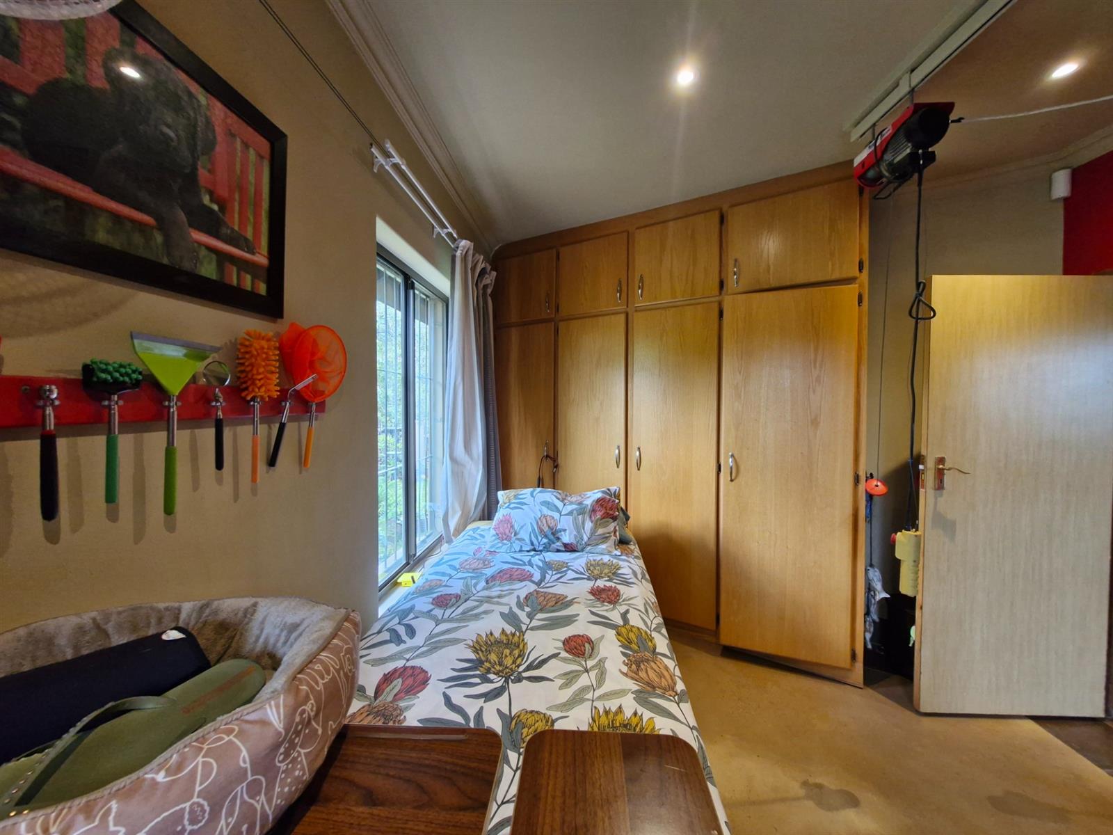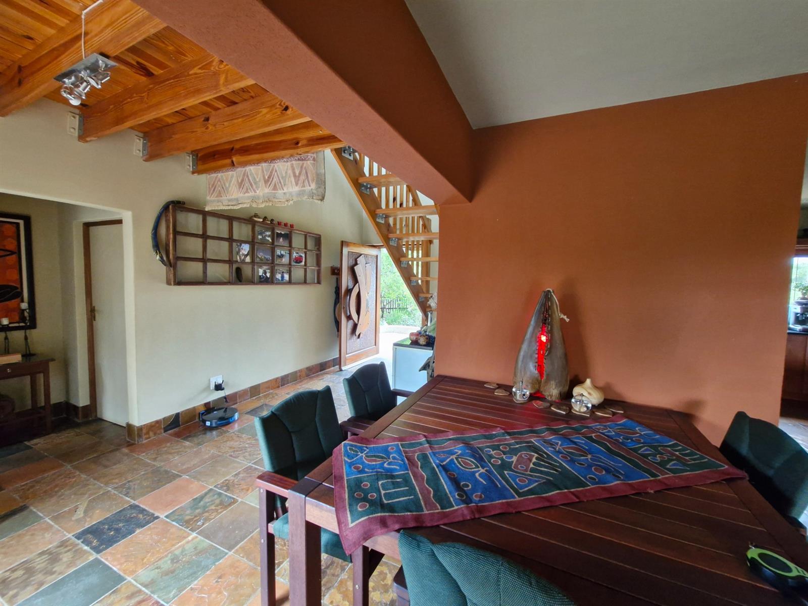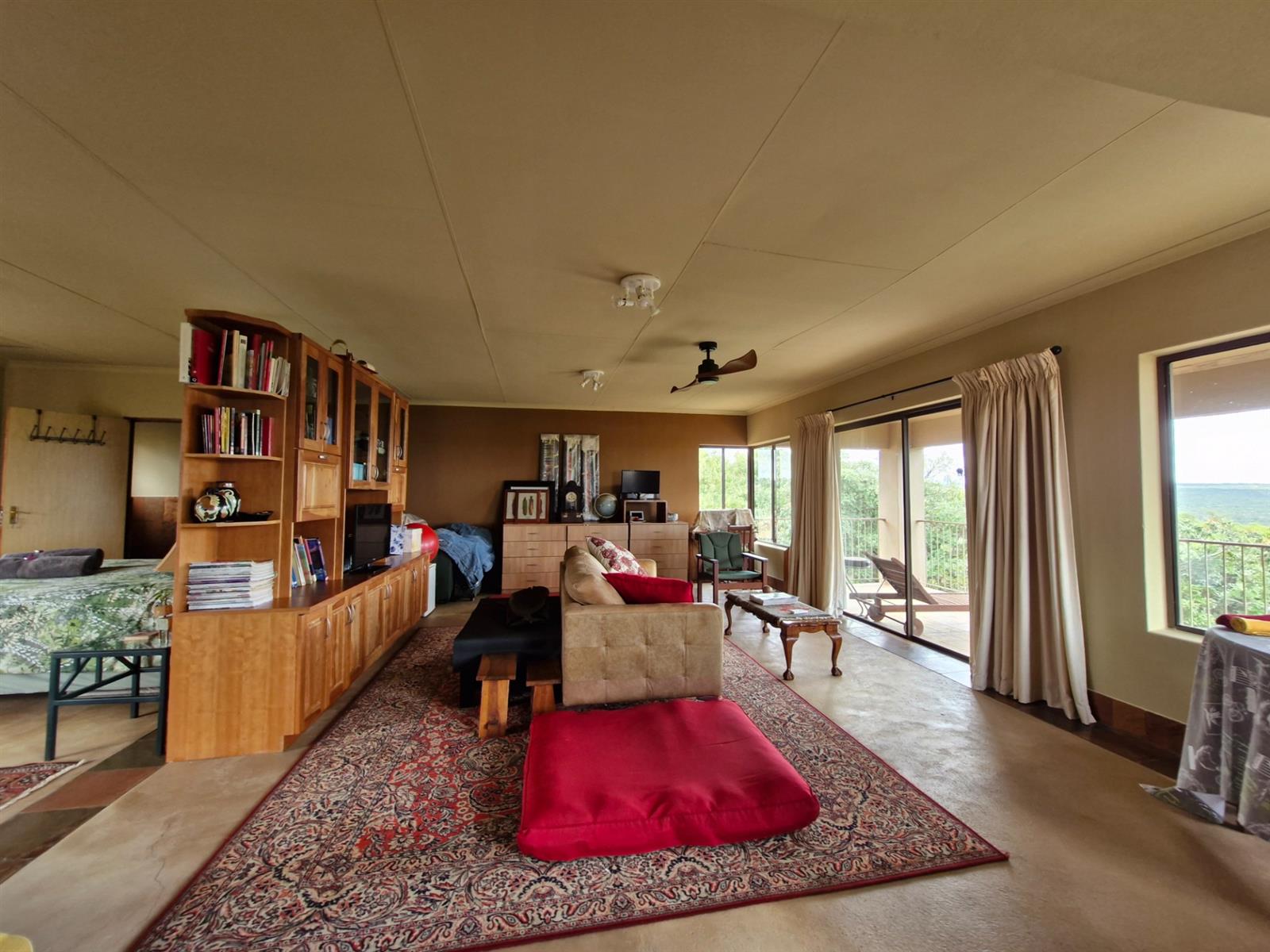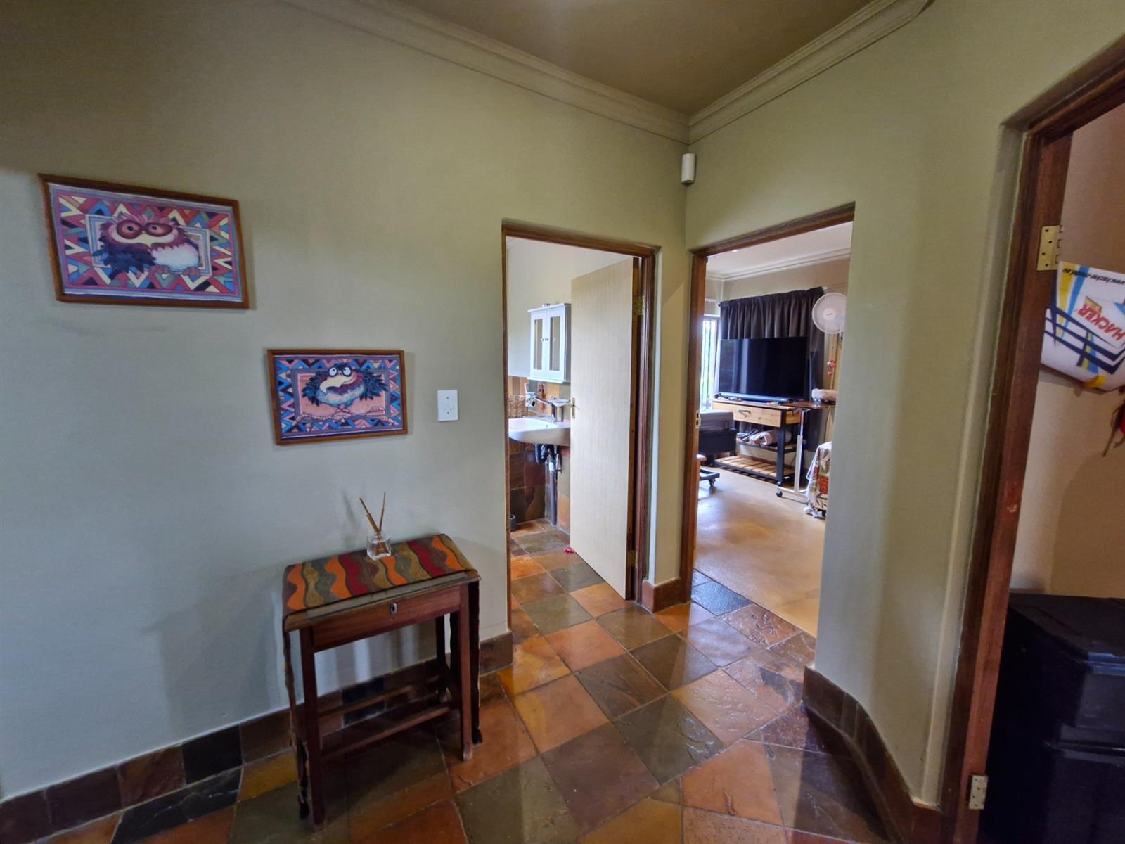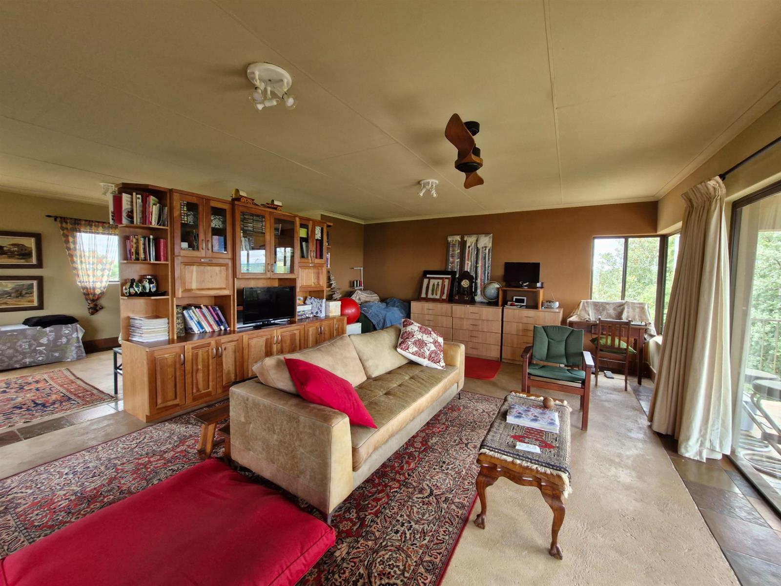 The living area open through glass sliding doors onto a well-designed entertainment area featuring a built-in braai and jacuzzi, ideal for refined indoor-outdoor living and entertaining.