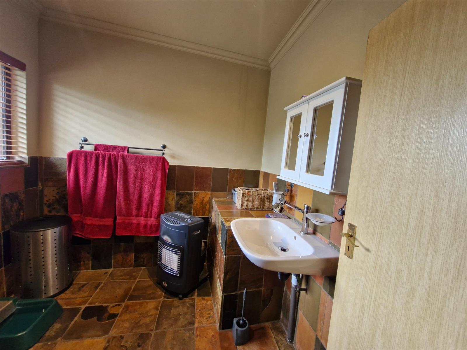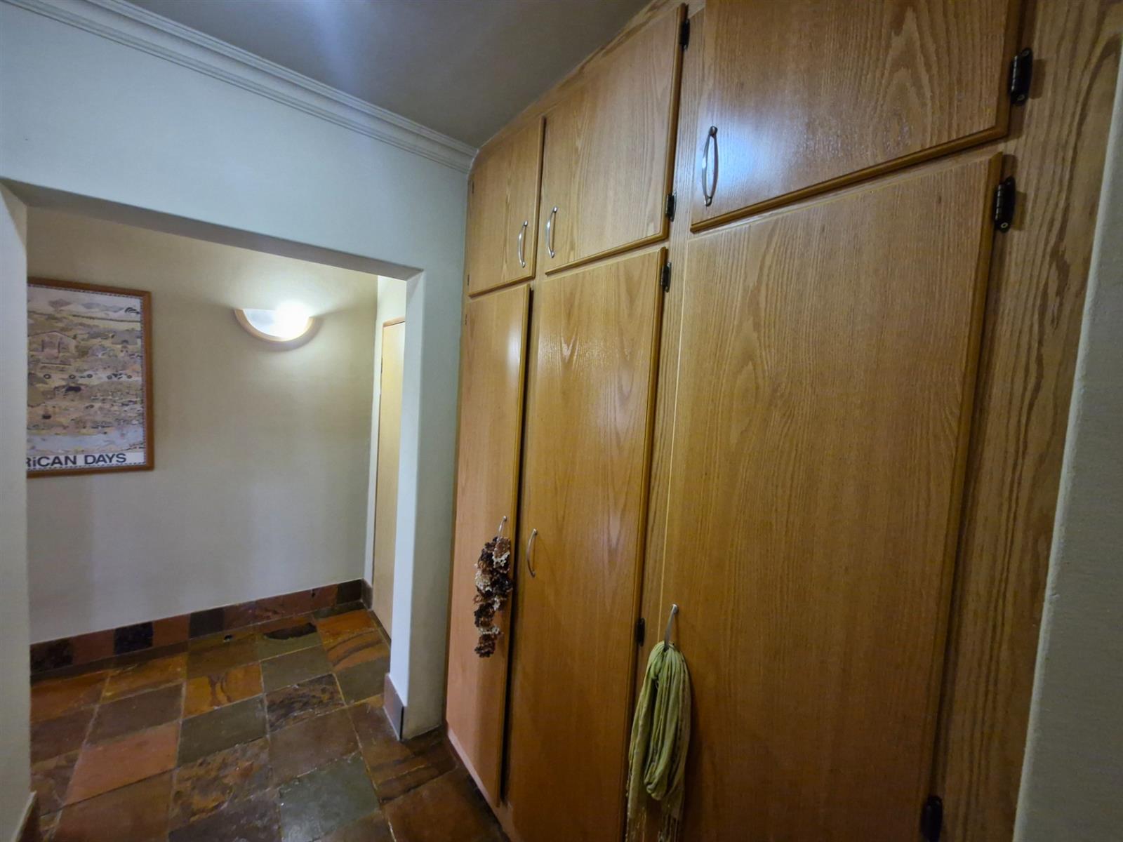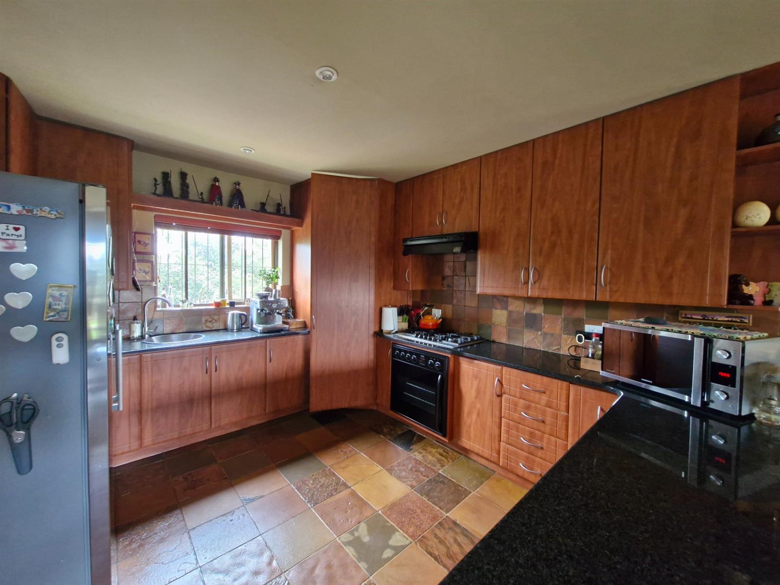 The open-plan kitchen is well appointed with generous cupboard space, a gas stove, pantry, and a separate scullery fitted with connections for both a washing machine and dishwasher.