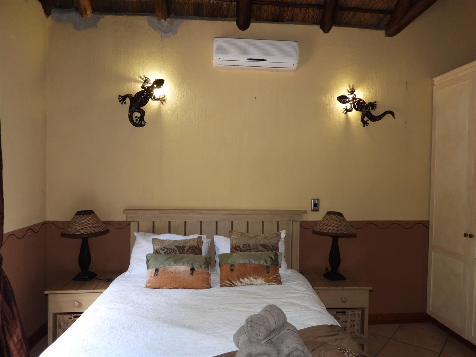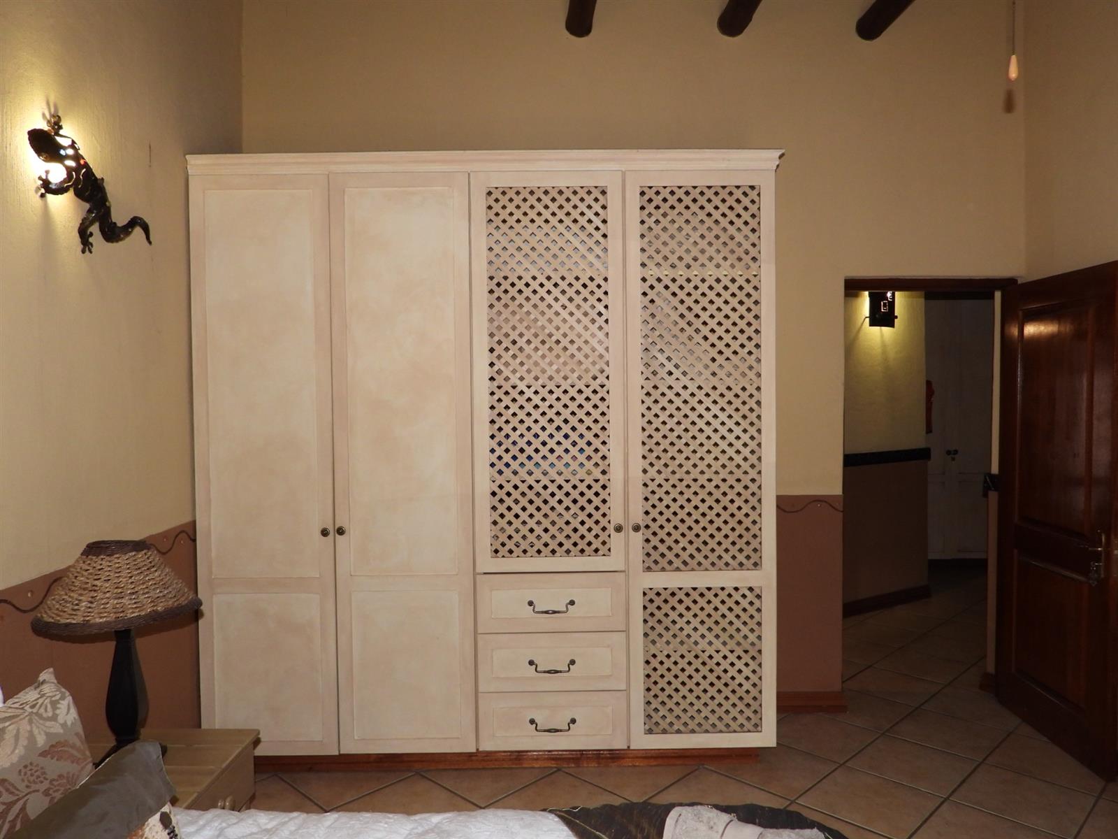 Practical comforts blend seamlessly with bushveld beauty. Gas geysers ensure hot water even during power interruptions, and a generator provides reliable backup power. An alarm system offers peace of mind within the already secure estate.
