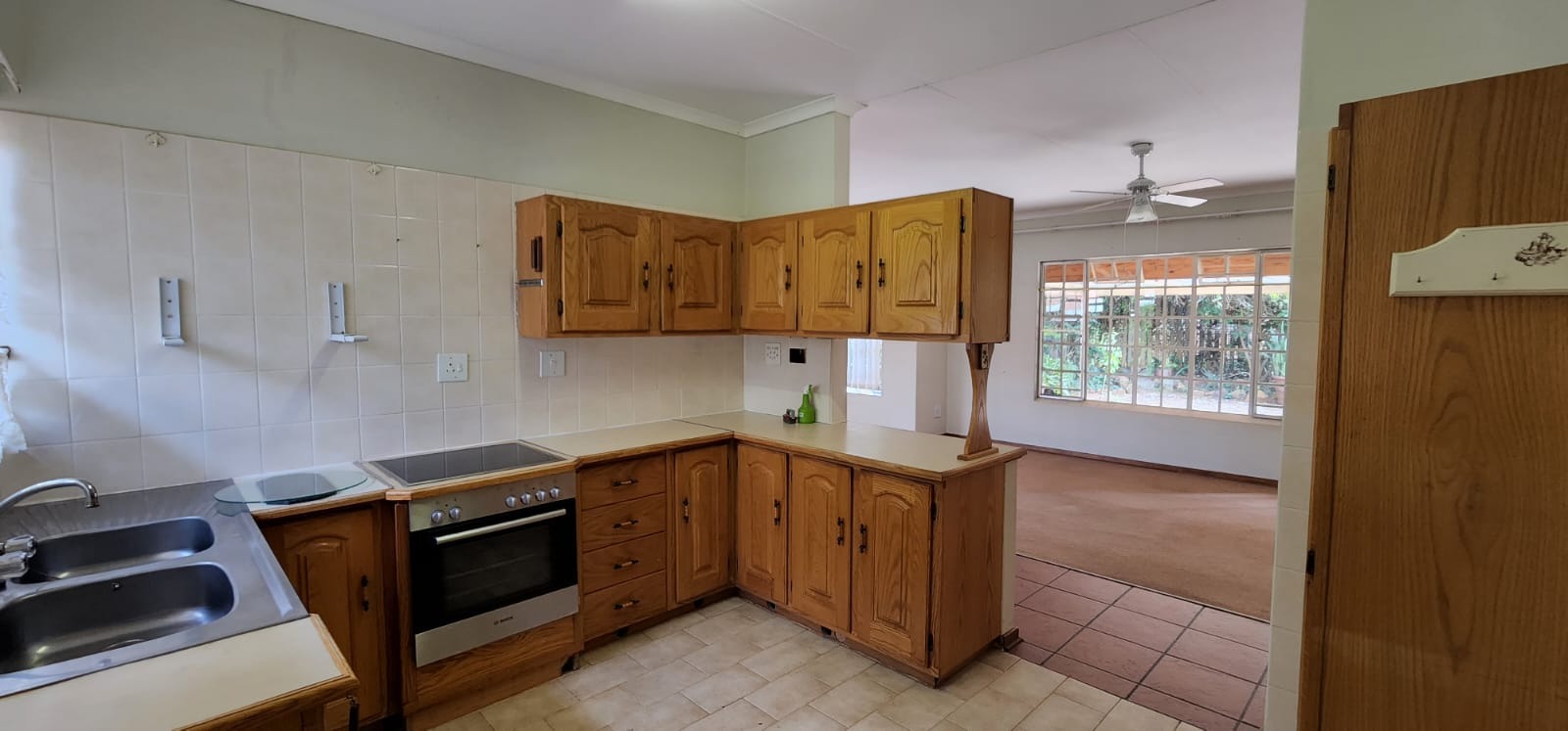 An open plan kitchen, spacious lounge and dining area.