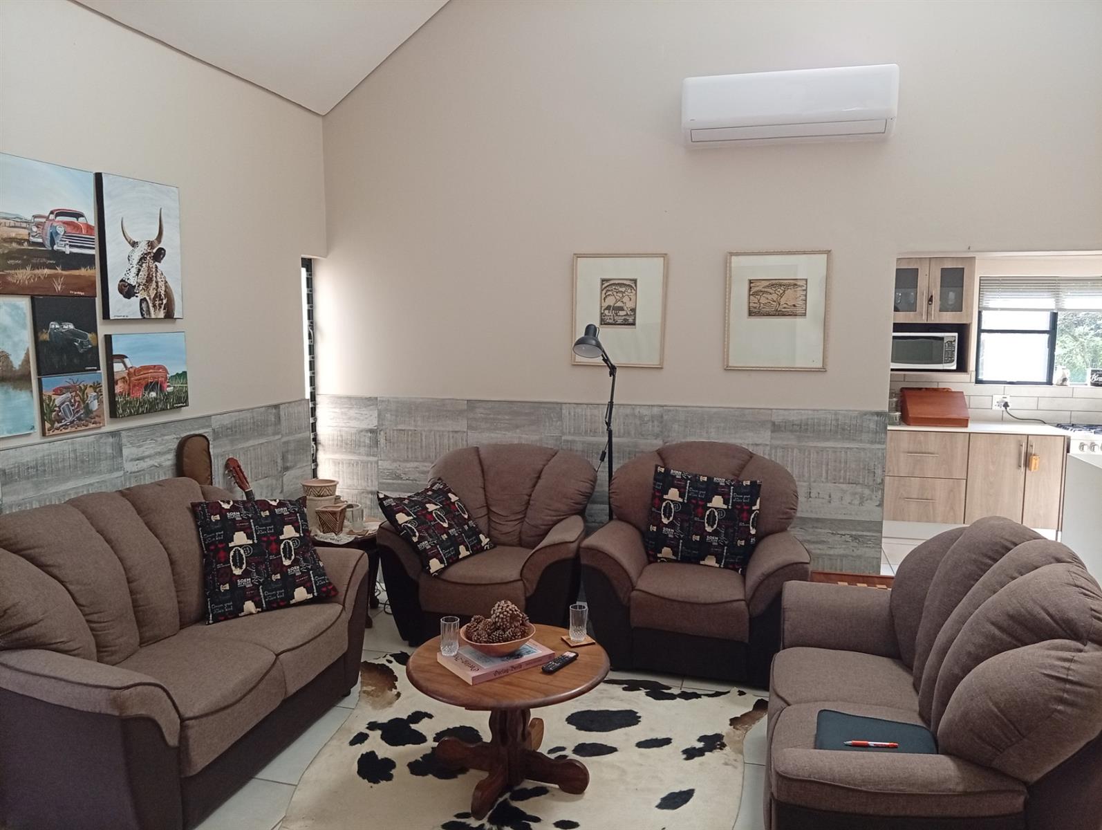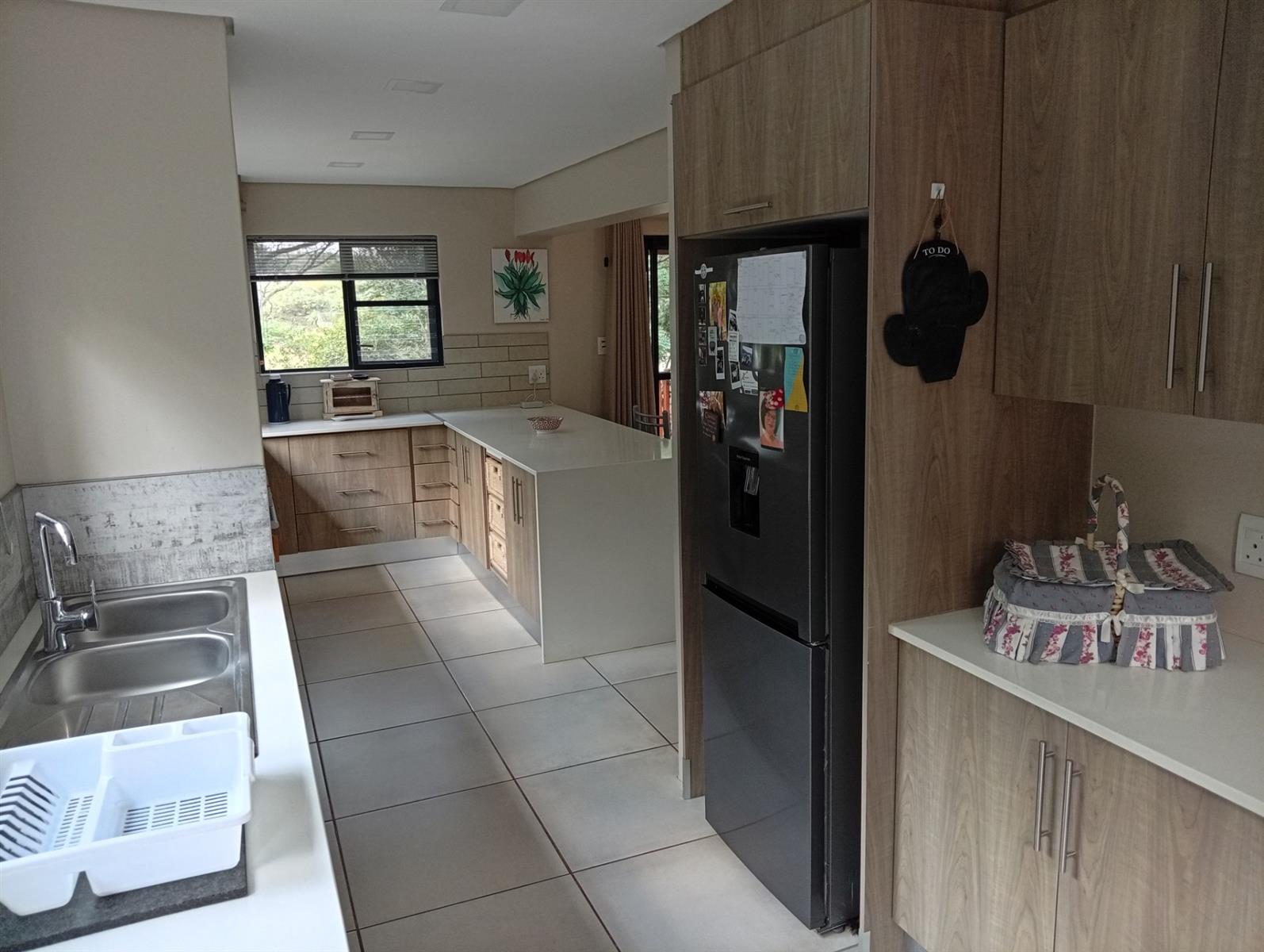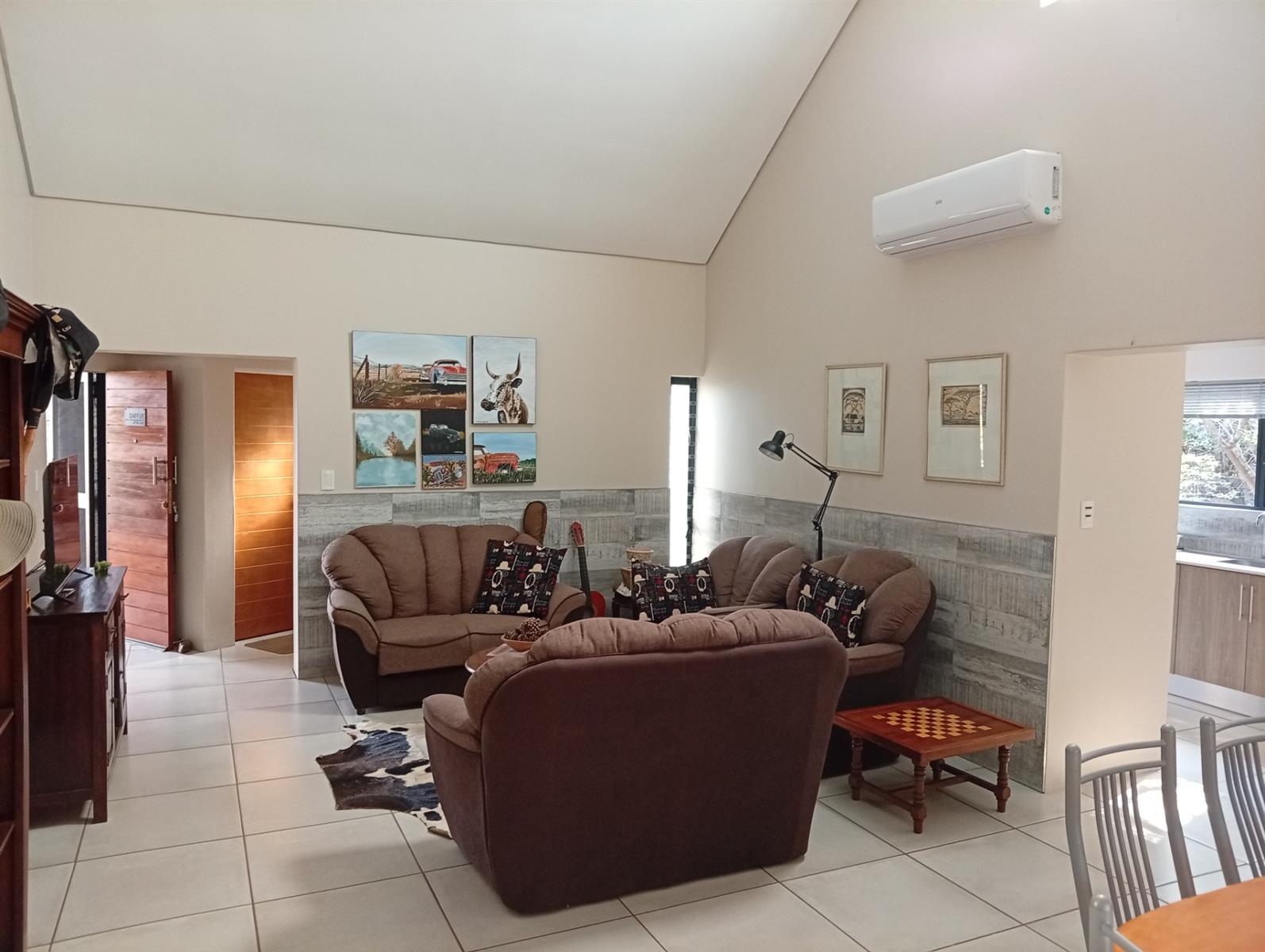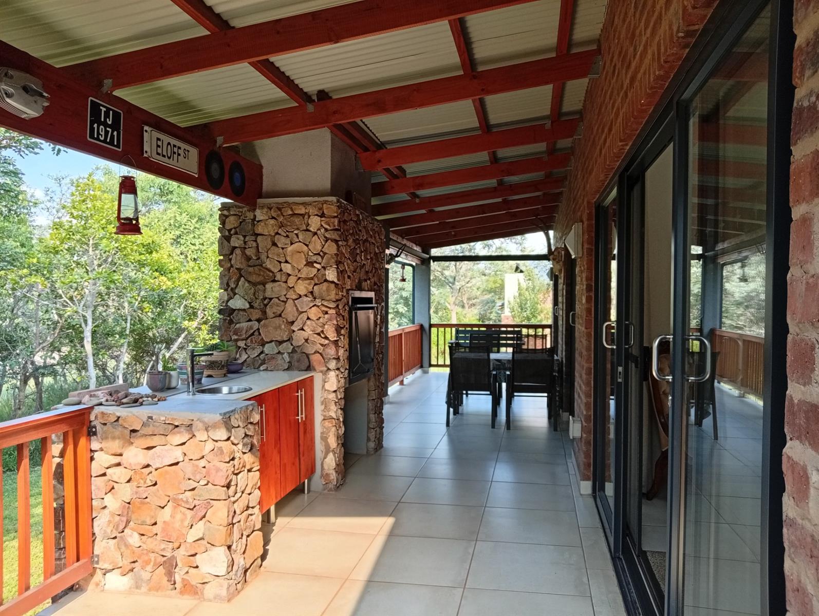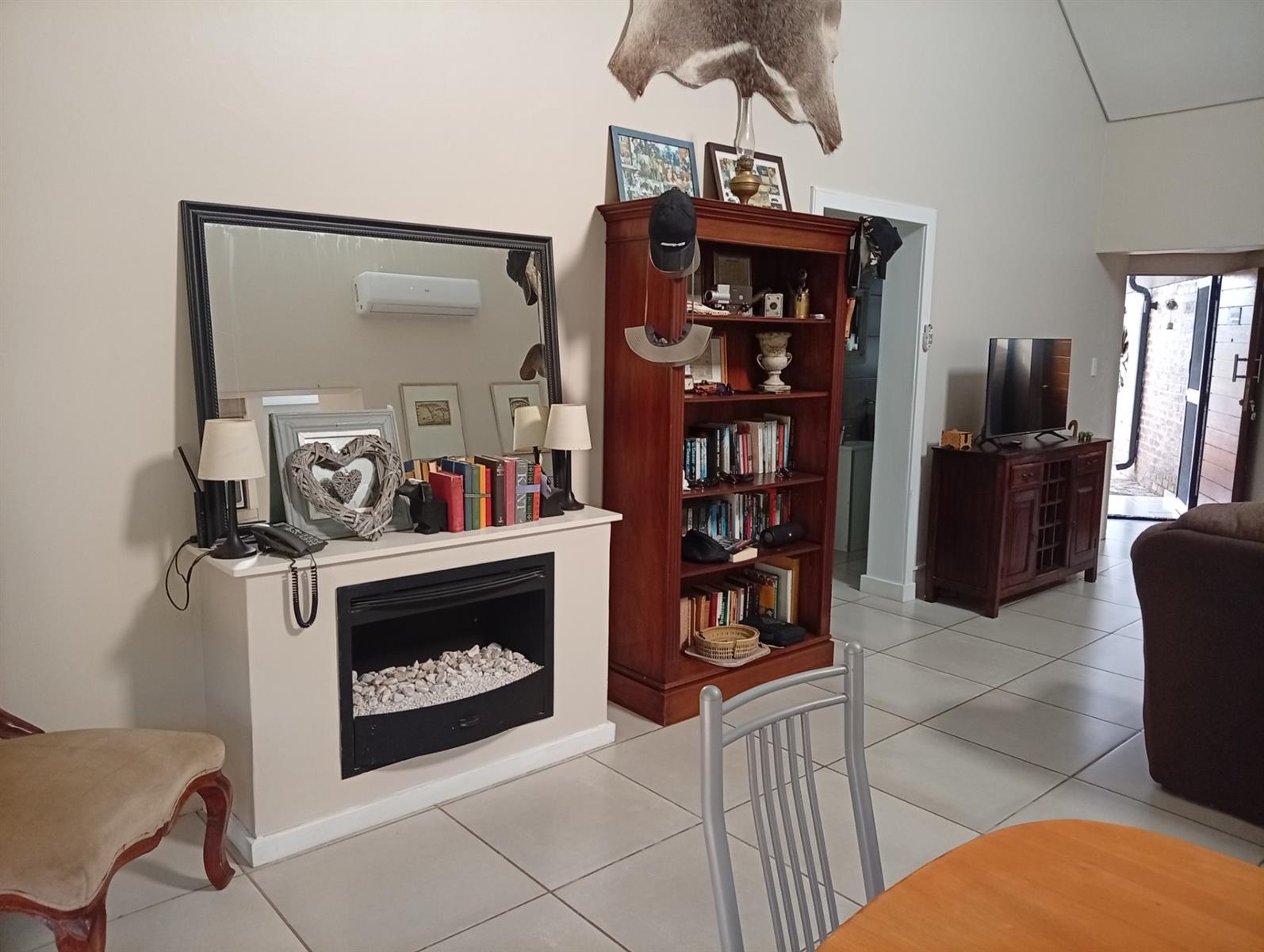 The well-designed kitchen is both attractive and functional, complemented by a separate scullery. In addition, the home offers a range of valuable extras, including an additional electric geyser, roll-up sun blinds on the veranda, two 1000-litre JoJo Slimline tanks with an electric pump harvesting water, an automated sprinkler system, fly screens on most doors and windows, two air conditioners, and a gas fireplace.