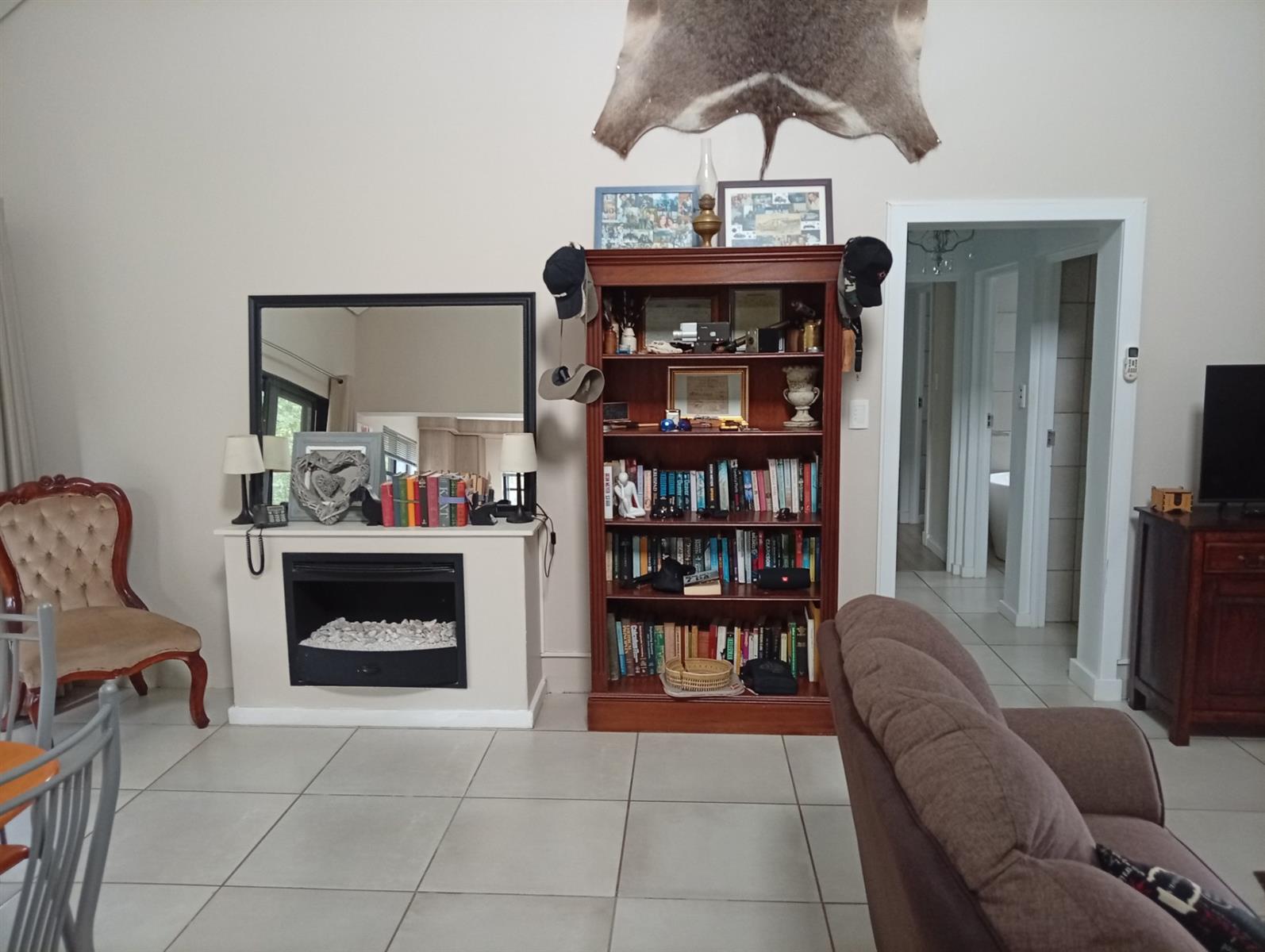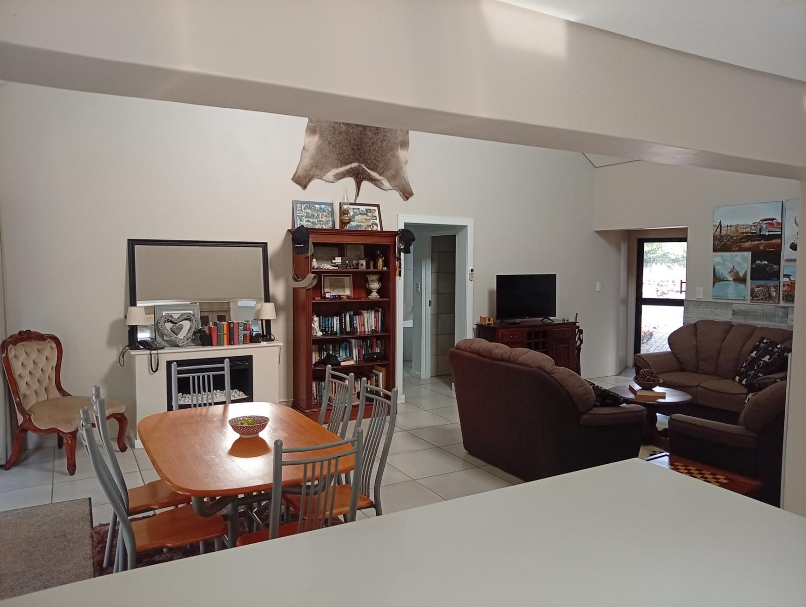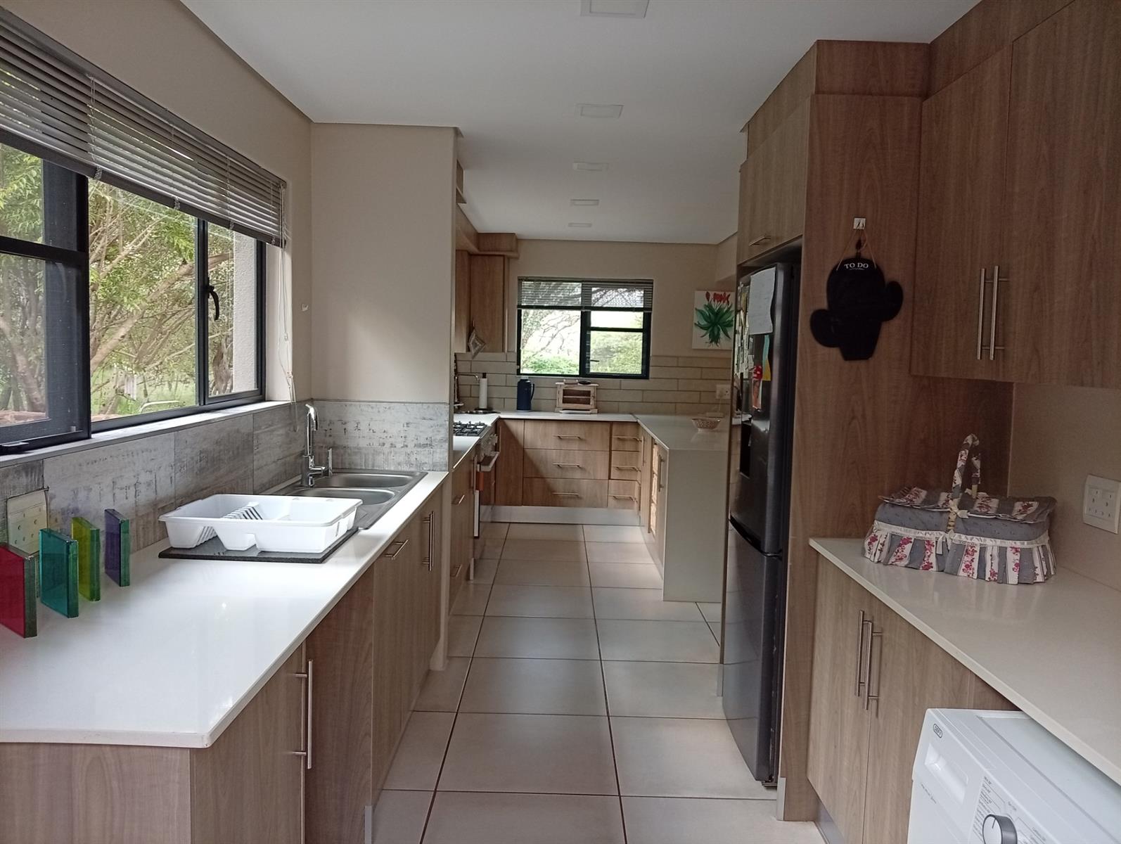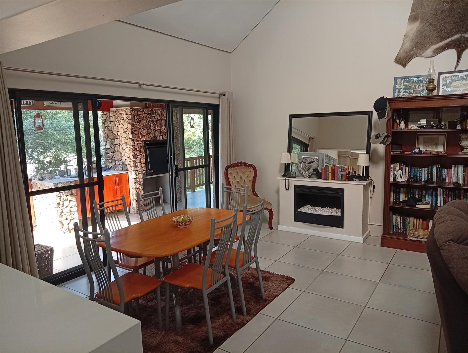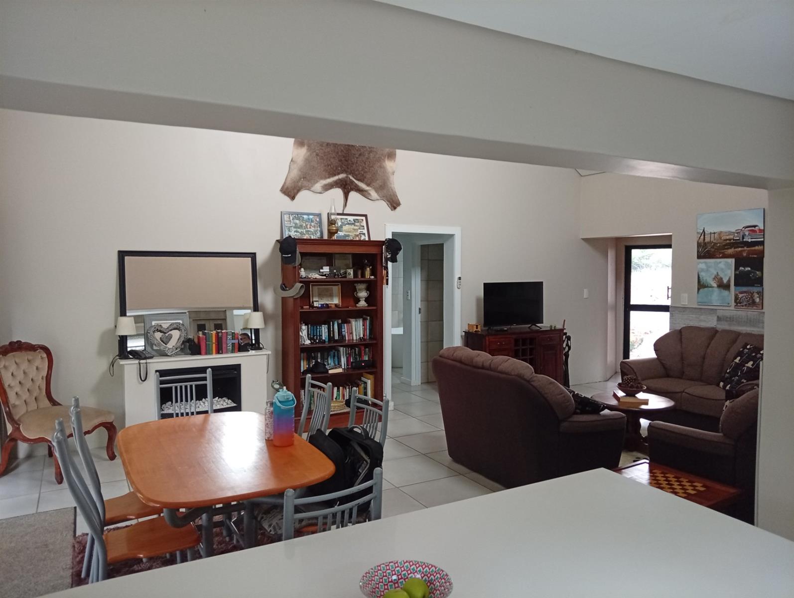 The well-designed kitchen is both attractive and functional, complemented by a separate scullery. In addition, the home offers a range of valuable extras, including an additional electric geyser, roll-up sun blinds on the veranda, two 1000-litre JoJo Slimline tanks with an electric pump harvesting water, an automated sprinkler system, fly screens on most doors and windows, two air conditioners, and a gas fireplace.