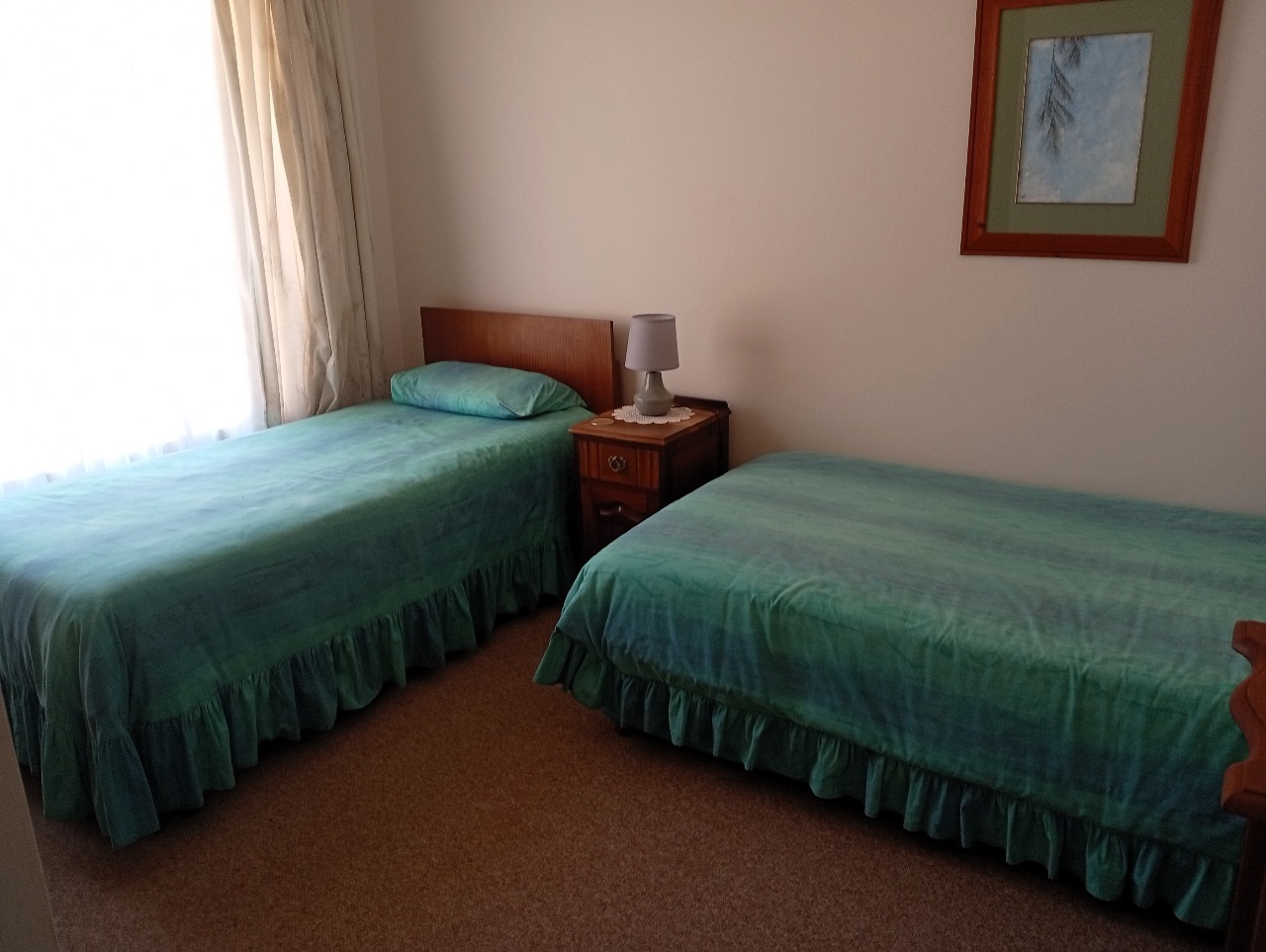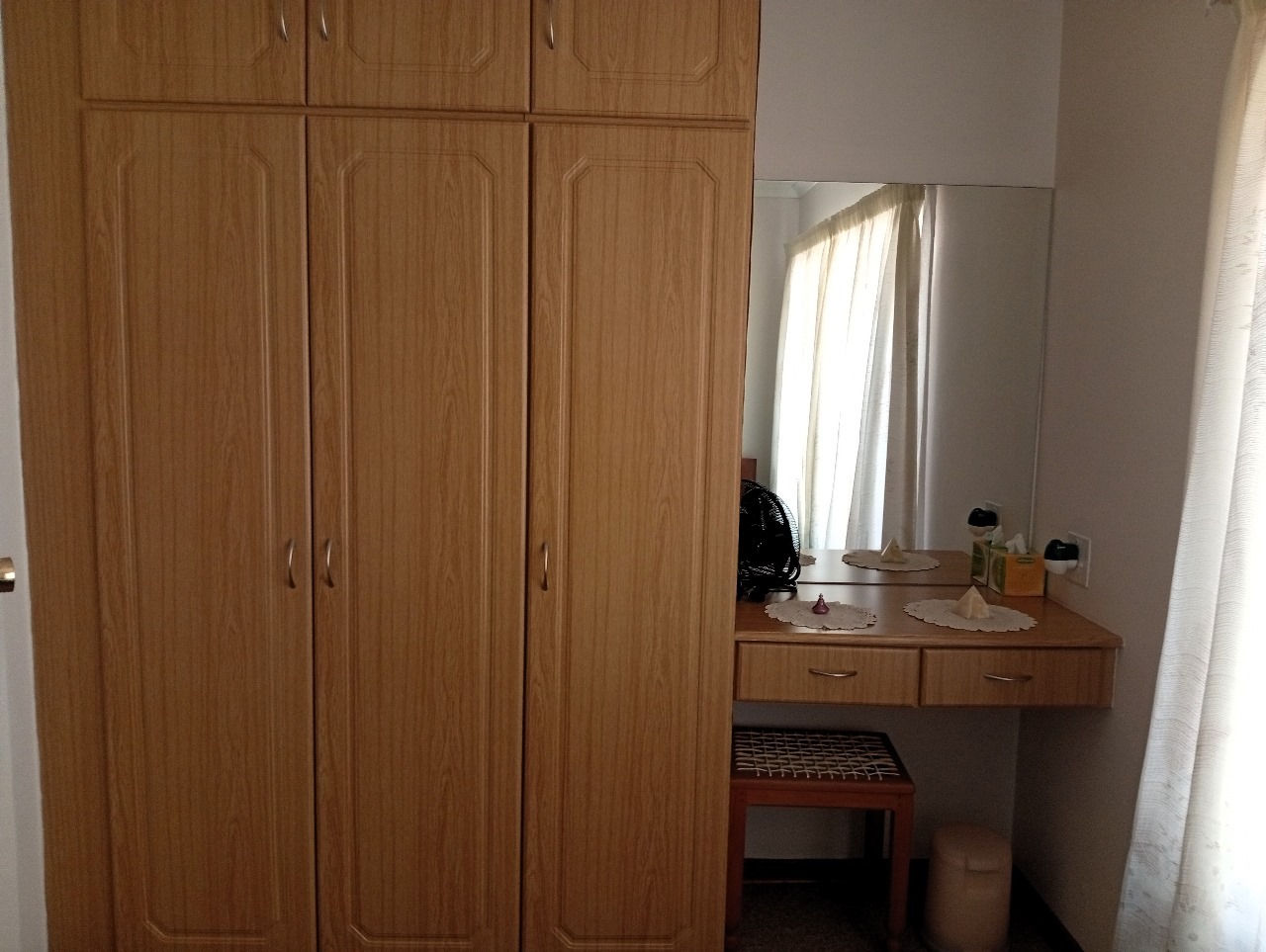 3 Spacious Bedrooms with built-in cupboards and carpets. The main bedroom is privately