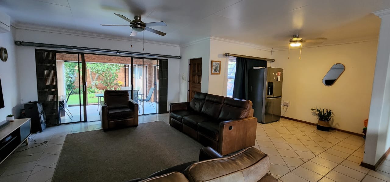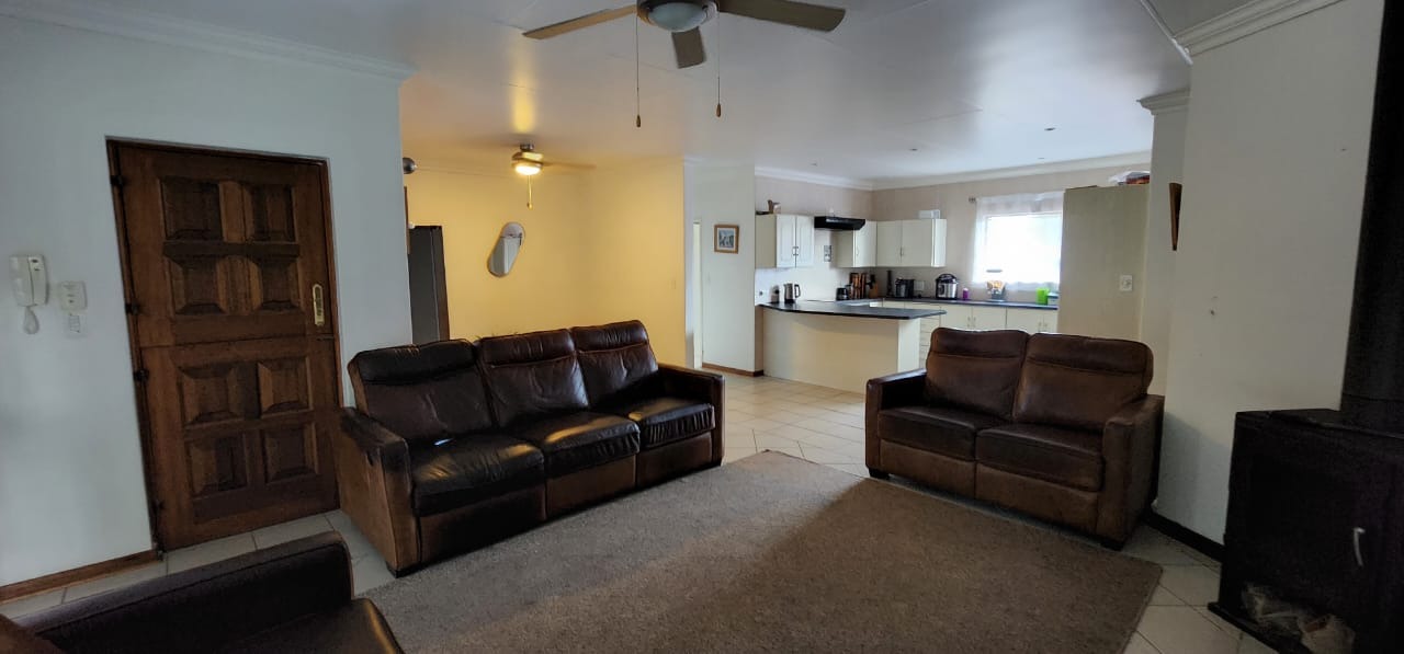 Large windows fill the home with natural light, creating a warm and inviting ambiance. Highlights include a well-equipped kitchen with a scullery, three comfortable bedrooms with built-in cupboards, and two bathrooms.