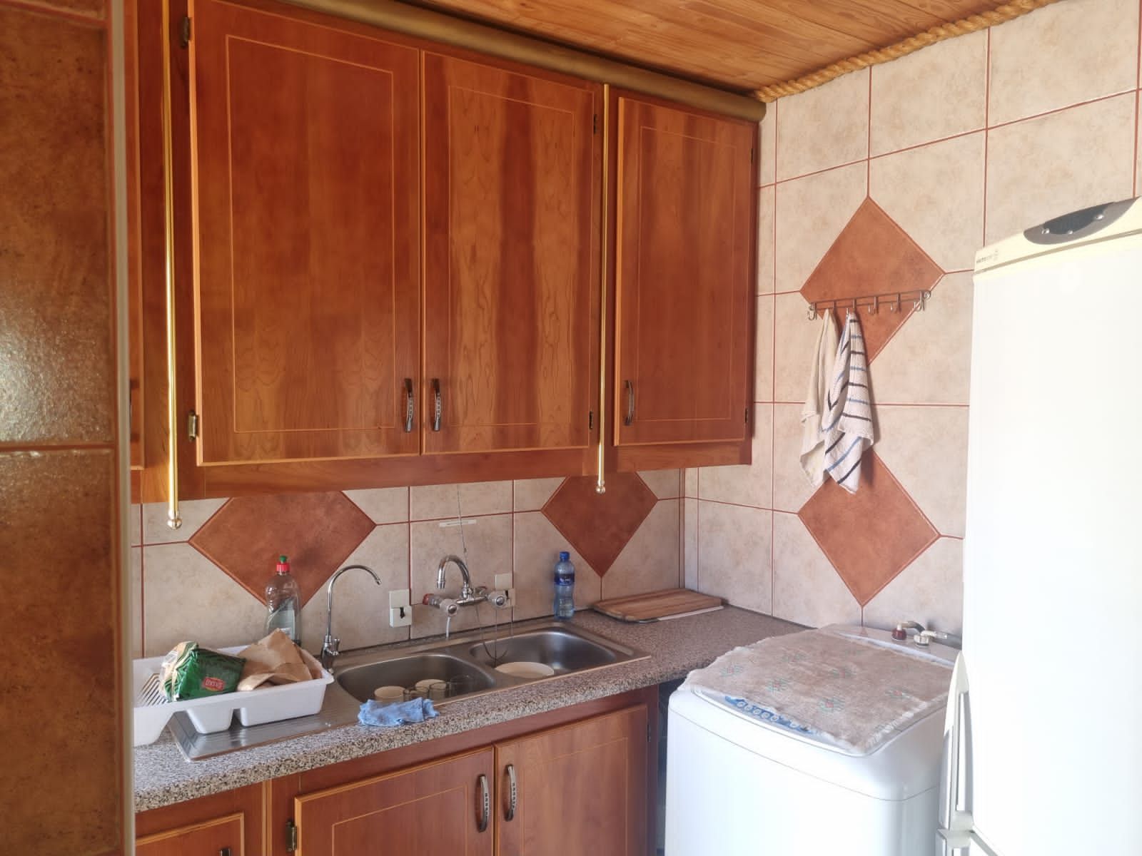 A separate scullery with ample space for a washing machine/dishwasher, fridge, and freezer