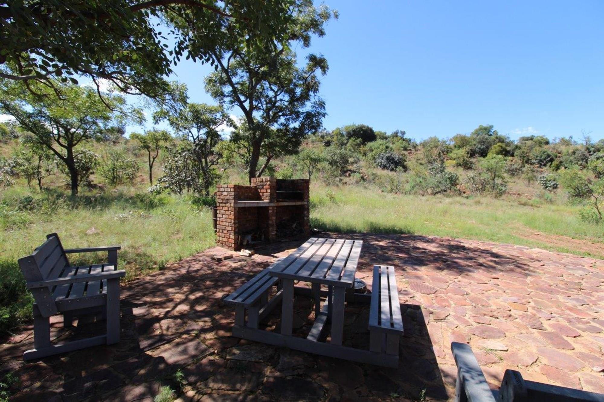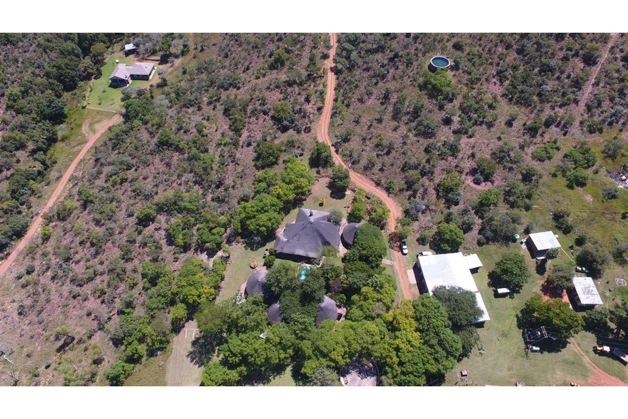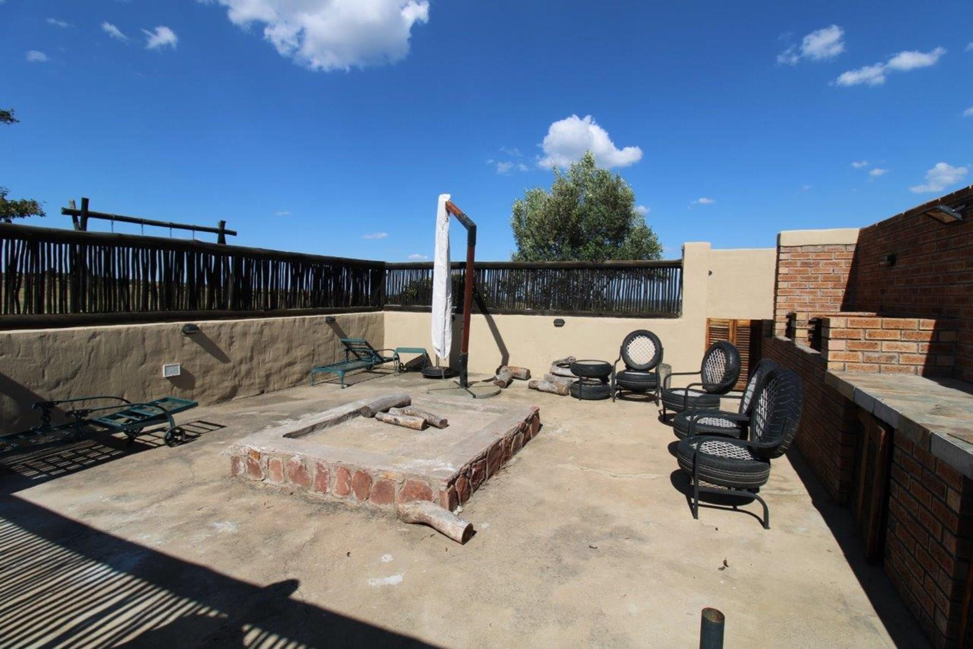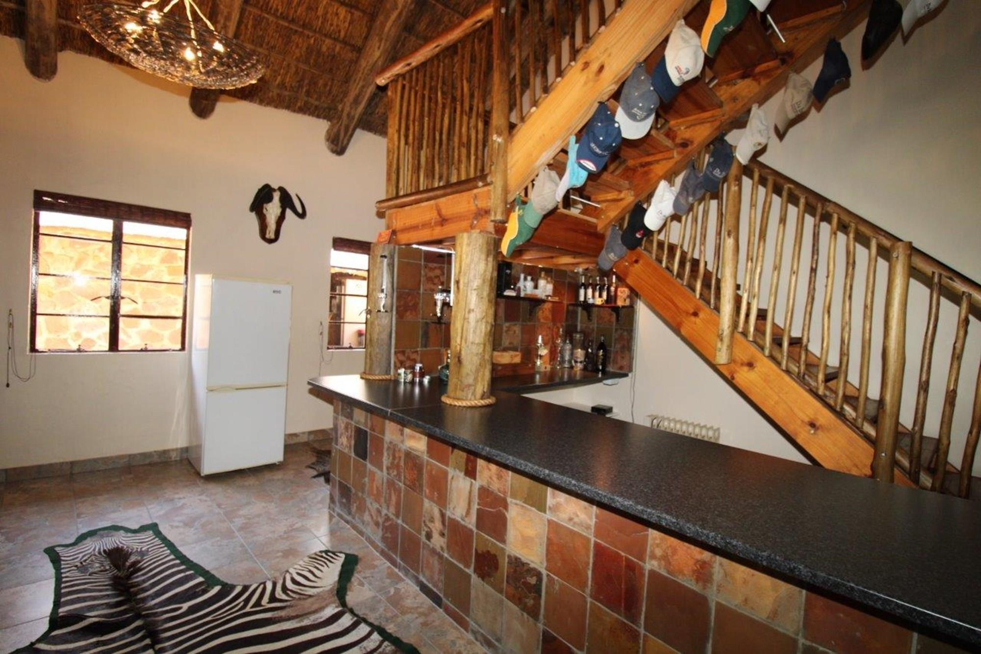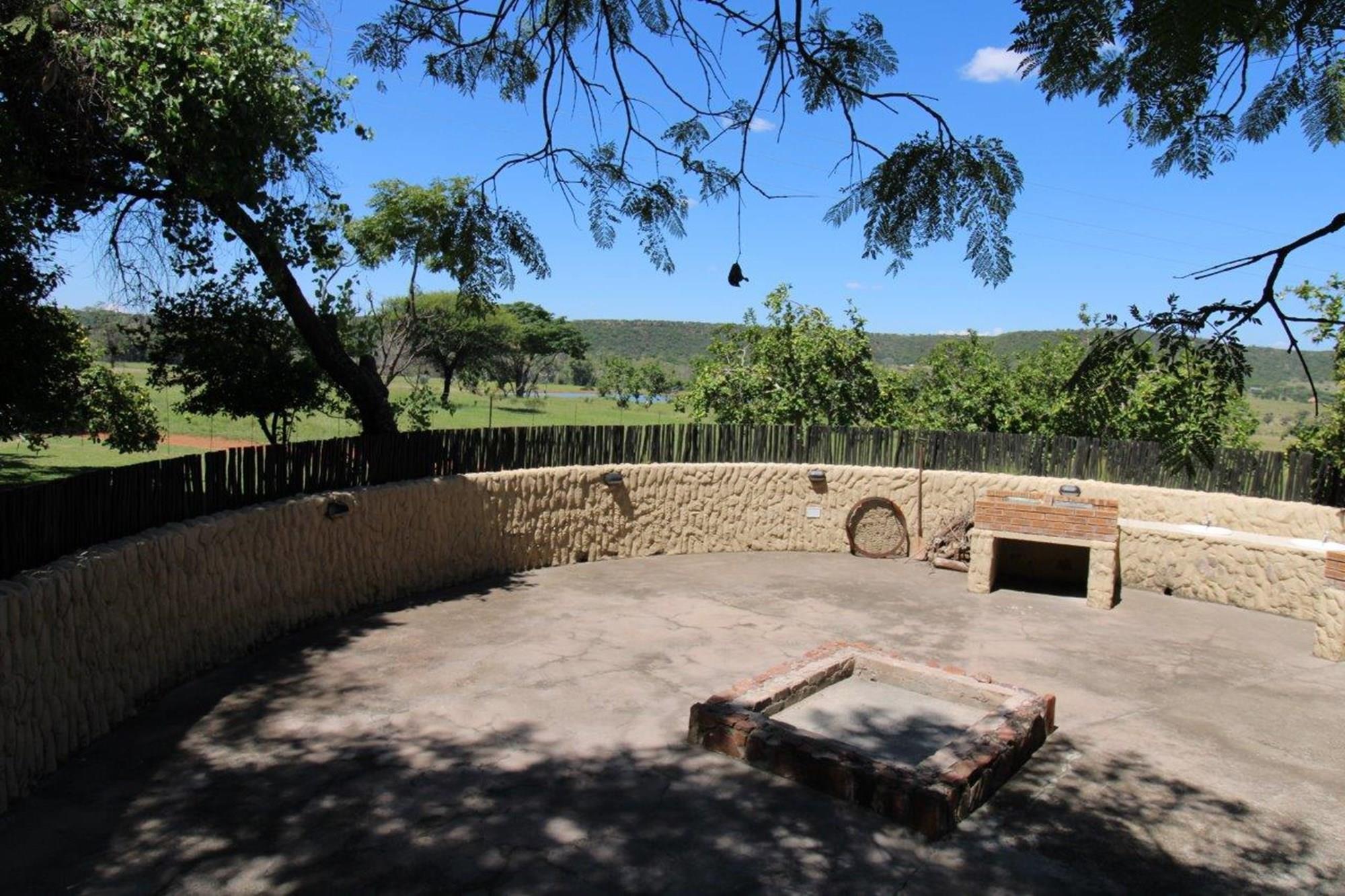 This property features a Main Lodge with four bedrooms and four bathrooms, as well as an open plan kitchen, dining room, and lounge which opens onto a large patio. There is also an additional loft lounge area, a conference facility for 20 people, a bar with a guest toilet, a swimming pool, a walk-in safe, and a well-manicured garden with automated irrigation. Very large boma braai area for functions and conferences overlooking the large earth dam. Excellent game viewing with giraffe, buffalo and other plains game drinking water at the dam. Guests may also utilise a private picnic and boma braai area situated on the mountain above the lodge with spectacular views. Internet installation included.