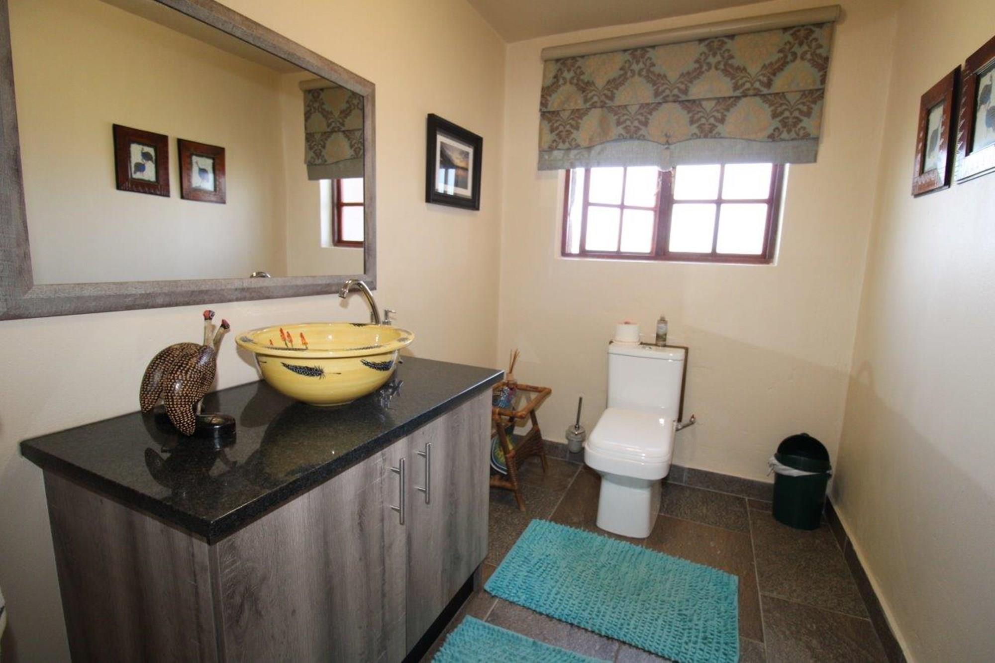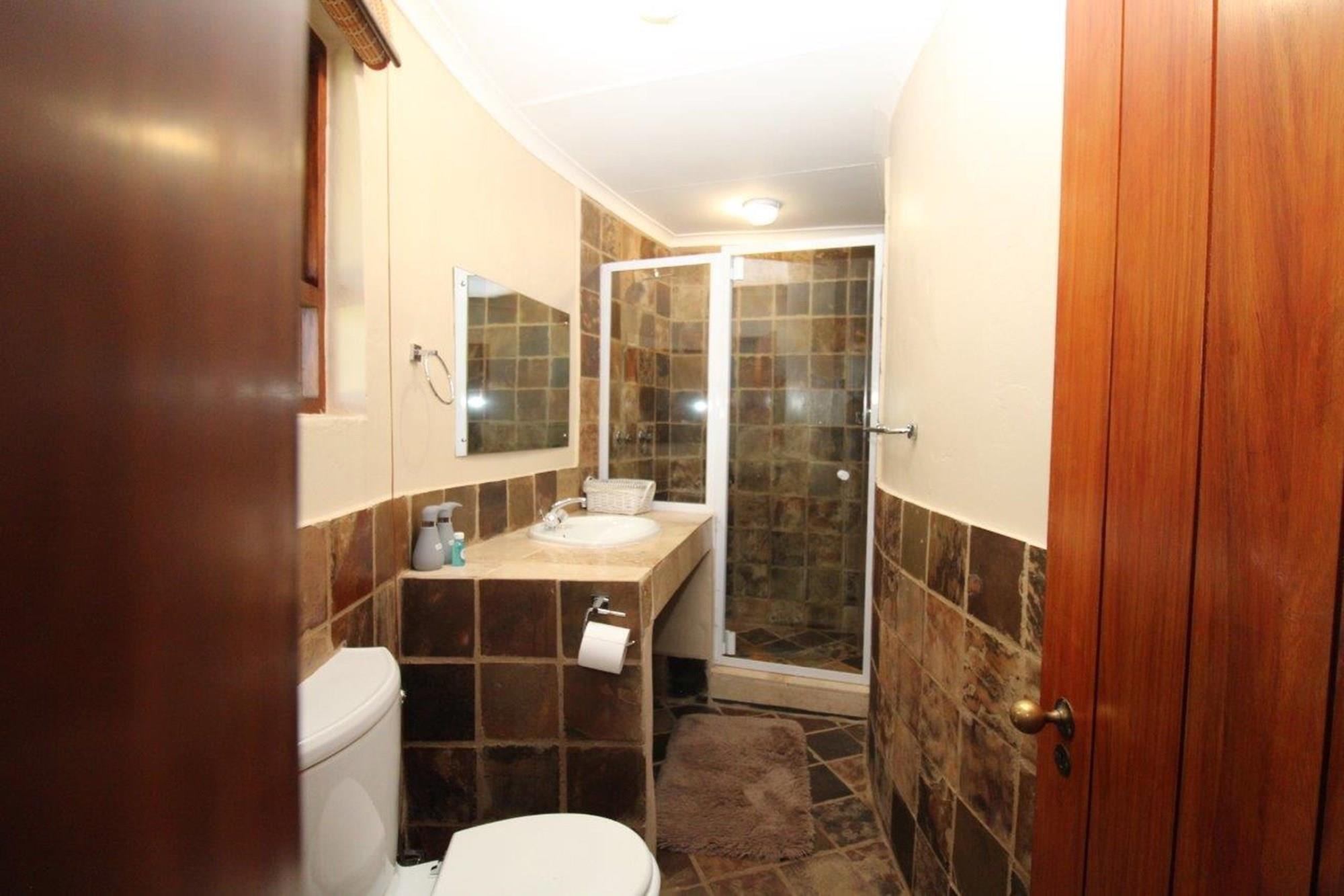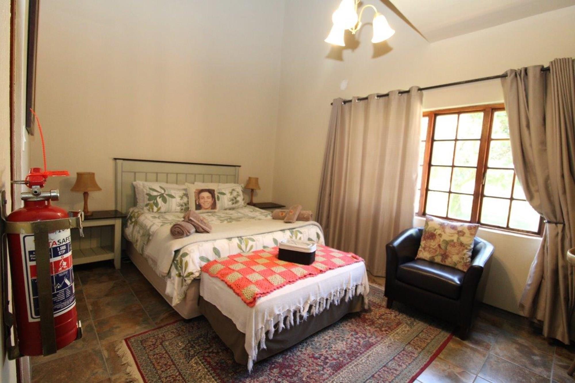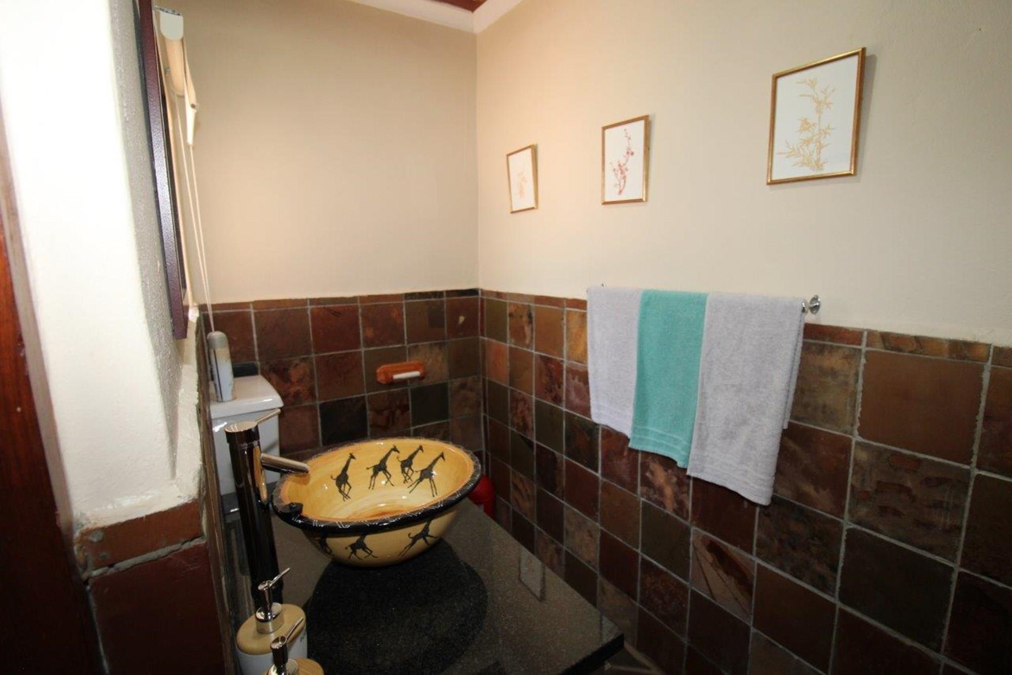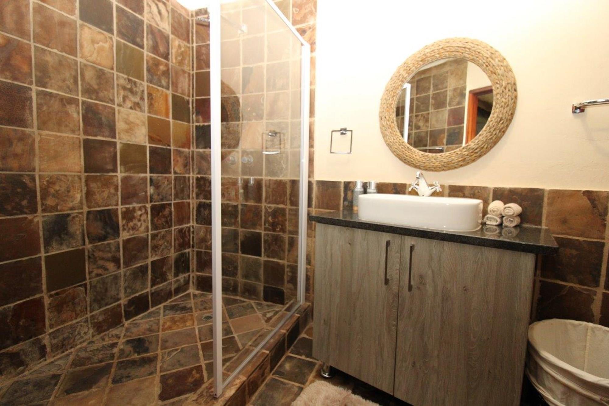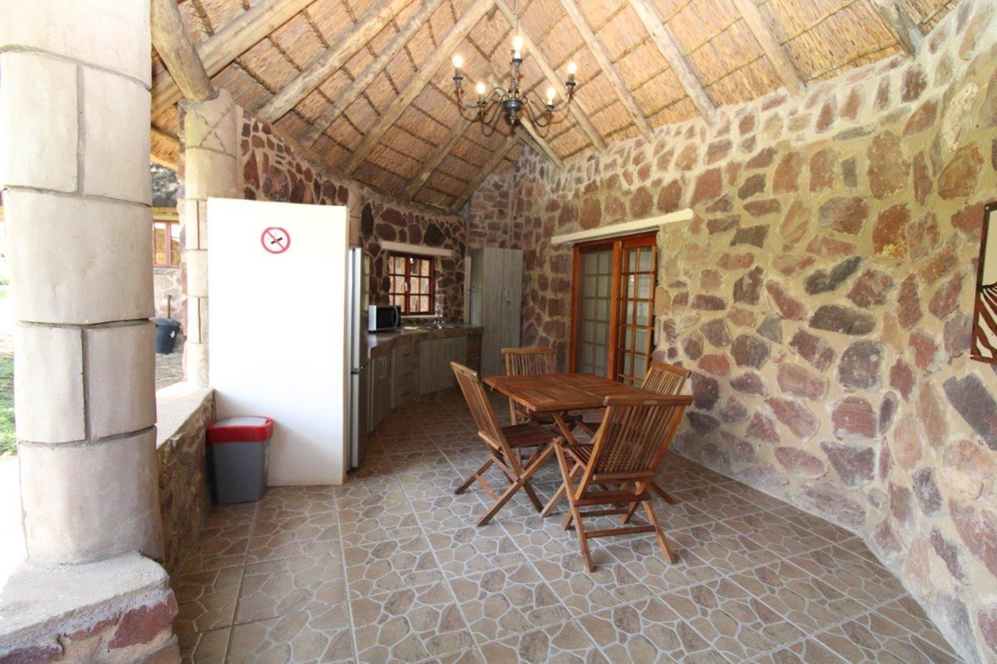 This property features a Main Lodge with four bedrooms and four bathrooms, as well as an open plan kitchen, dining room, and lounge which opens onto a large patio. There is also an additional loft lounge area, a conference facility for 20 people, a bar with a guest toilet, a swimming pool, a walk-in safe, and a well-manicured garden with automated irrigation. Very large boma braai area for functions and conferences overlooking the large earth dam. Excellent game viewing with giraffe, buffalo and other plains game drinking water at the dam. Guests may also utilise a private picnic and boma braai area situated on the mountain above the lodge with spectacular views. Internet installation included.
