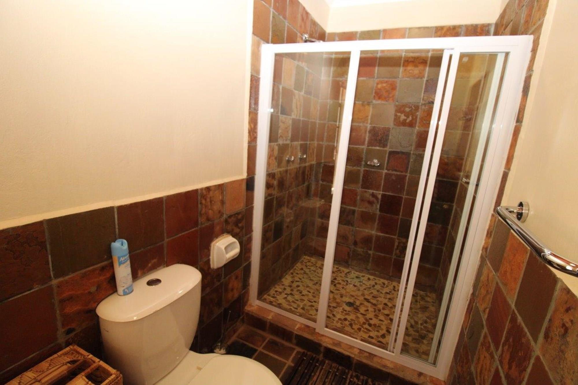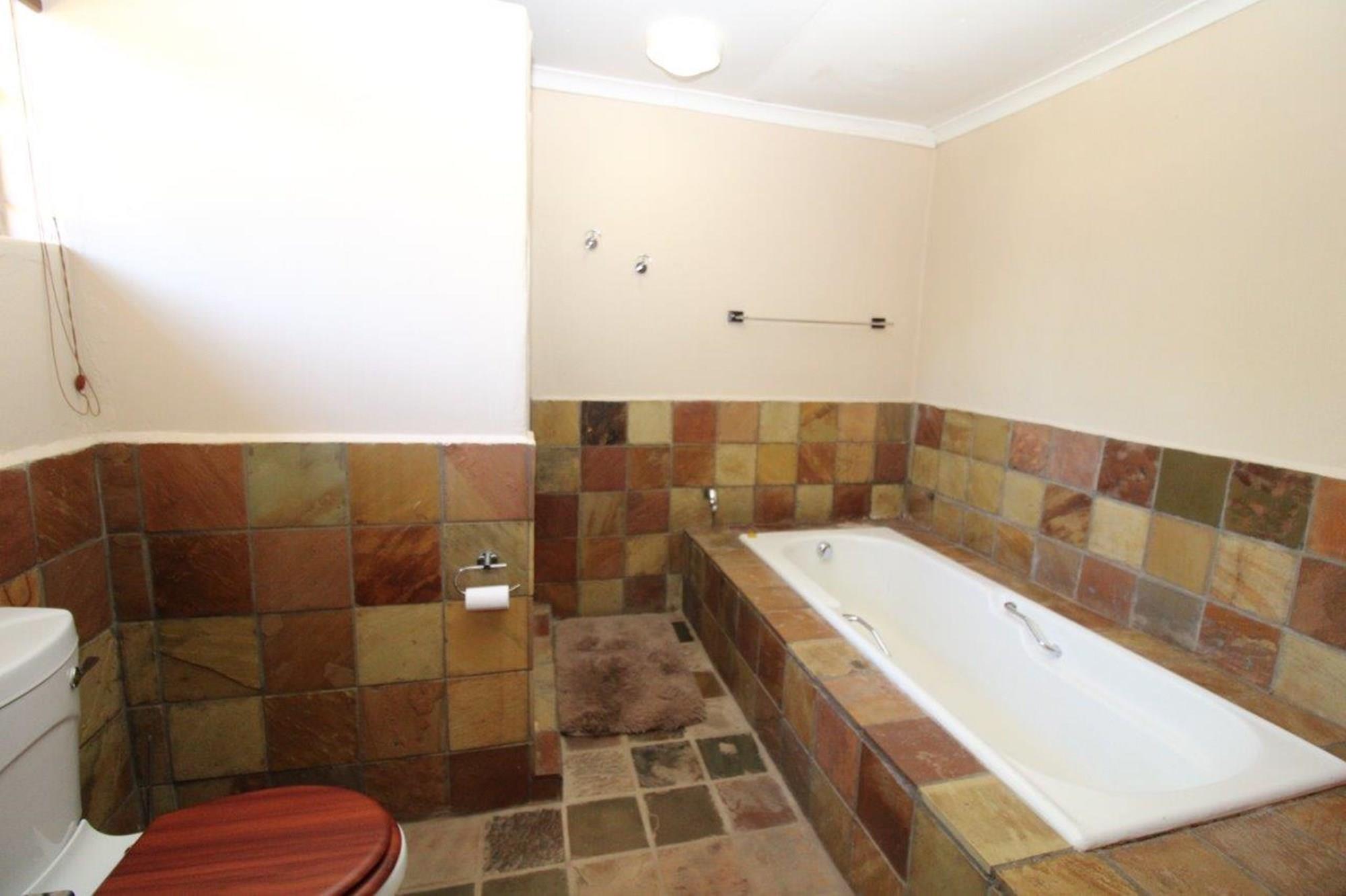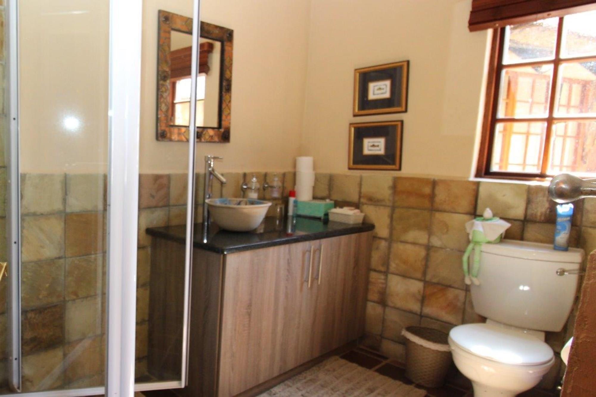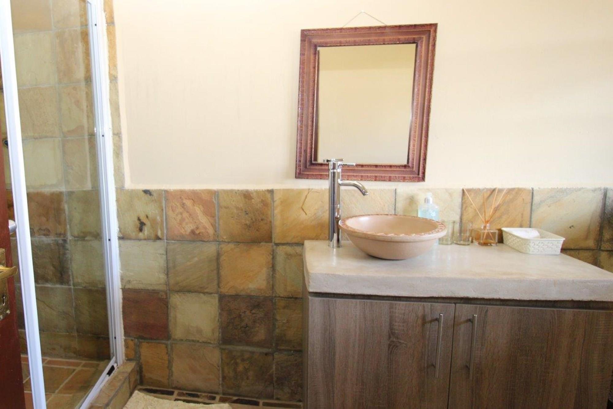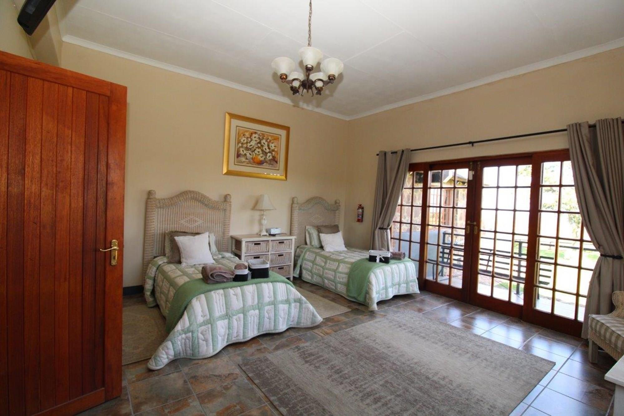 This property features a Main Lodge with four bedrooms and four bathrooms, as well as an open plan kitchen, dining room, and lounge which opens onto a large patio. There is also an additional loft lounge area, a conference facility for 20 people, a bar with a guest toilet, a swimming pool, a walk-in safe, and a well-manicured garden with automated irrigation. Very large boma braai area for functions and conferences overlooking the large earth dam. Excellent game viewing with giraffe, buffalo and other plains game drinking water at the dam. Guests may also utilise a private picnic and boma braai area situated on the mountain above the lodge with spectacular views. Internet installation included.