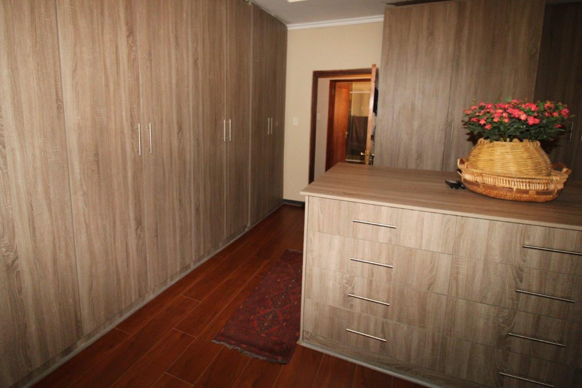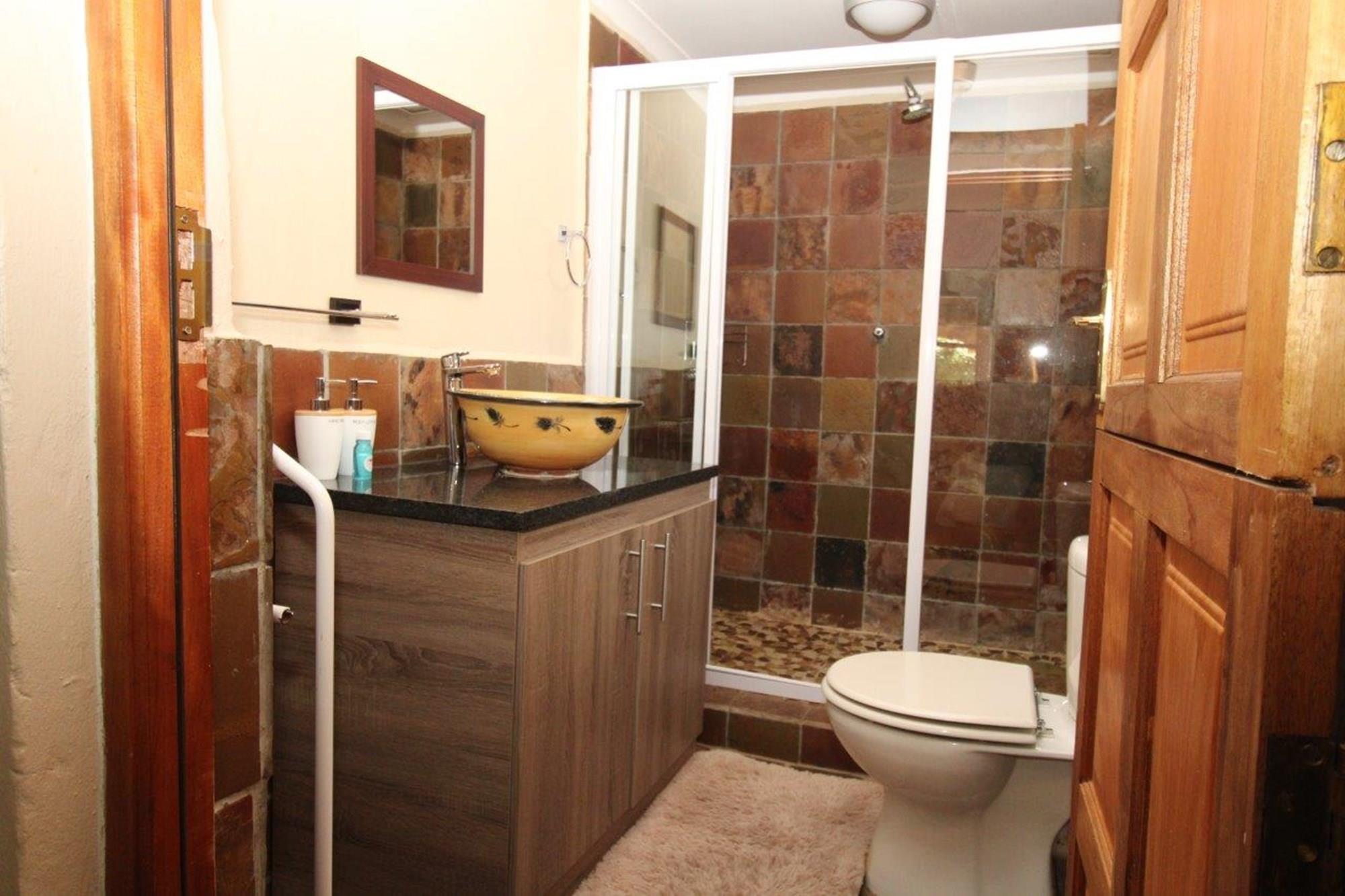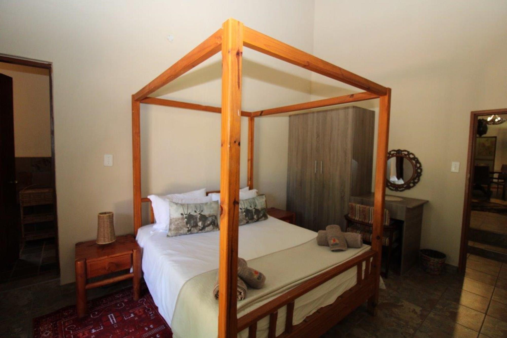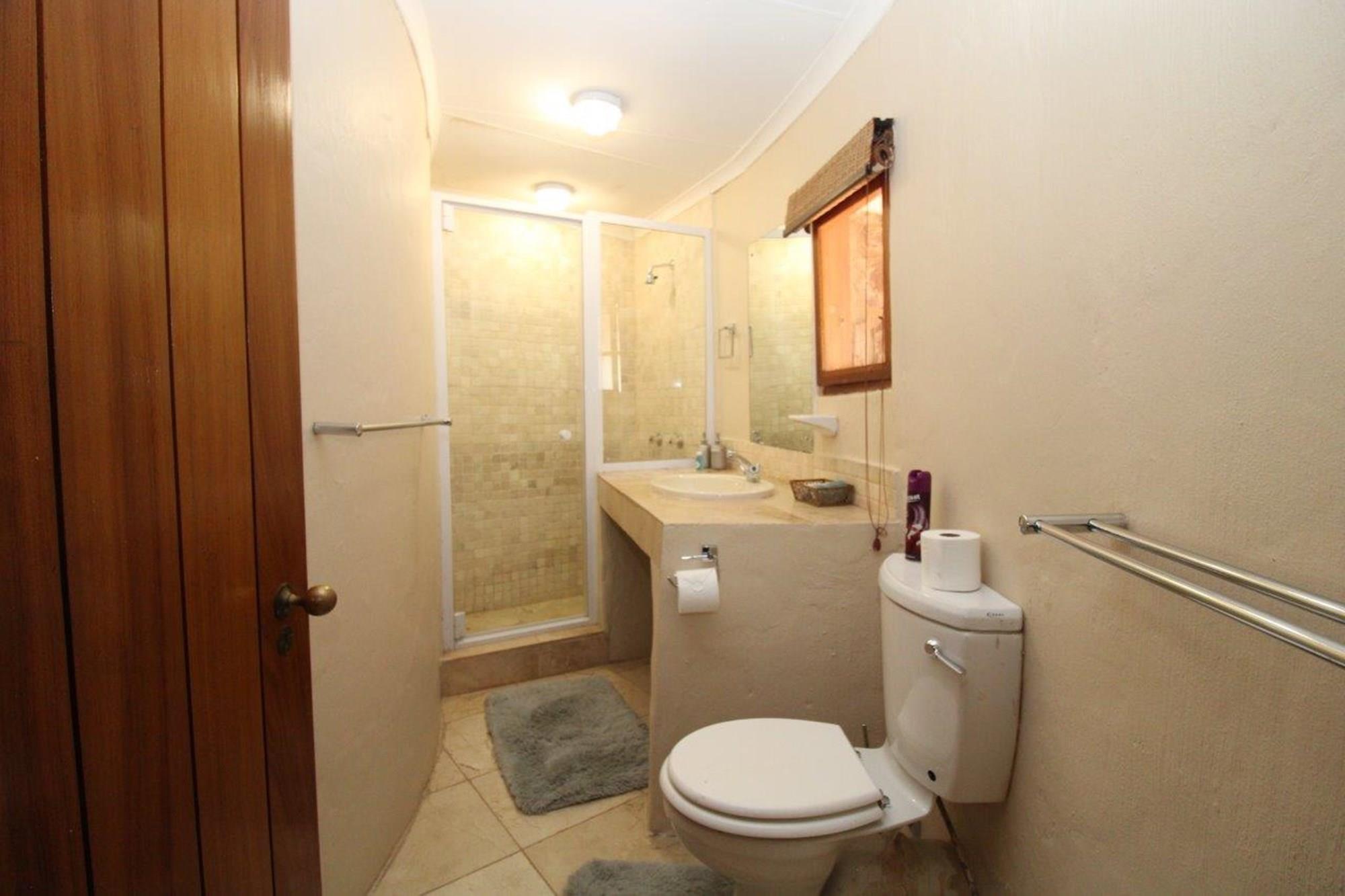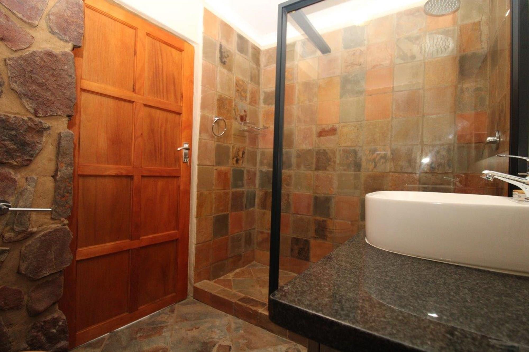 This property features a Main Lodge with four bedrooms and four bathrooms, as well as an open plan kitchen, dining room, and lounge which opens onto a large patio. There is also an additional loft lounge area, a conference facility for 20 people, a bar with a guest toilet, a swimming pool, a walk-in safe, and a well-manicured garden with automated irrigation. Very large boma braai area for functions and conferences overlooking the large earth dam. Excellent game viewing with giraffe, buffalo and other plains game drinking water at the dam. Guests may also utilise a private picnic and boma braai area situated on the mountain above the lodge with spectacular views. Internet installation included.