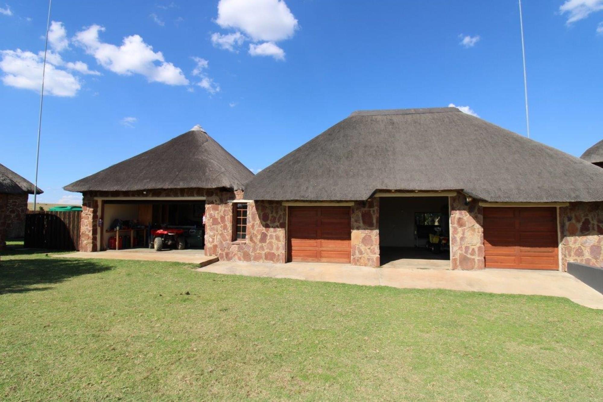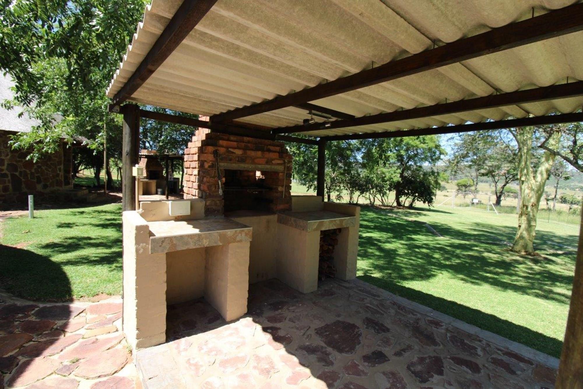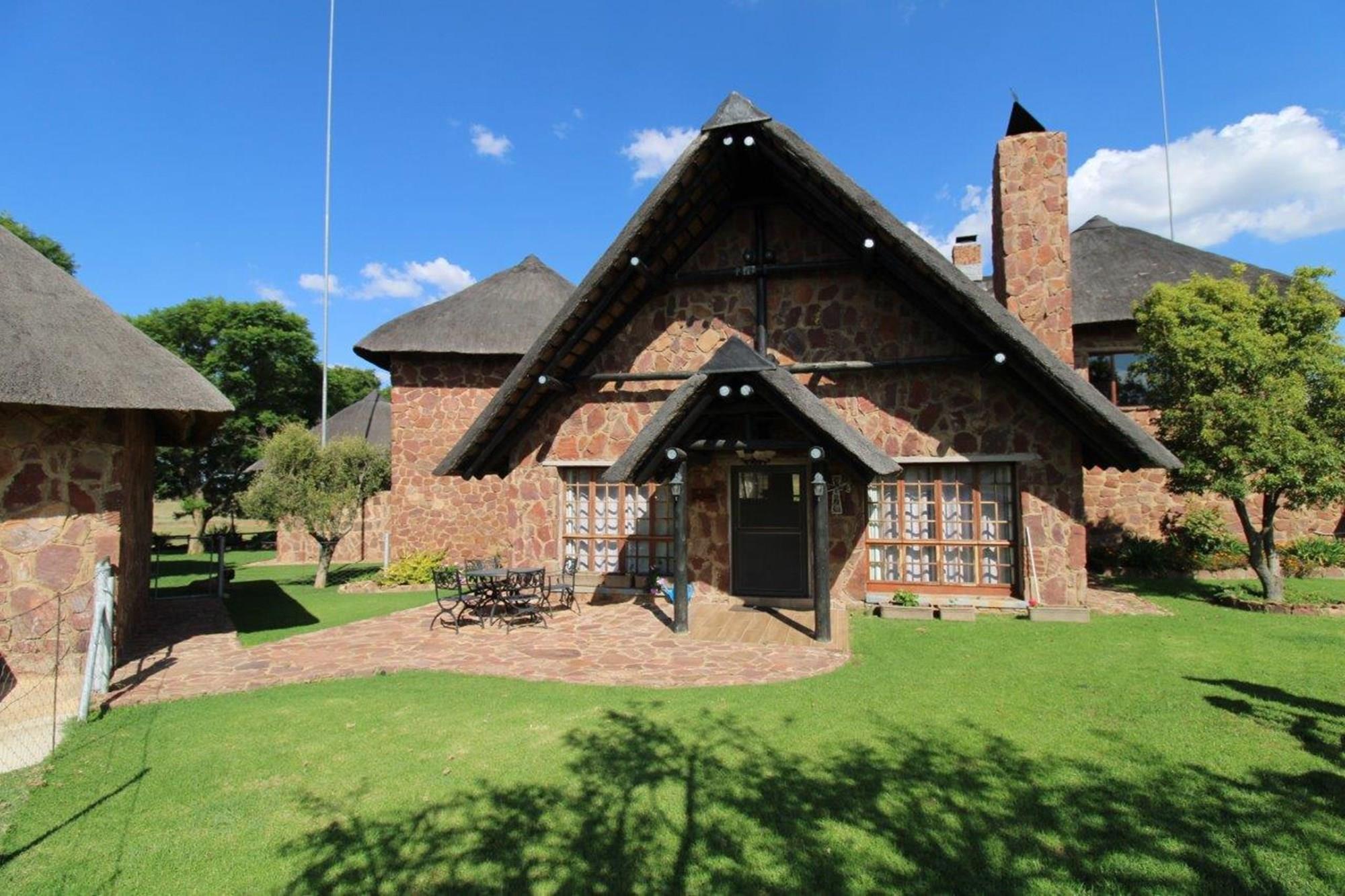 This lodge complex has it all! With four rondavel chalets, each sleeping four people and featuring its own bathroom, kitchen, braai area, and patio with views of the wildlife game and large earth dam, you will be sure to have a memorable stay. For added security, an energised electric fence has been installed. The beautiful garden has an automated irrigation system.