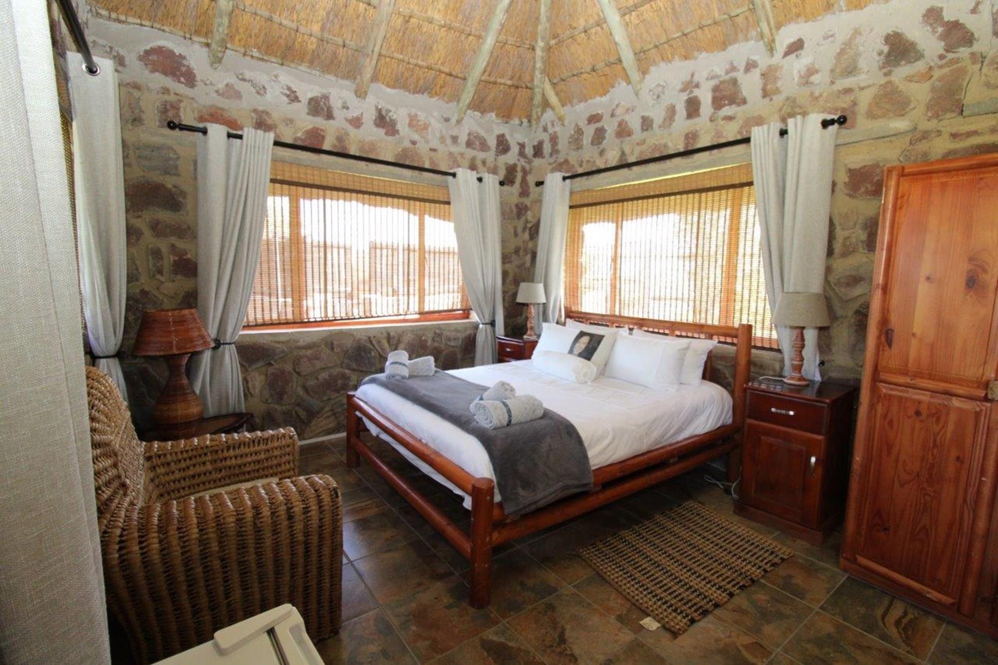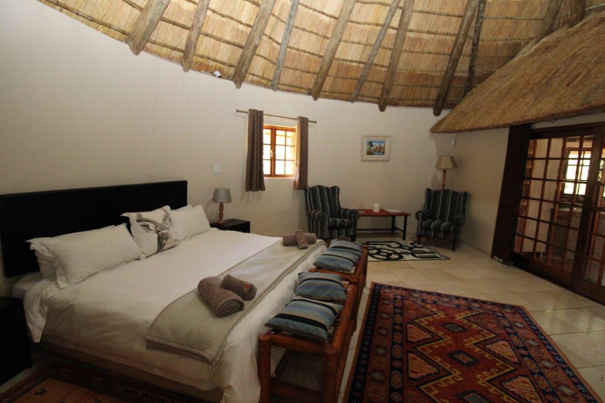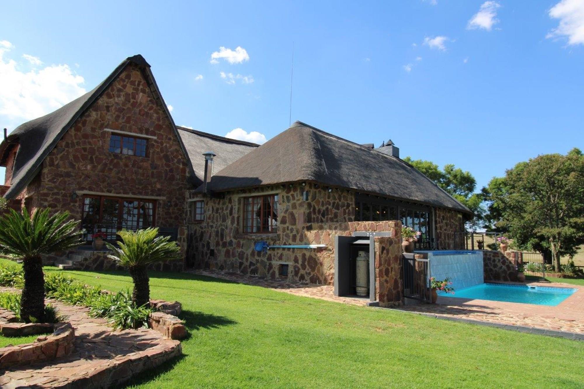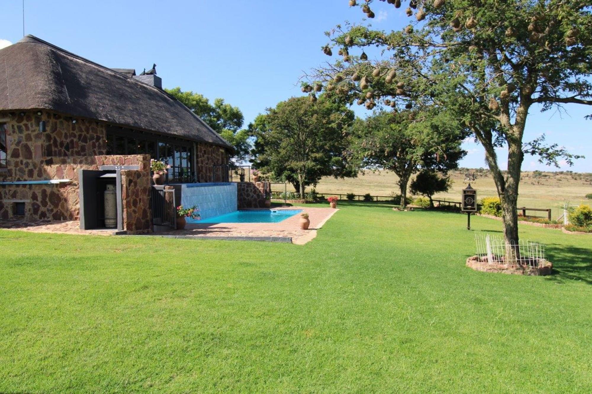 This lodge complex has it all! With four rondavel chalets, each sleeping four people and featuring its own bathroom, kitchen, braai area, and patio with views of the wildlife game and large earth dam, you will be sure to have a memorable stay. For added security, an energised electric fence has been installed. The beautiful garden has an automated irrigation system.