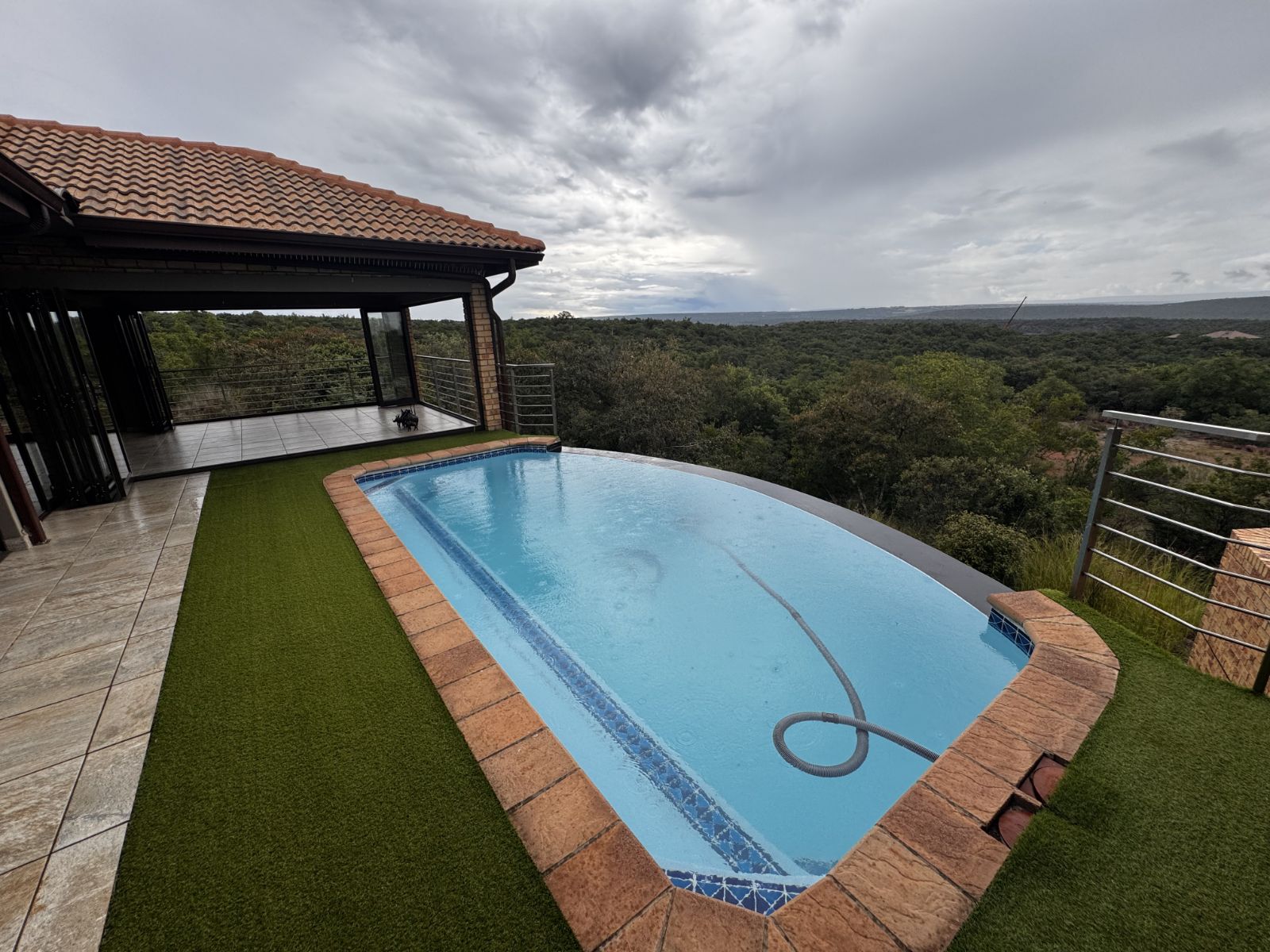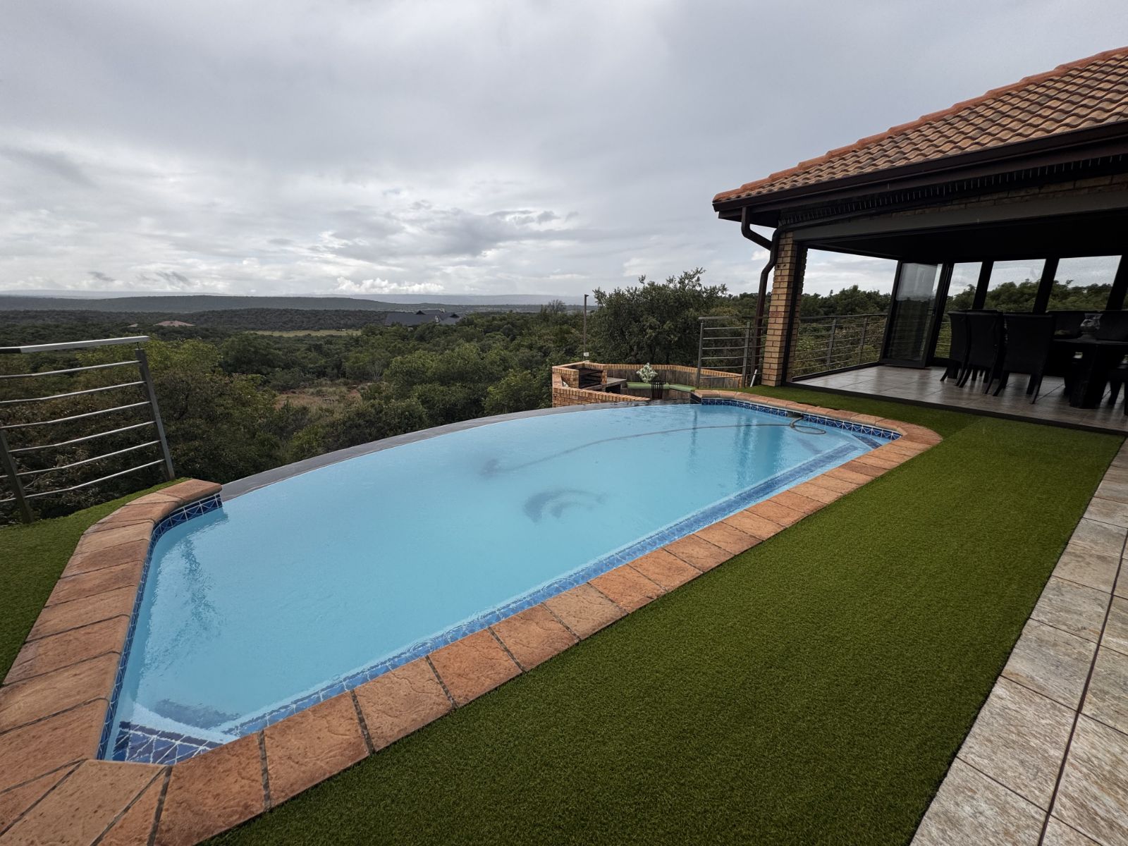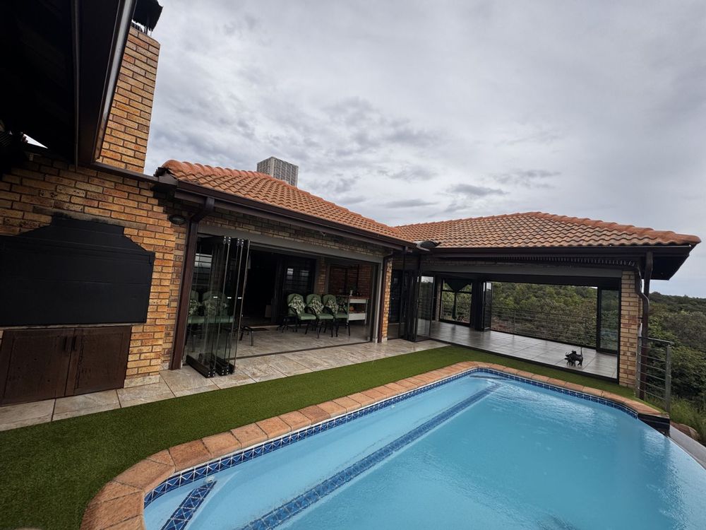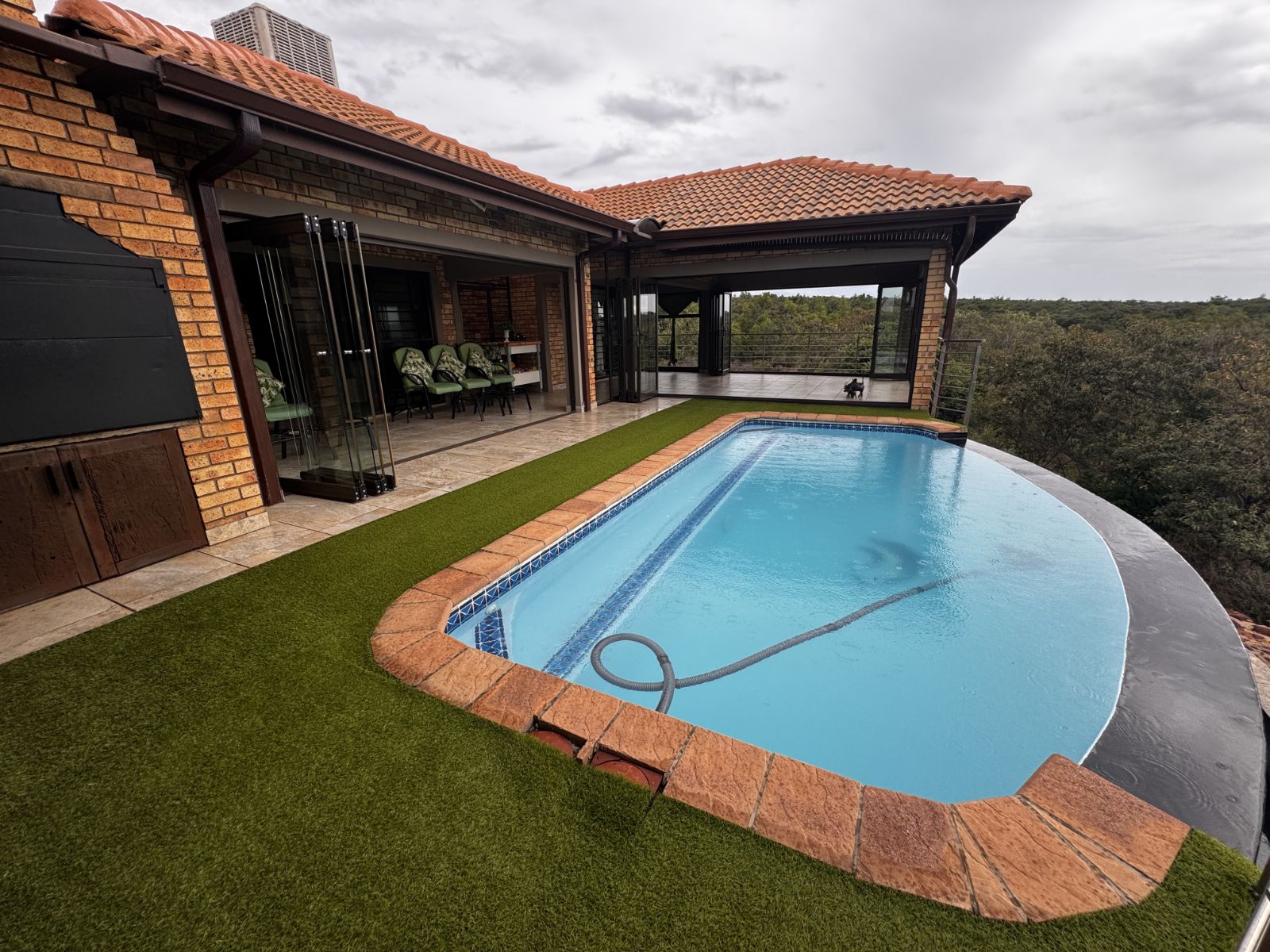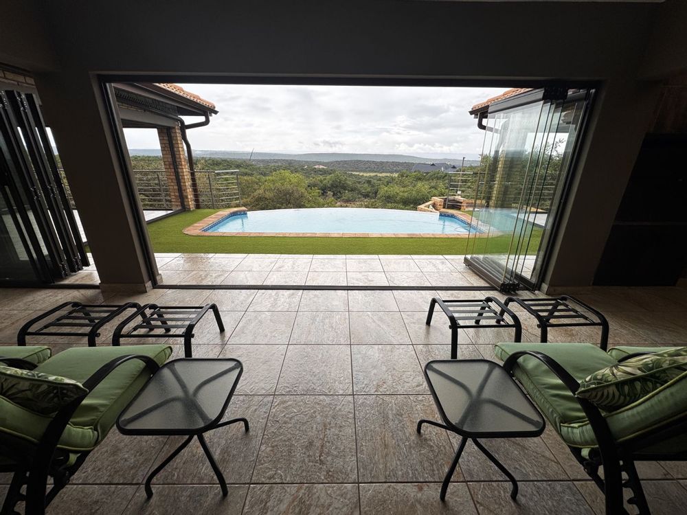 Upon entering the house, you’re immediately struck by the breathtaking views that greet you. The open-plan kitchen and living room area flows seamlessly into an expansive outdoor entertainment space. The entertainment area is fully customizable with sliding, foldable aluminum doors, allowing you to adjust the space to your preference. Enjoy a heated pool with a 12 kW heat pump, a dual-sided braai area, and a wash-up section with built-in cupboards.
