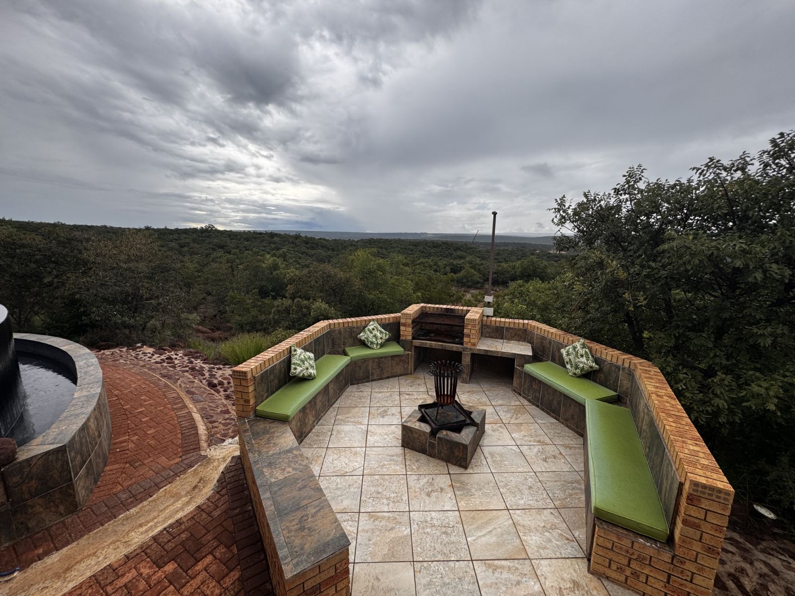 A beautifully built boma area with a firepit and additional braai offers a cozy and scenic outdoor retreat. Custom-made cushions create a comfortable atmosphere as you relax and take in the stunning views.