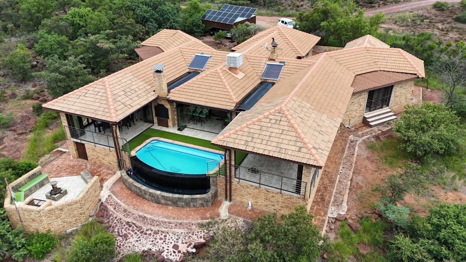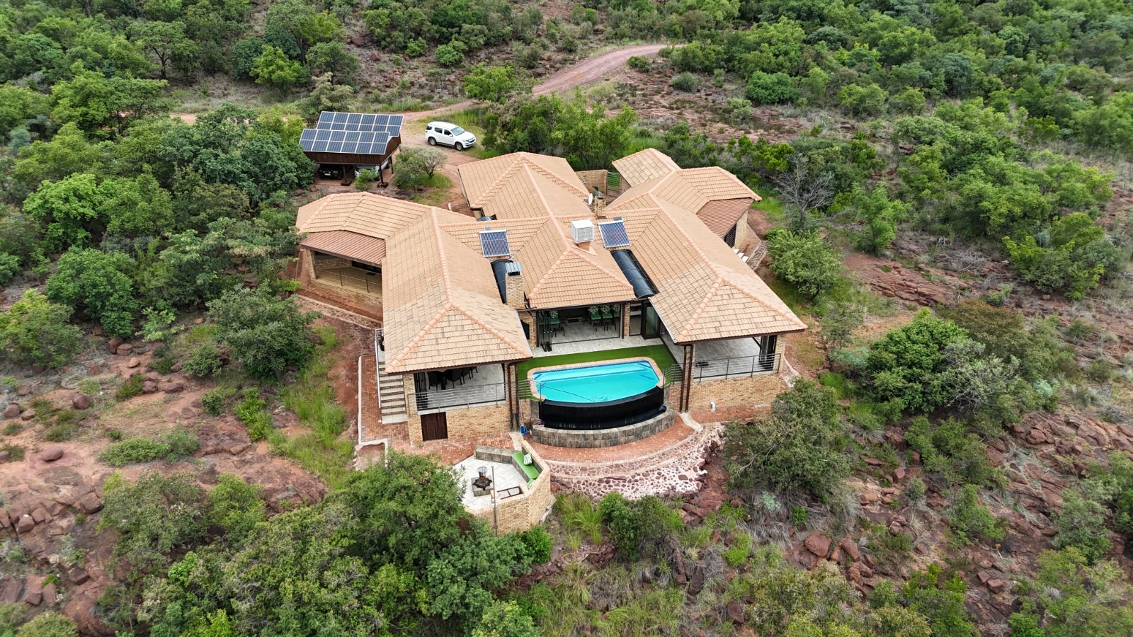 The property is equipped with a water filtration system, and water is sourced from the estate-controlled borehole, providing ample water while keeping costs low. Two solar geysers help maintain the home’s off-grid status.
