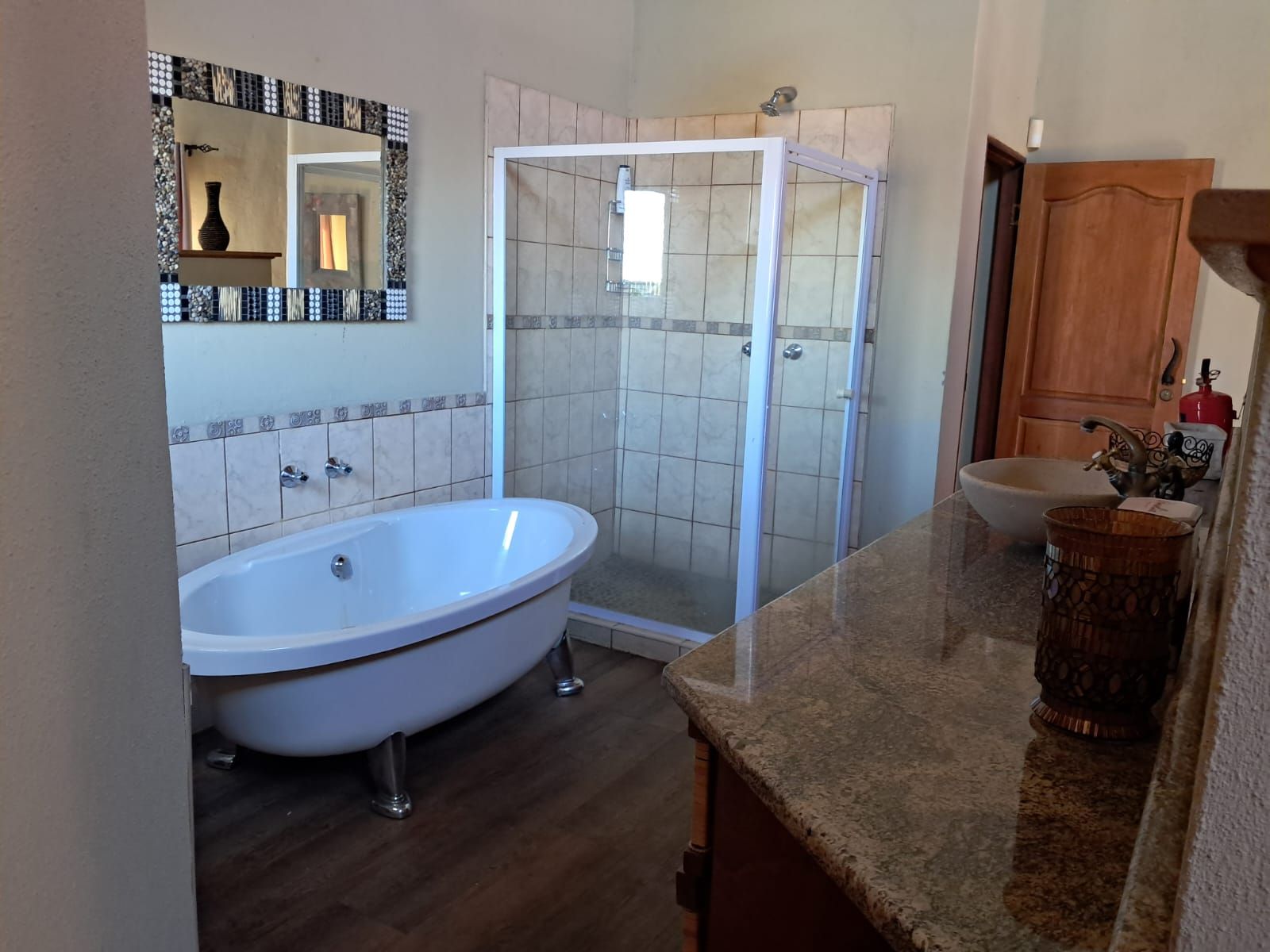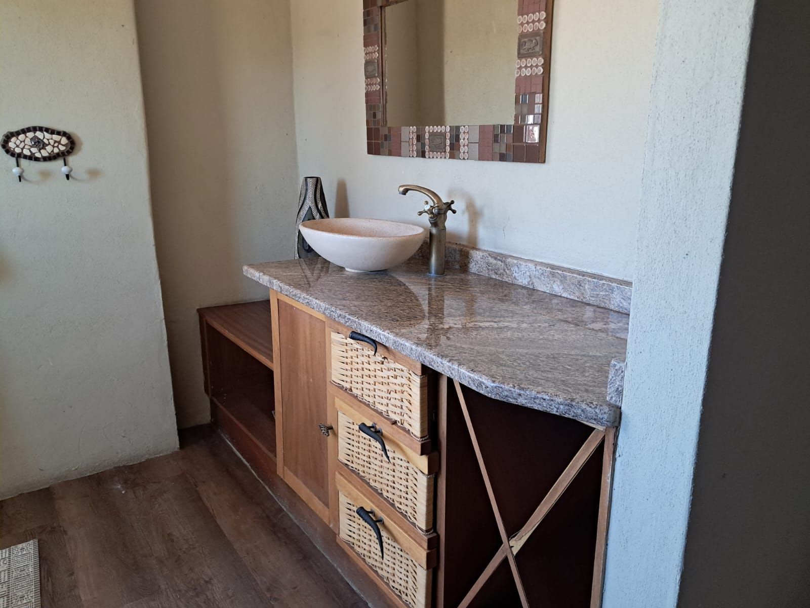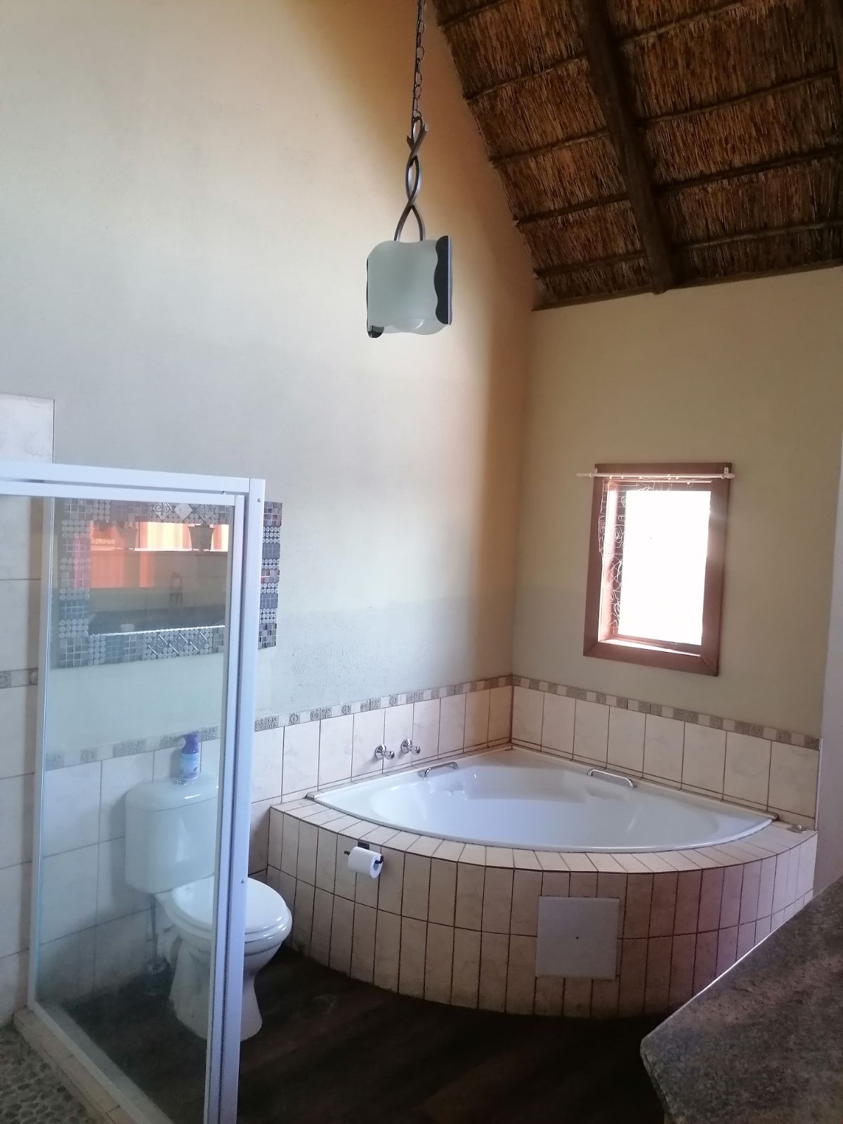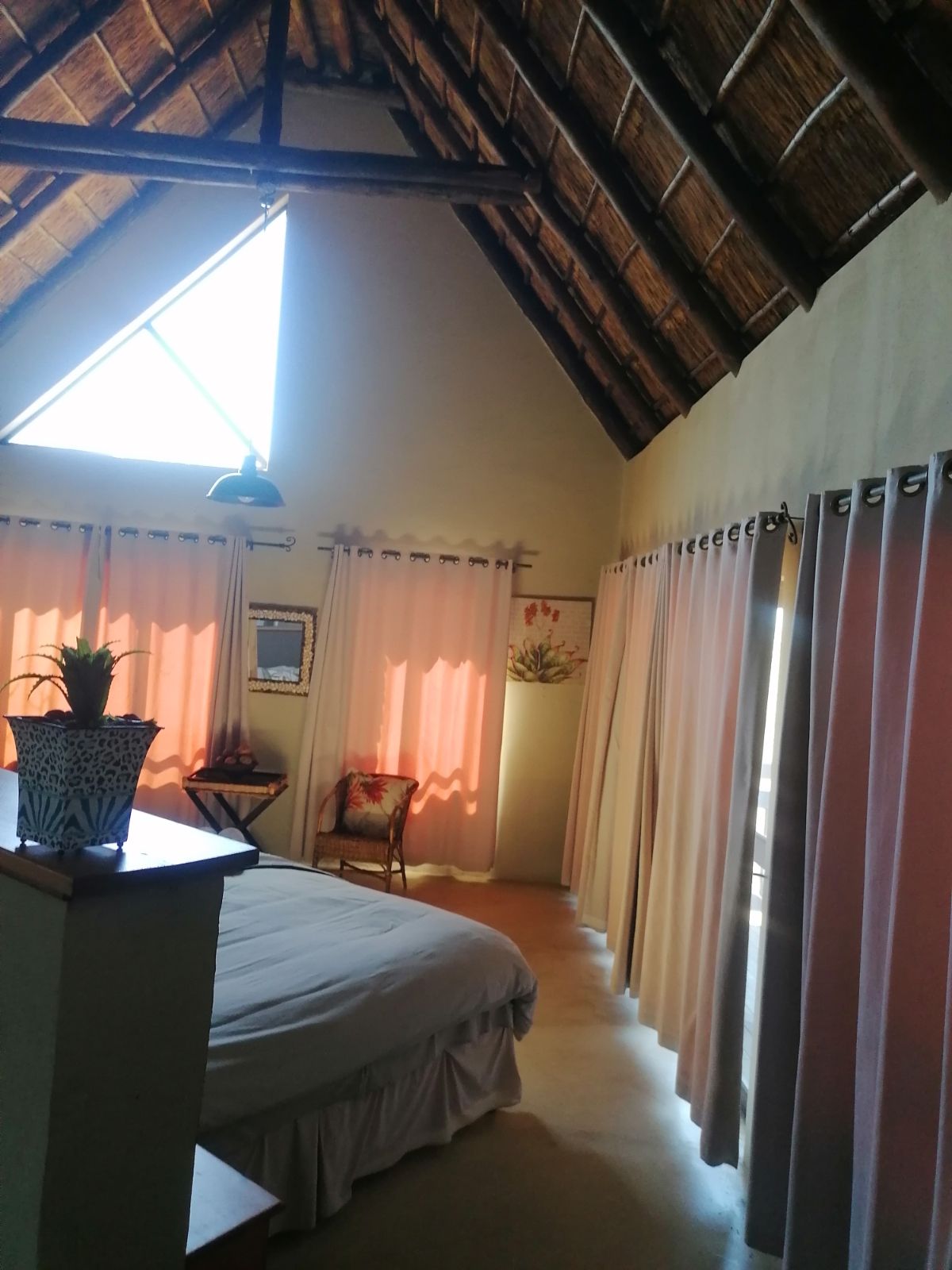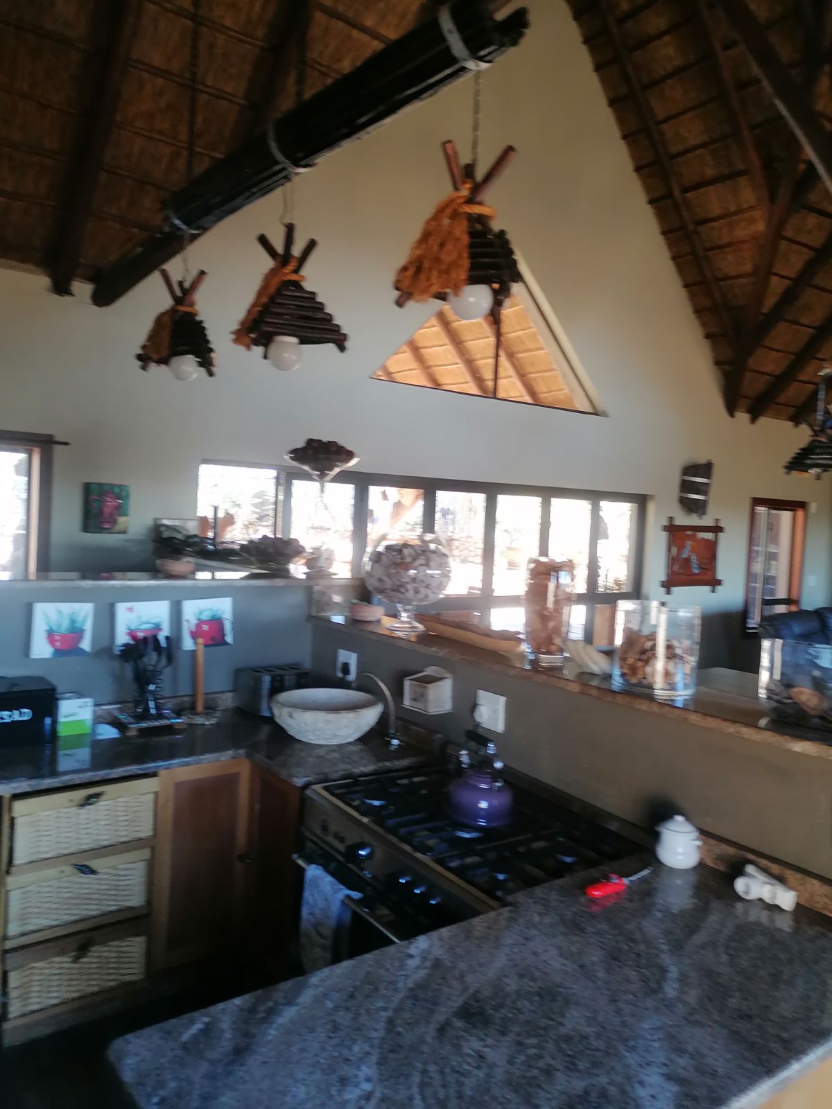 Step onto the spacious wooden deck and take in the breathtaking northeastern views or entertain guests at the western-facing braai area, boma, and expansive covered patio—ideal for unforgettable evenings under the stars. An additional outdoor toilet adds convenience.