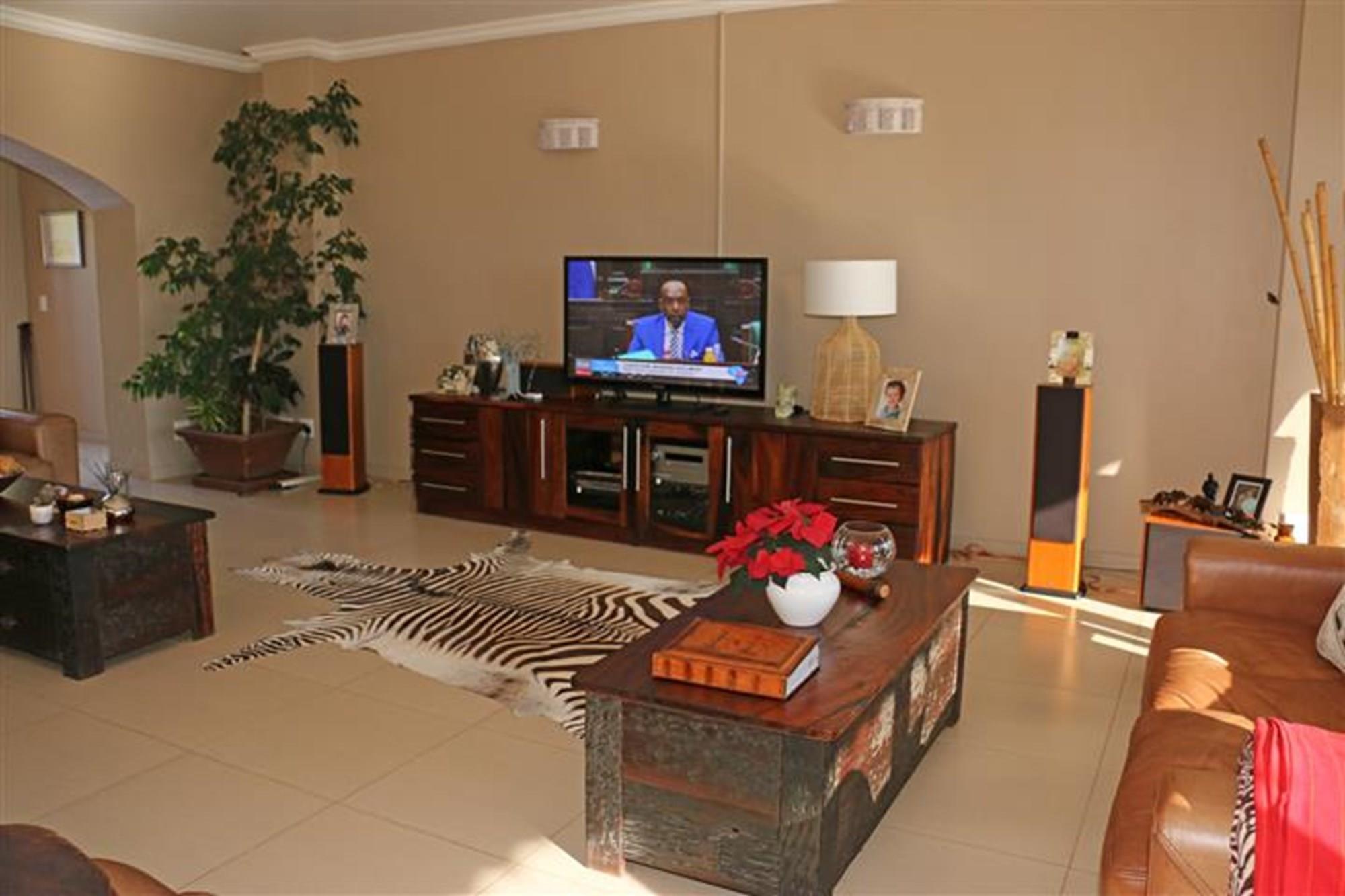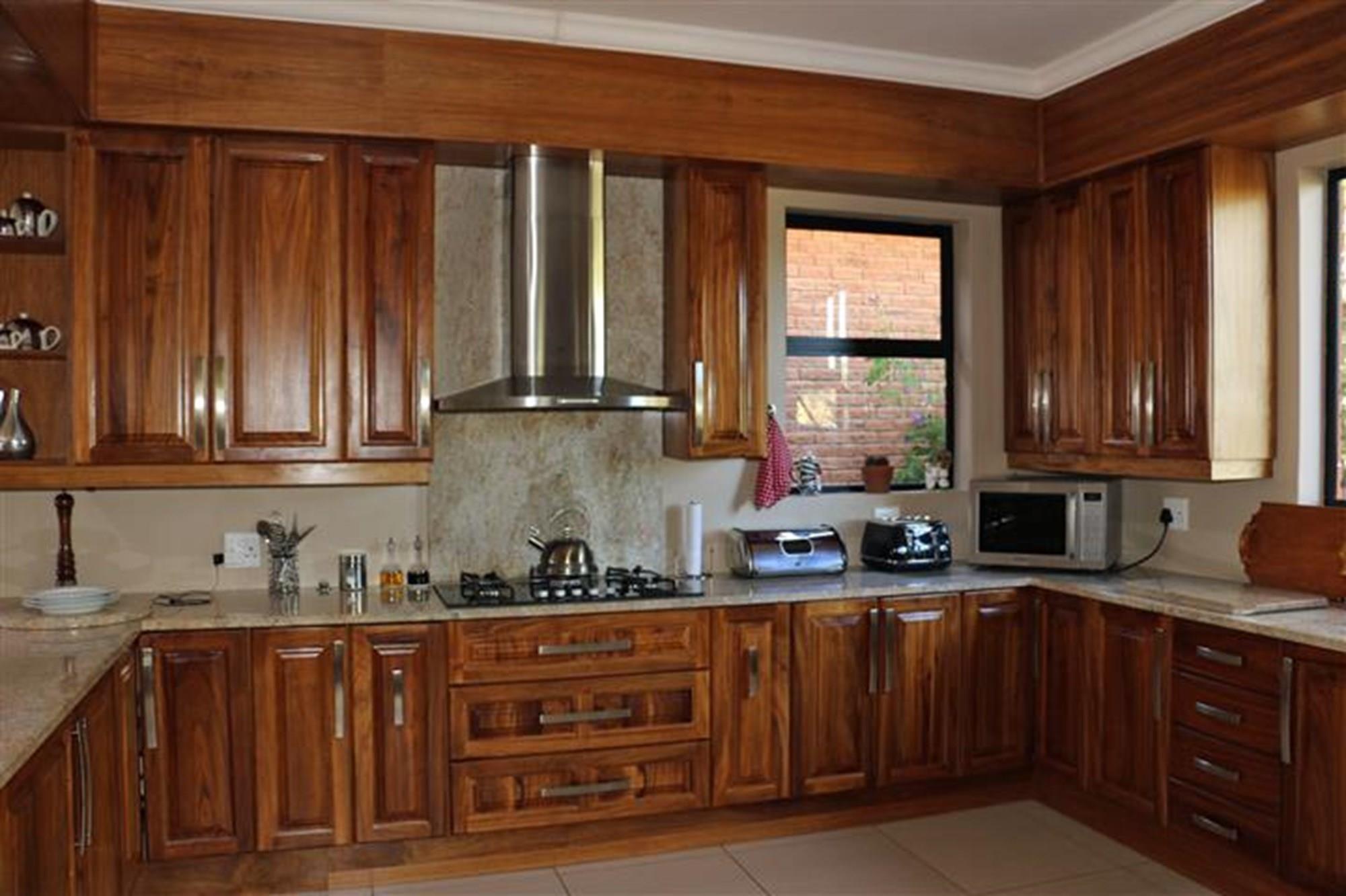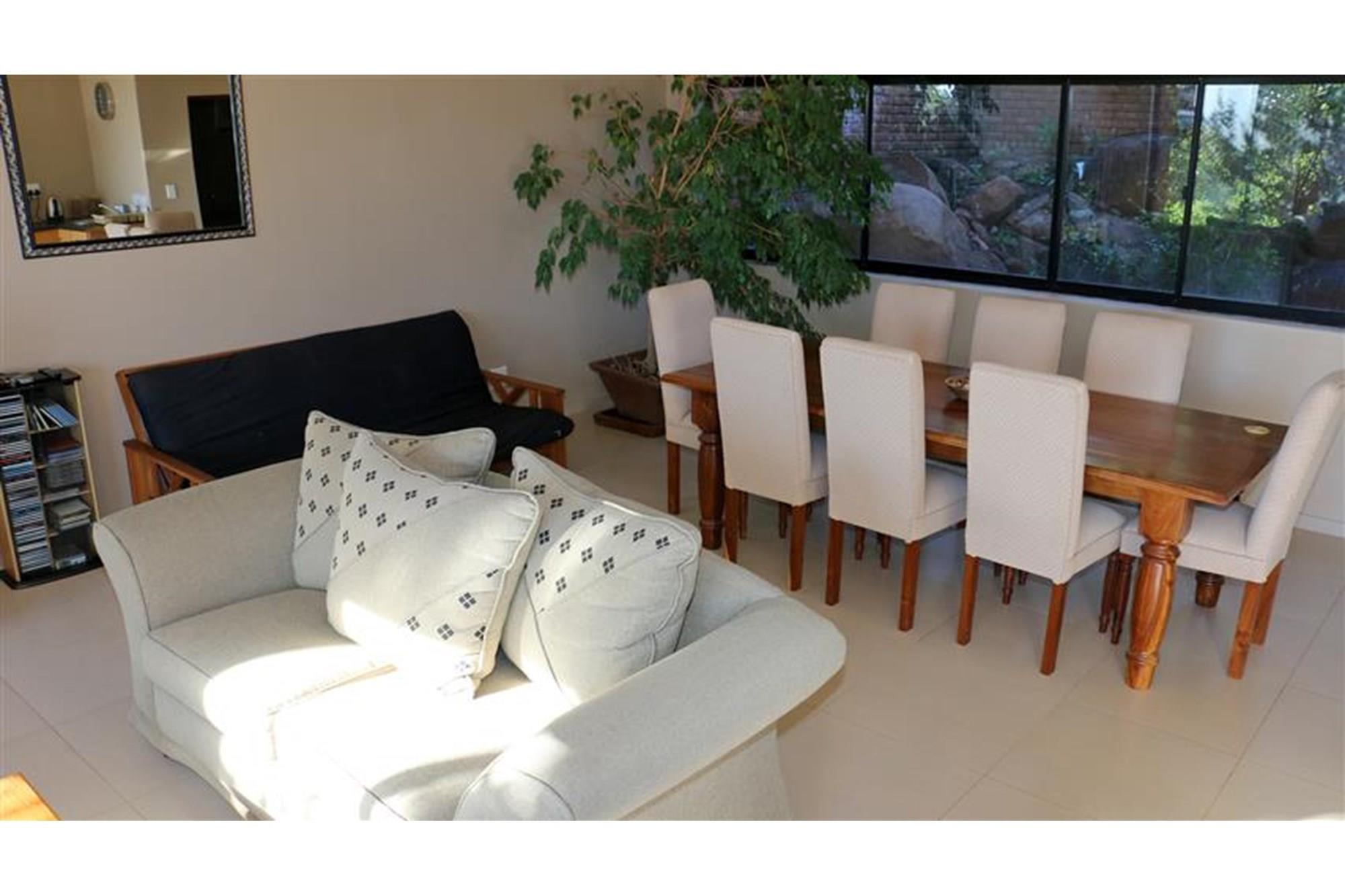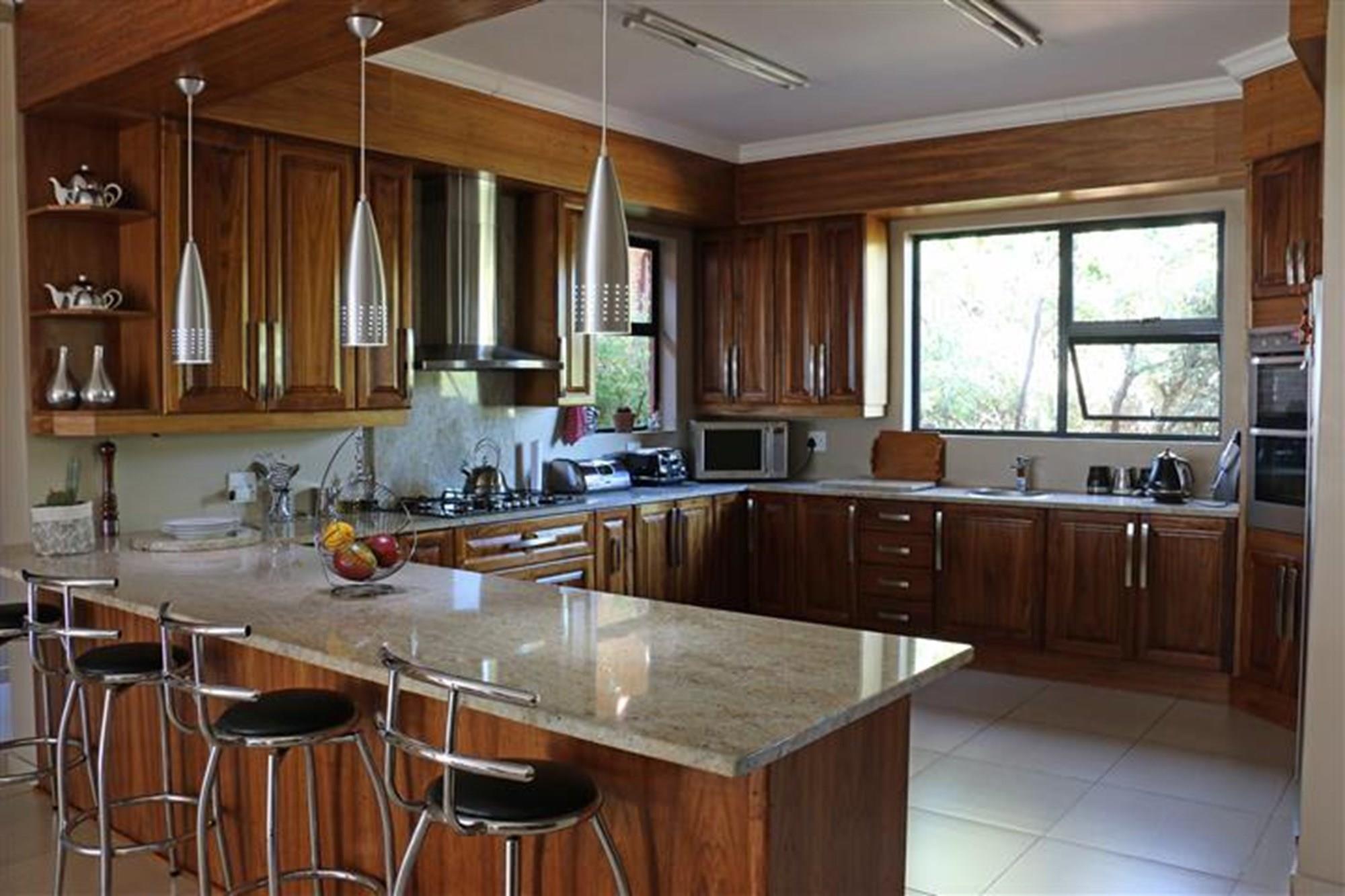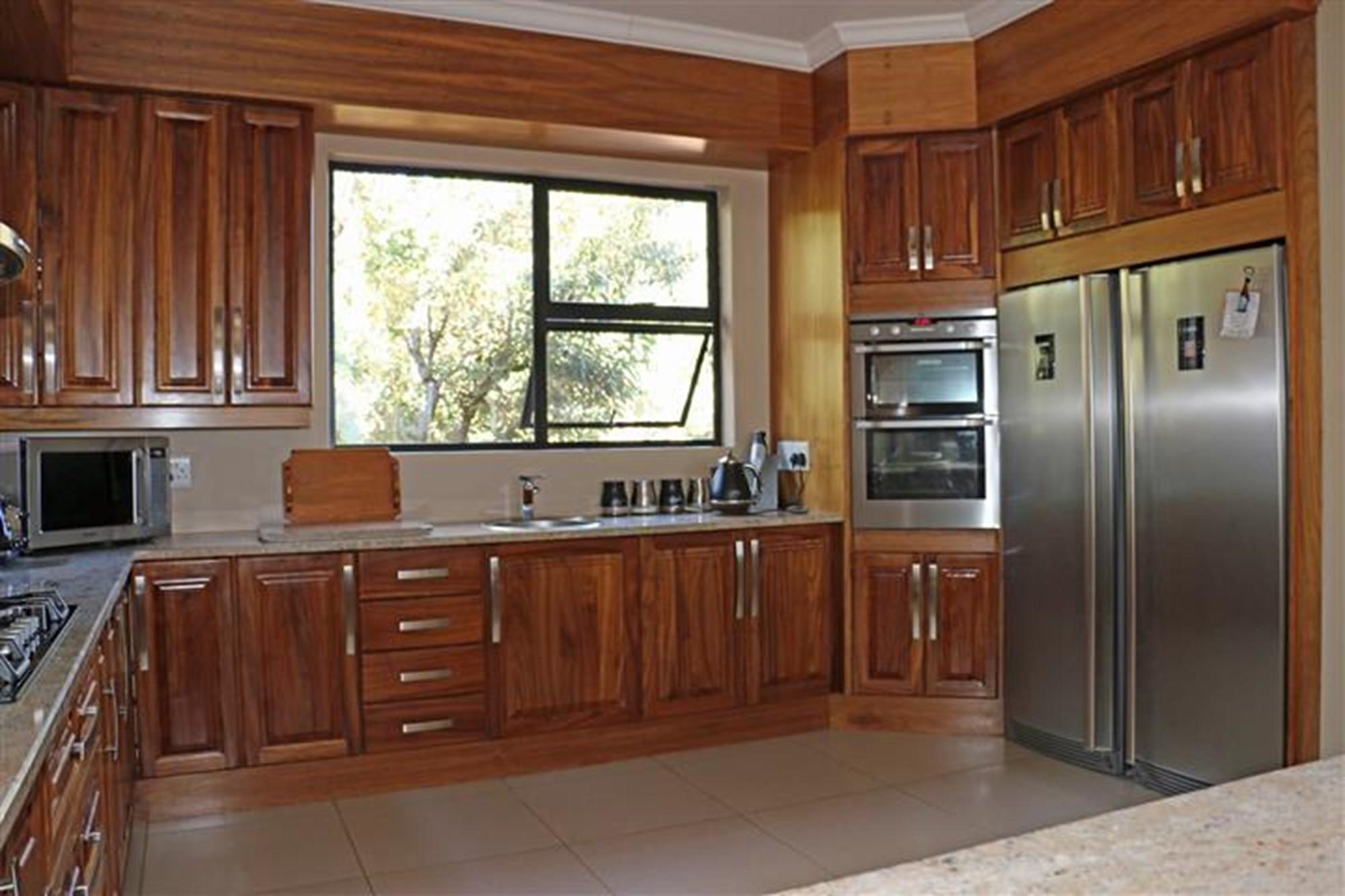 Main House:Step into an enormous open-plan lounge, dining room, solid kiaat bar, and a fully equipped kiaat kitchen. All these areas open through sliding and stacking doors onto a spacious patio, complete with a built-in braai, pizza oven, and a sparkling pool.