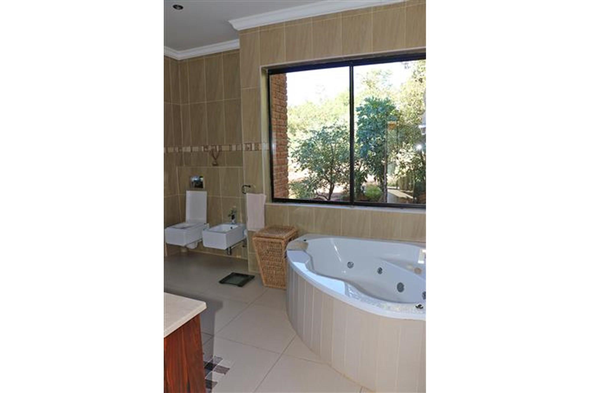 Bedrooms:Four well-appointed bedrooms with built-in cupboards. Two bedrooms have en-suite bathrooms, one has a private bathroom, and the main bedroom features a full en-suite. The large main bedroom boasts three sliding doors leading onto a patio, a corner spa bath, shower, double basins on a sleeper wood vanity unit, wall-hung toilet, bidet, and a fully fitted dressing room.